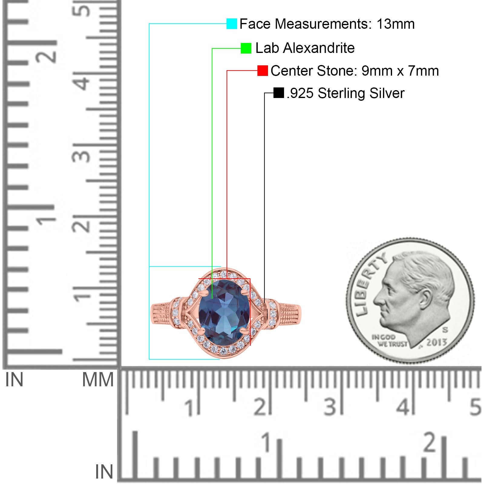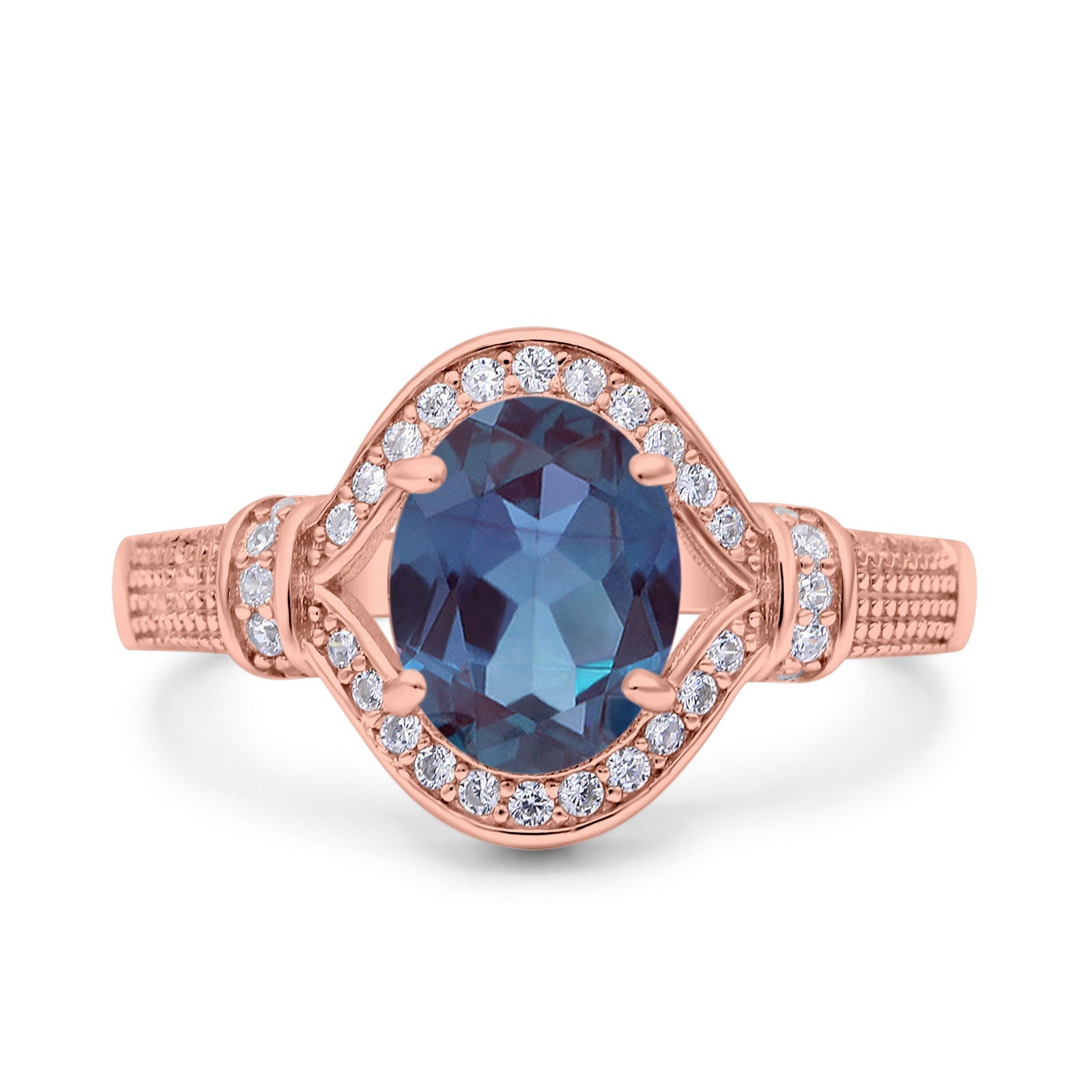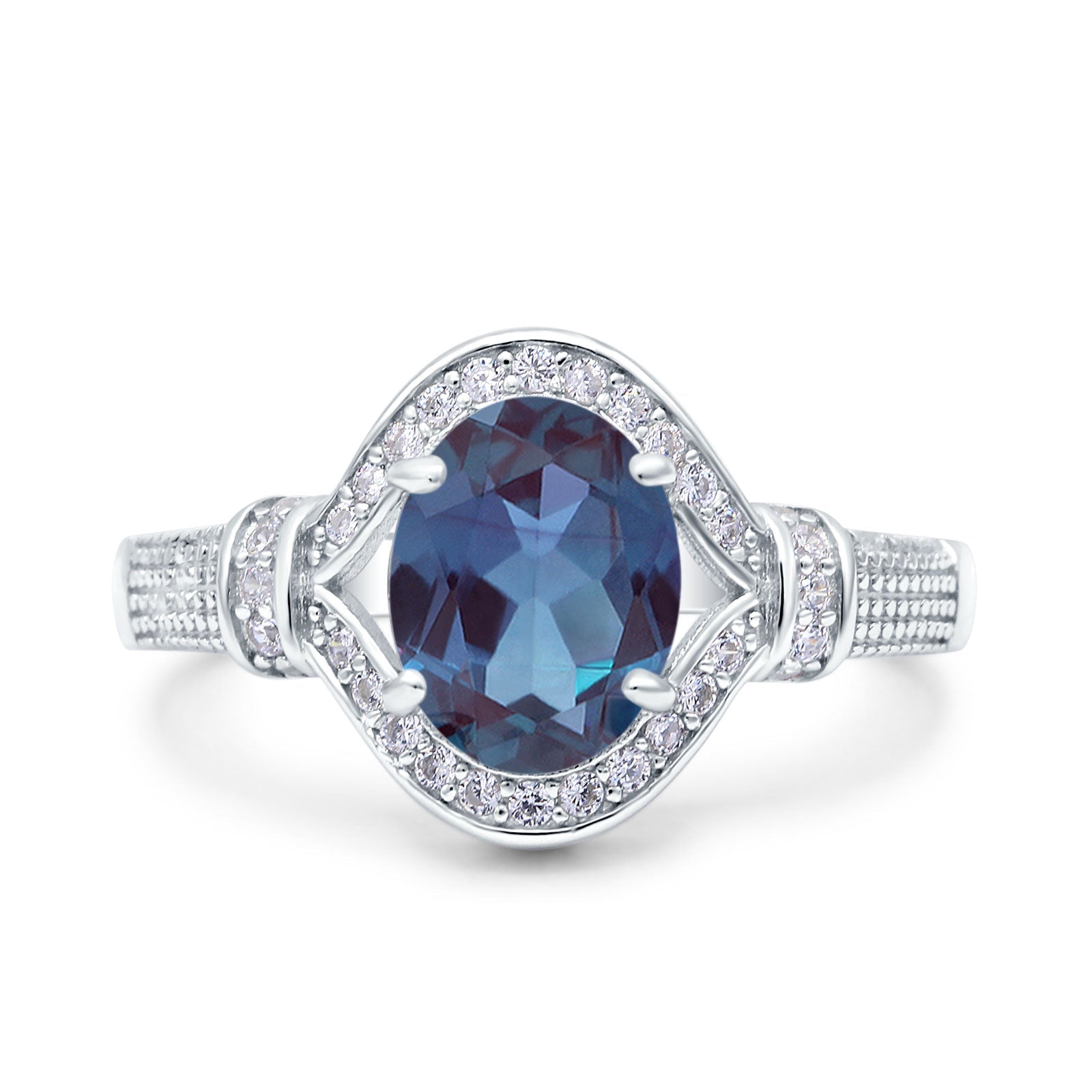 Oval Lab Alexandrite Halo Beaded Ring 925 Sterling Silver