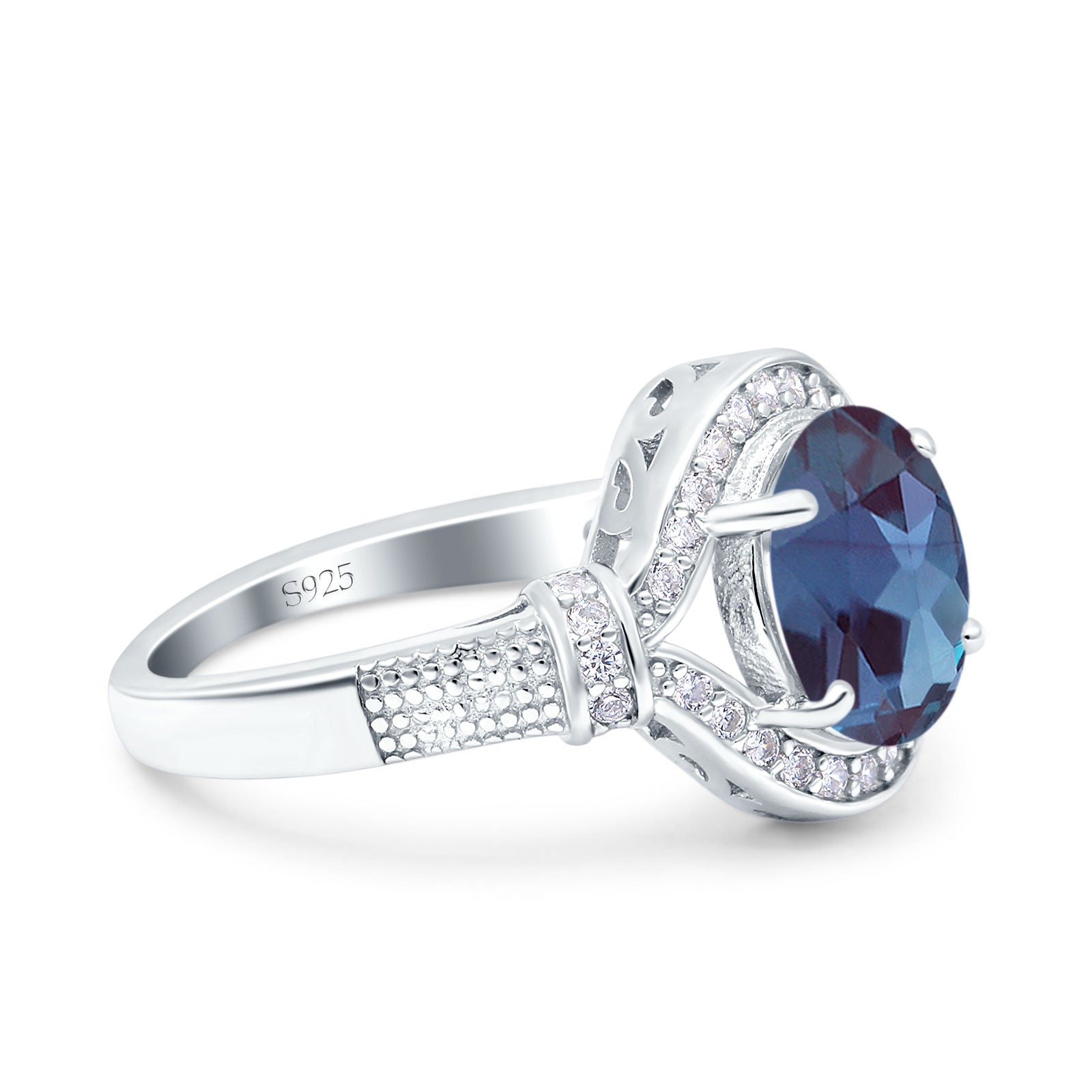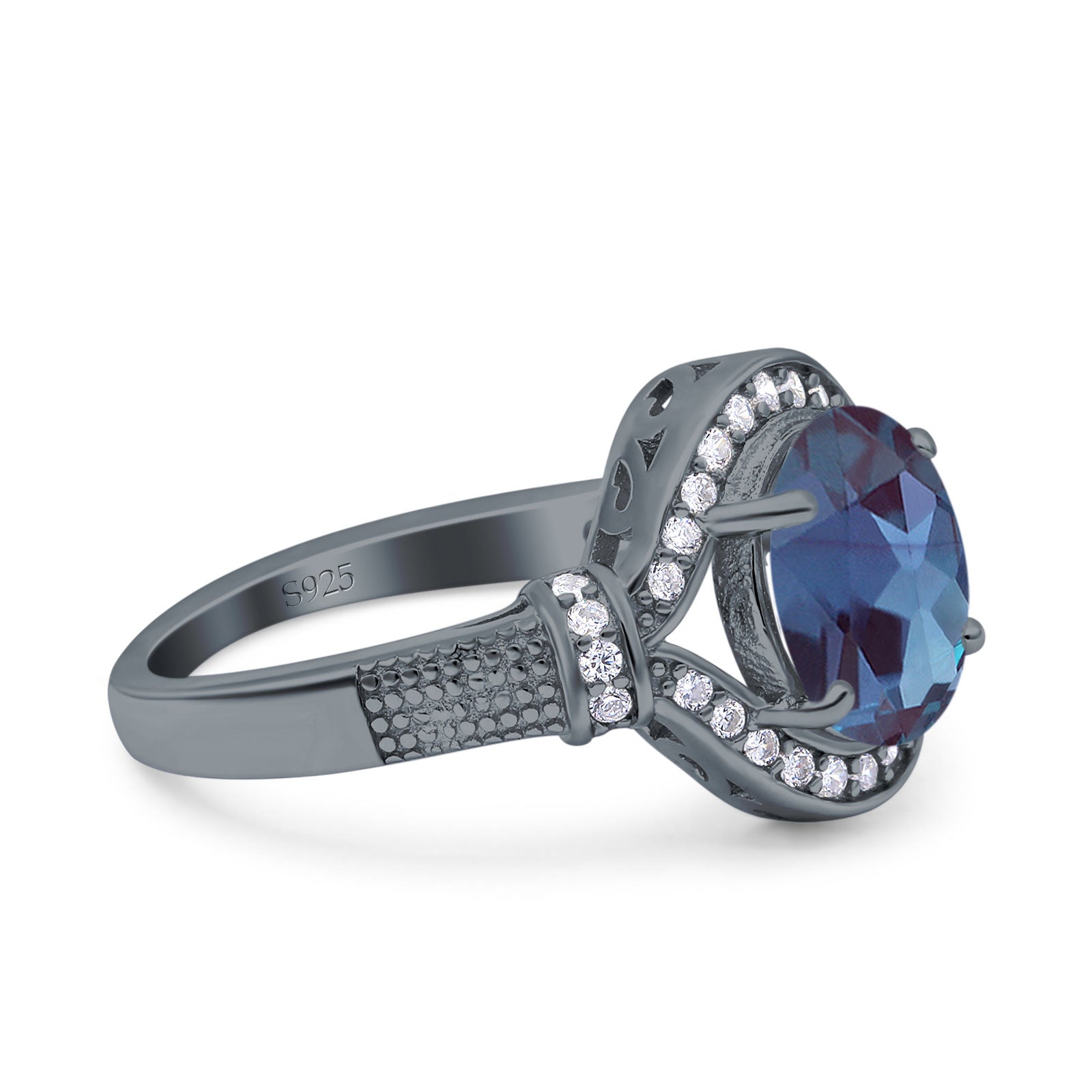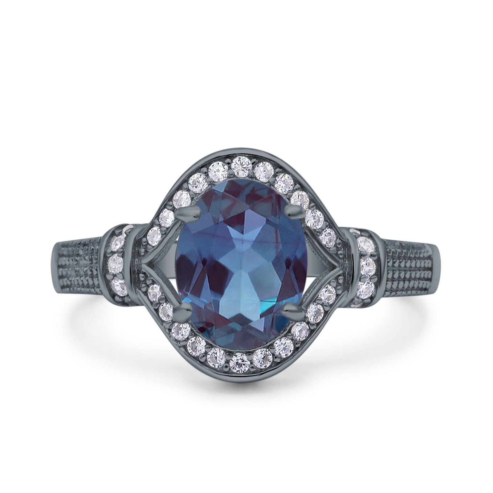 Oval Lab Alexandrite Halo Beaded Ring 925 Sterling Silver