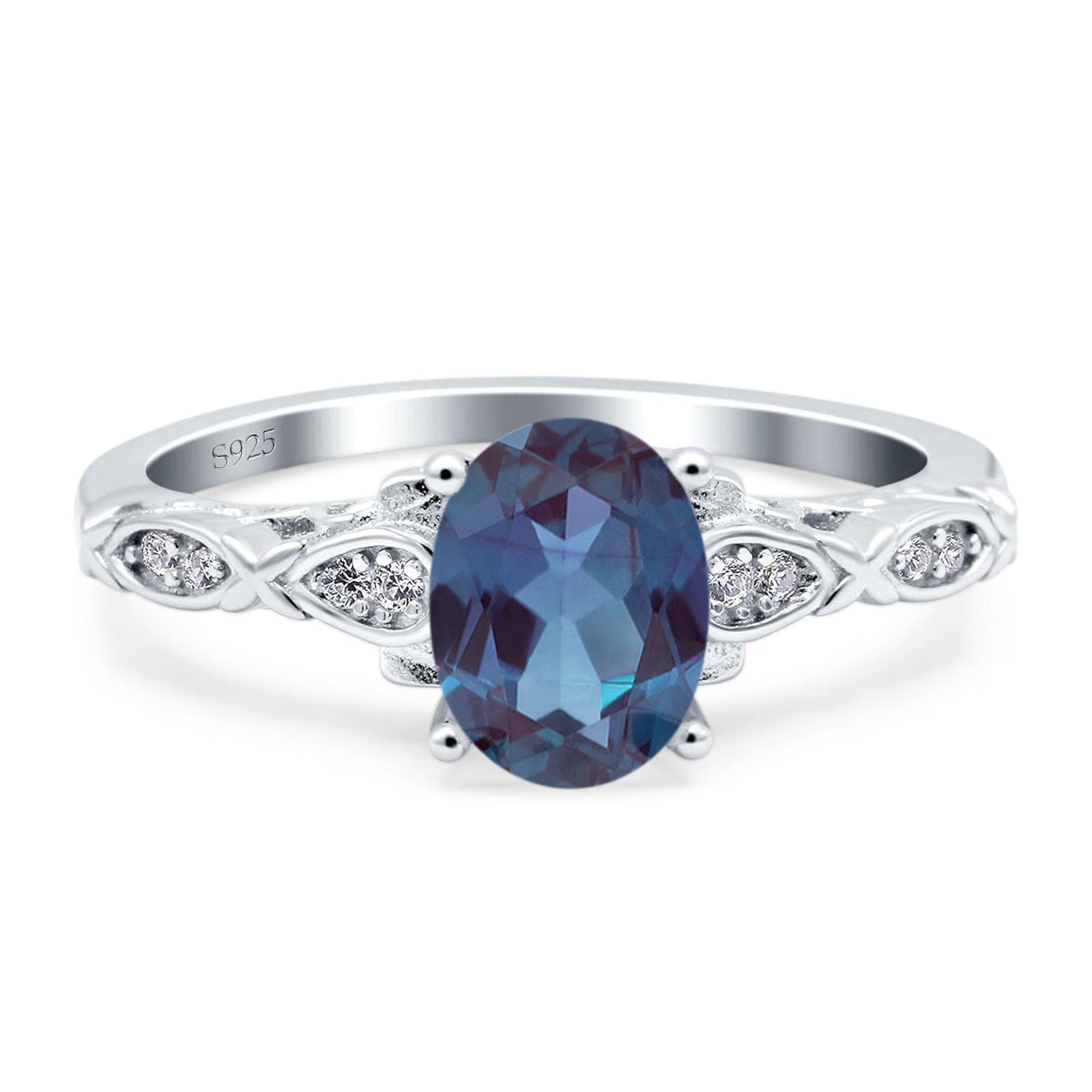 Oval Lab Alexandrite Leaf Filigree Ring 925 Sterling Silver