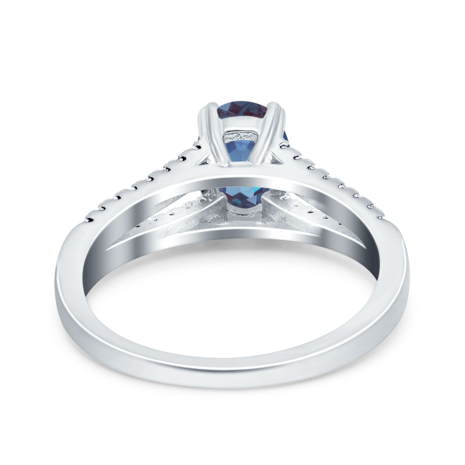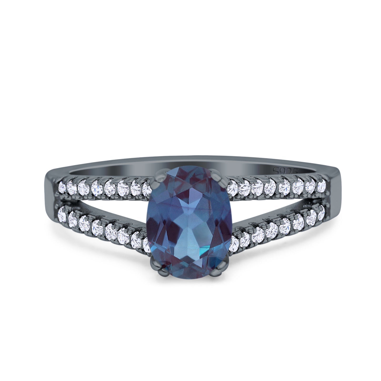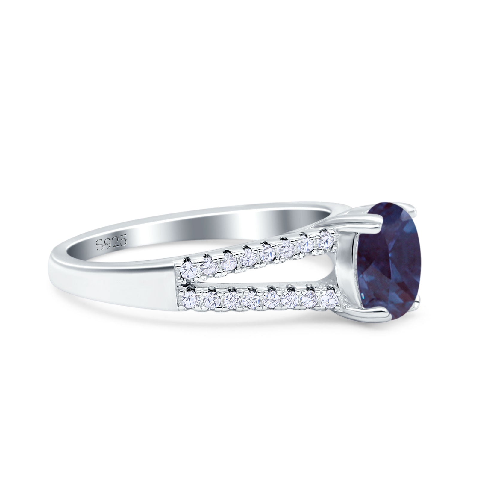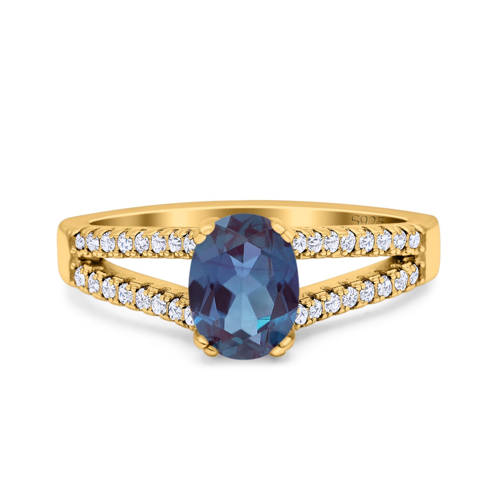Oval Lab Alexandrite Split Shank Vintage Style Ring 925 Sterling Silver