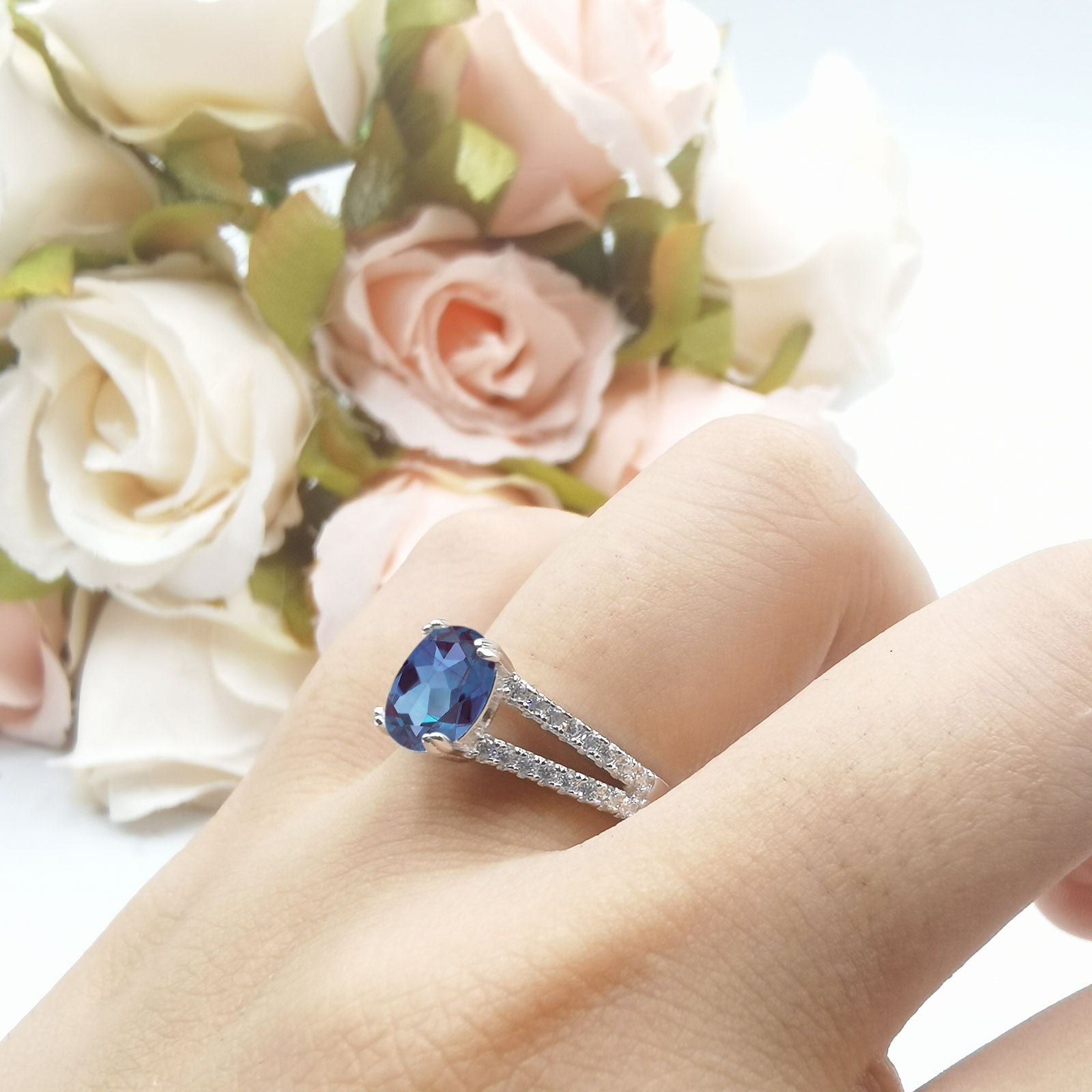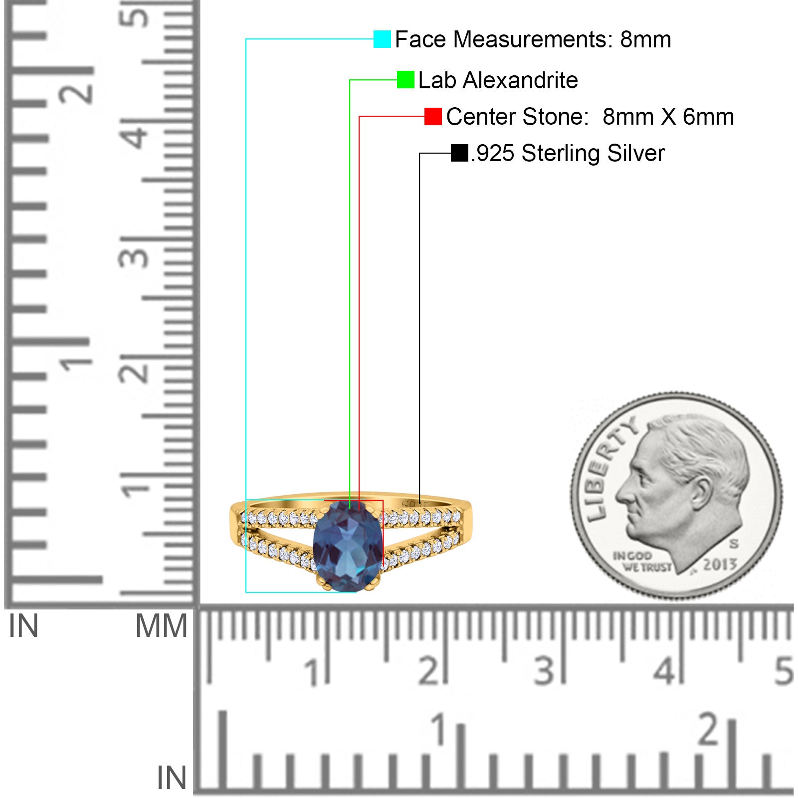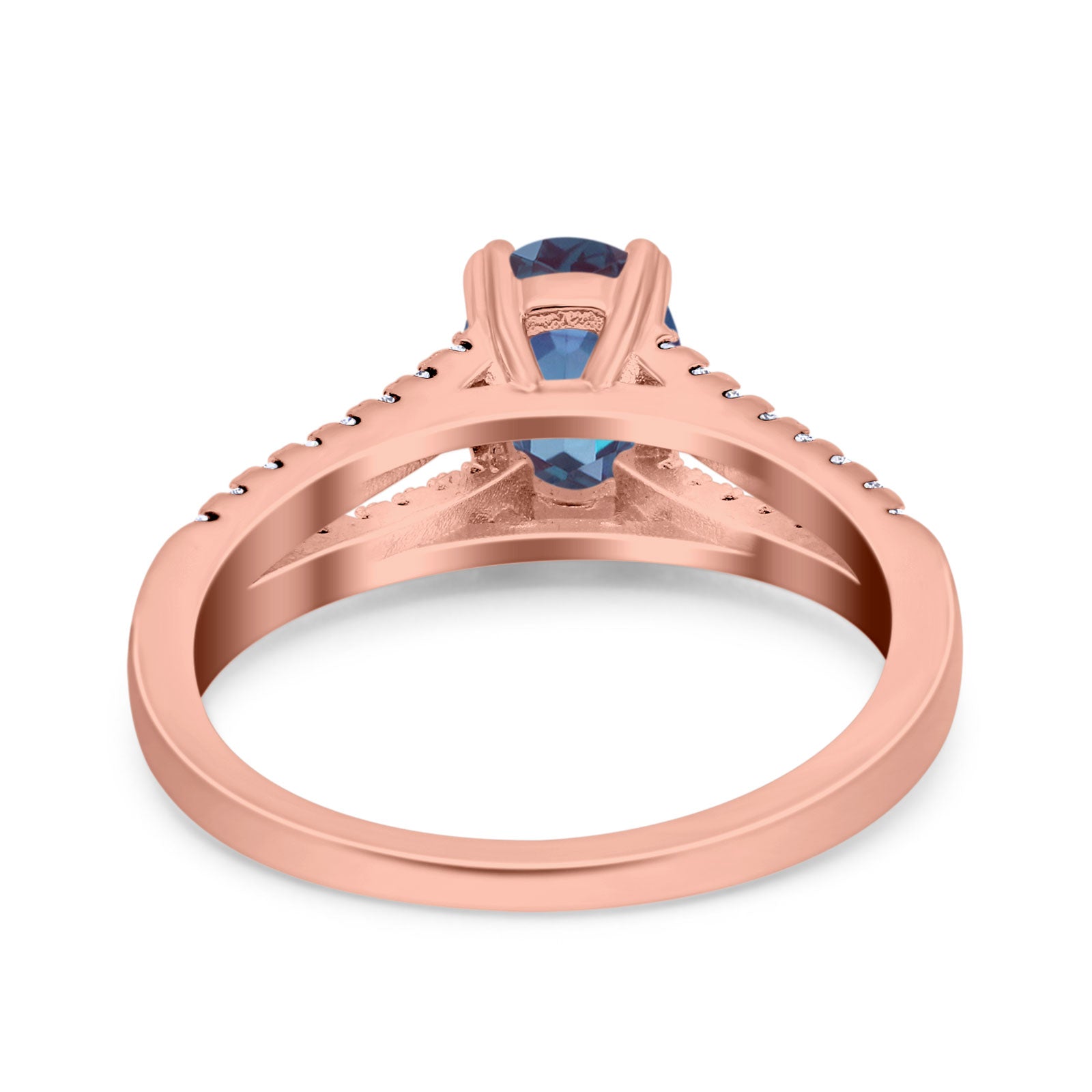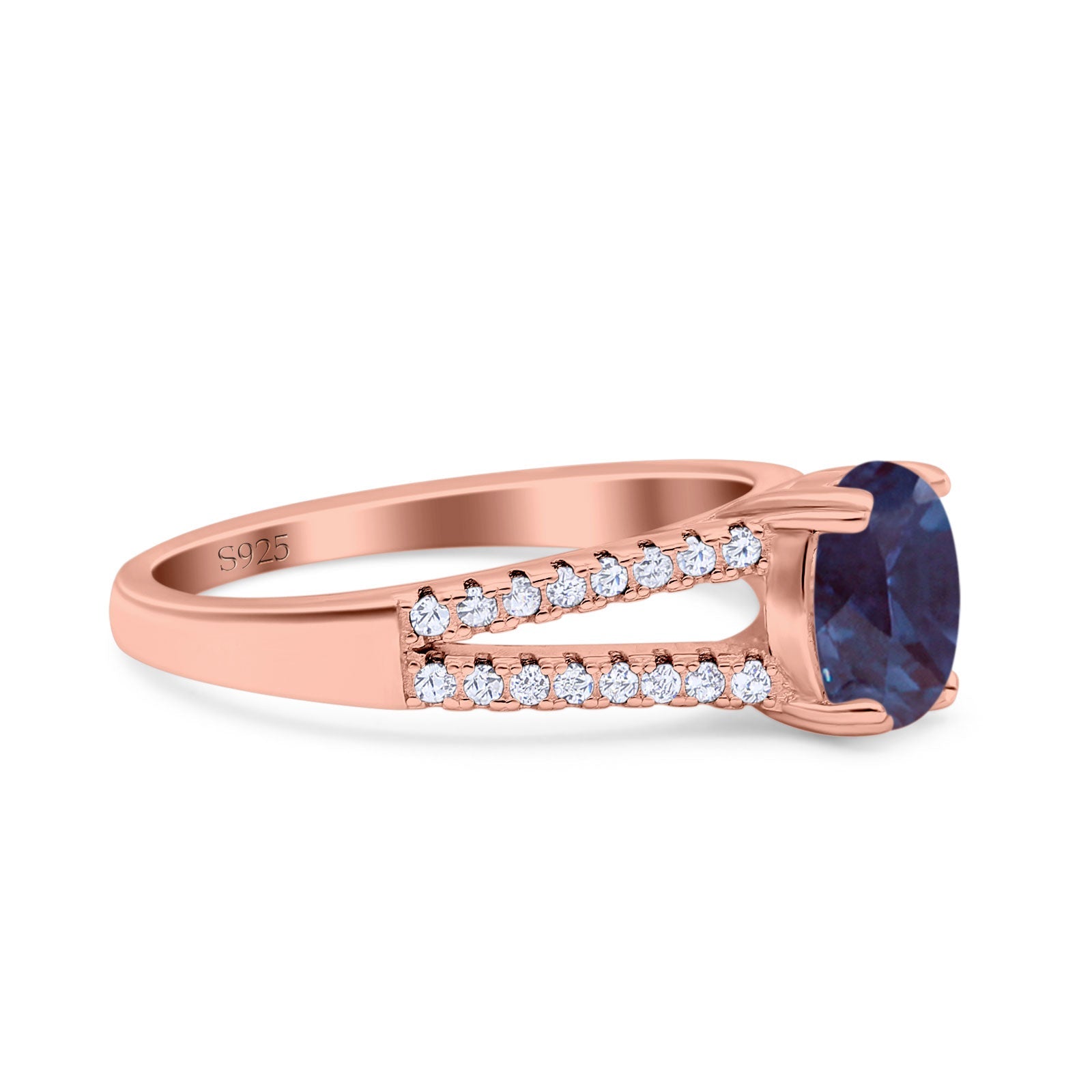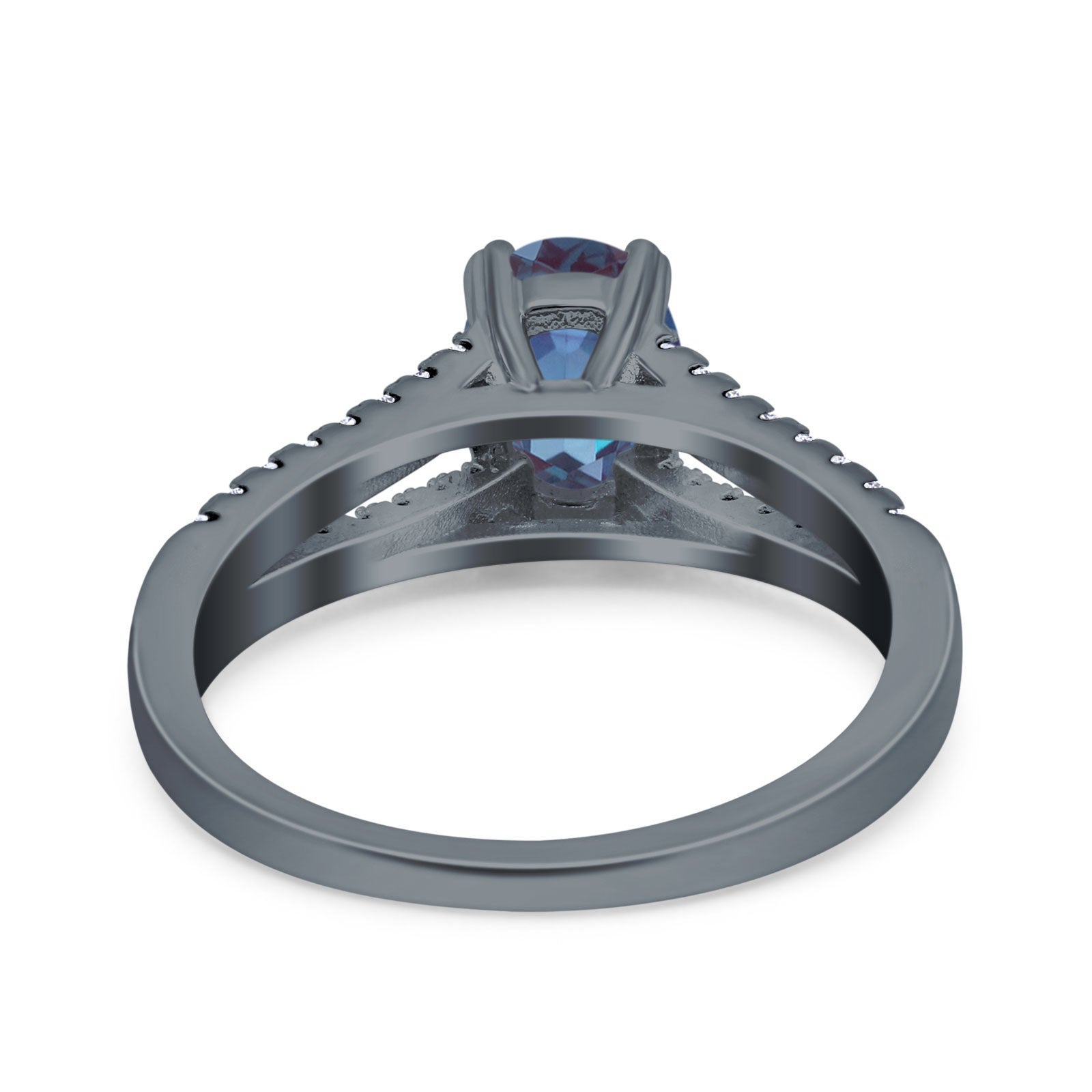 Oval Lab Alexandrite Split Shank Vintage Style Ring 925 Sterling Silver