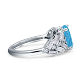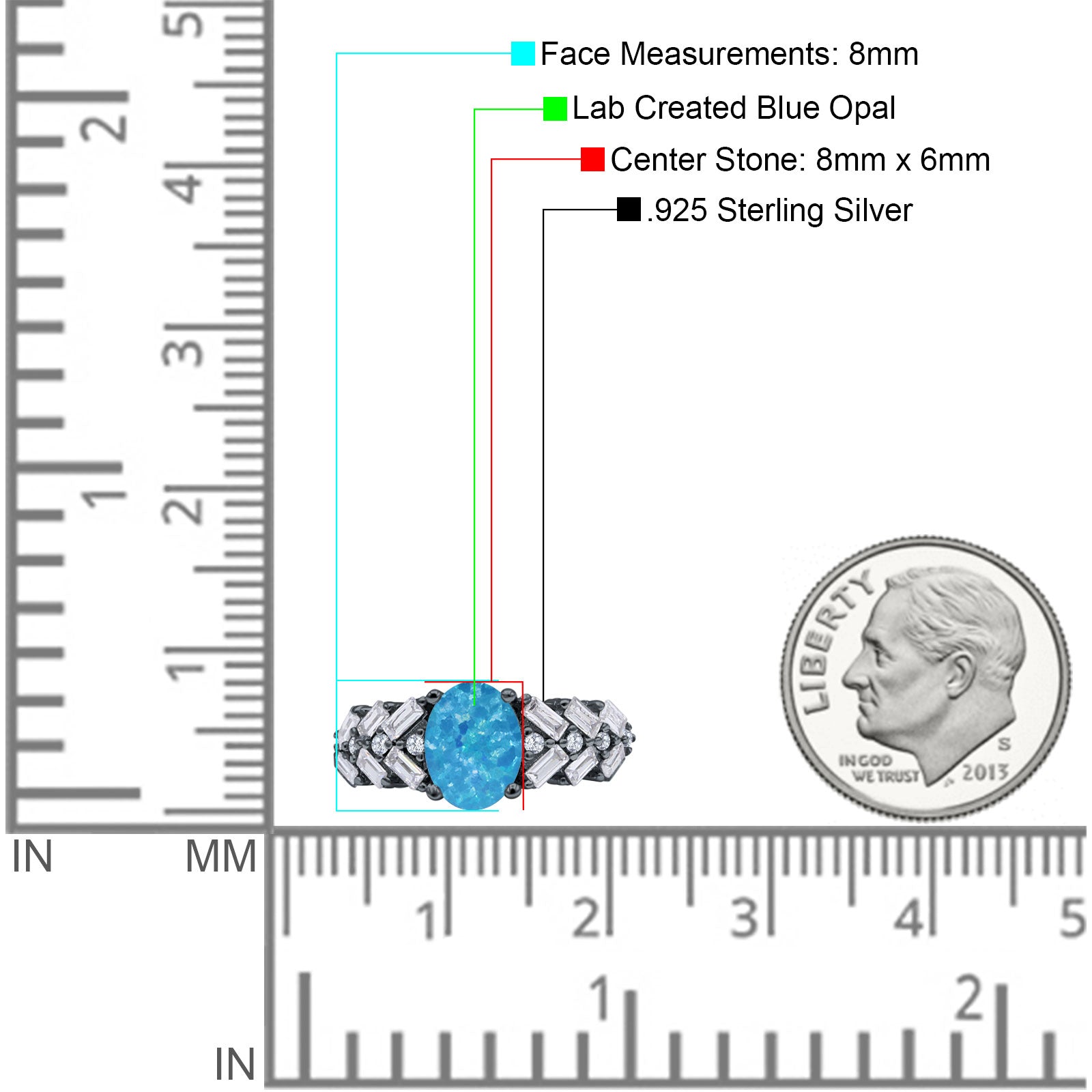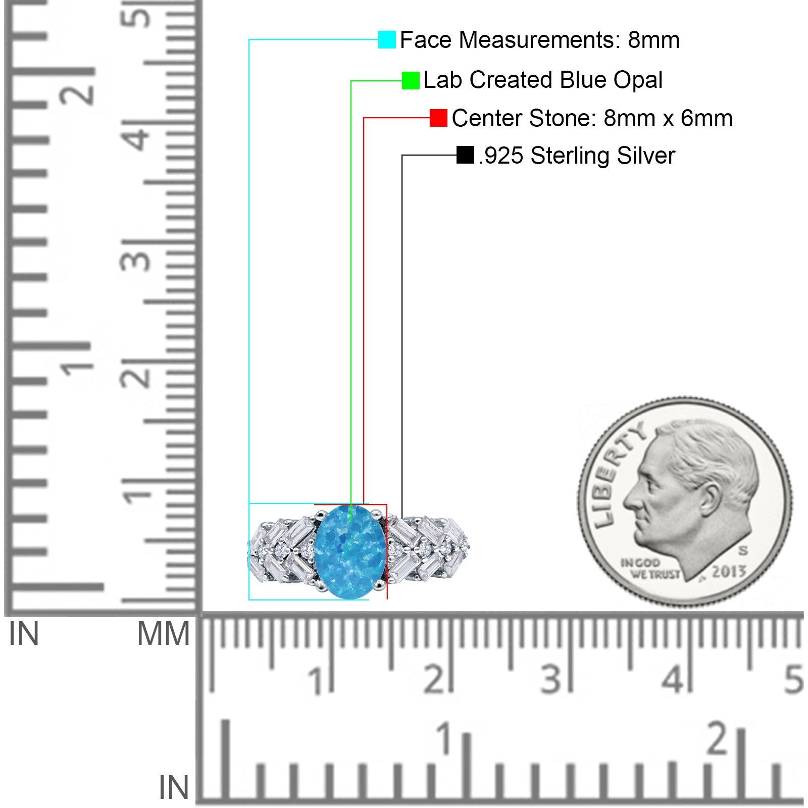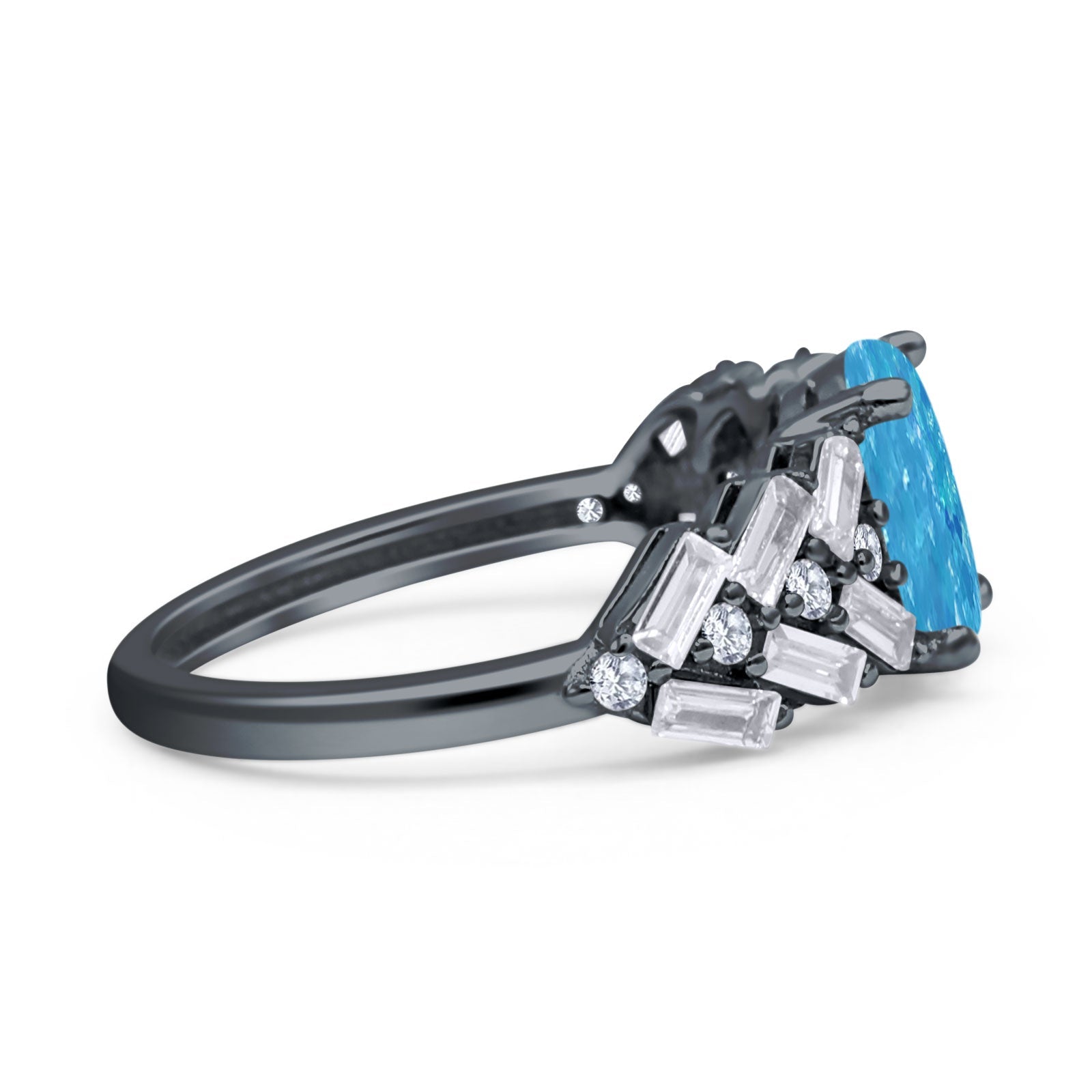 Oval Lab Created Blue Opal Cocktail Ring Cluster Baguette 925 Sterling Silver