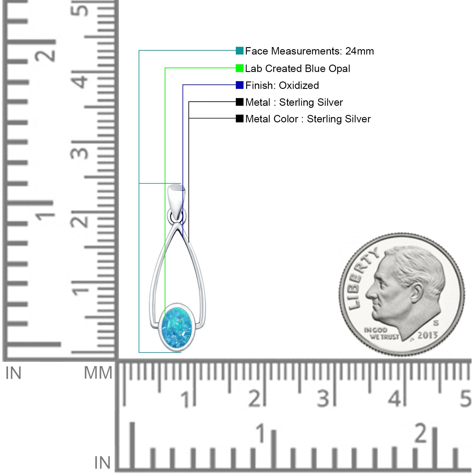 Style: Oxidized Oval Lab Created Blue Opal Drop Dangle Pendant Necklace