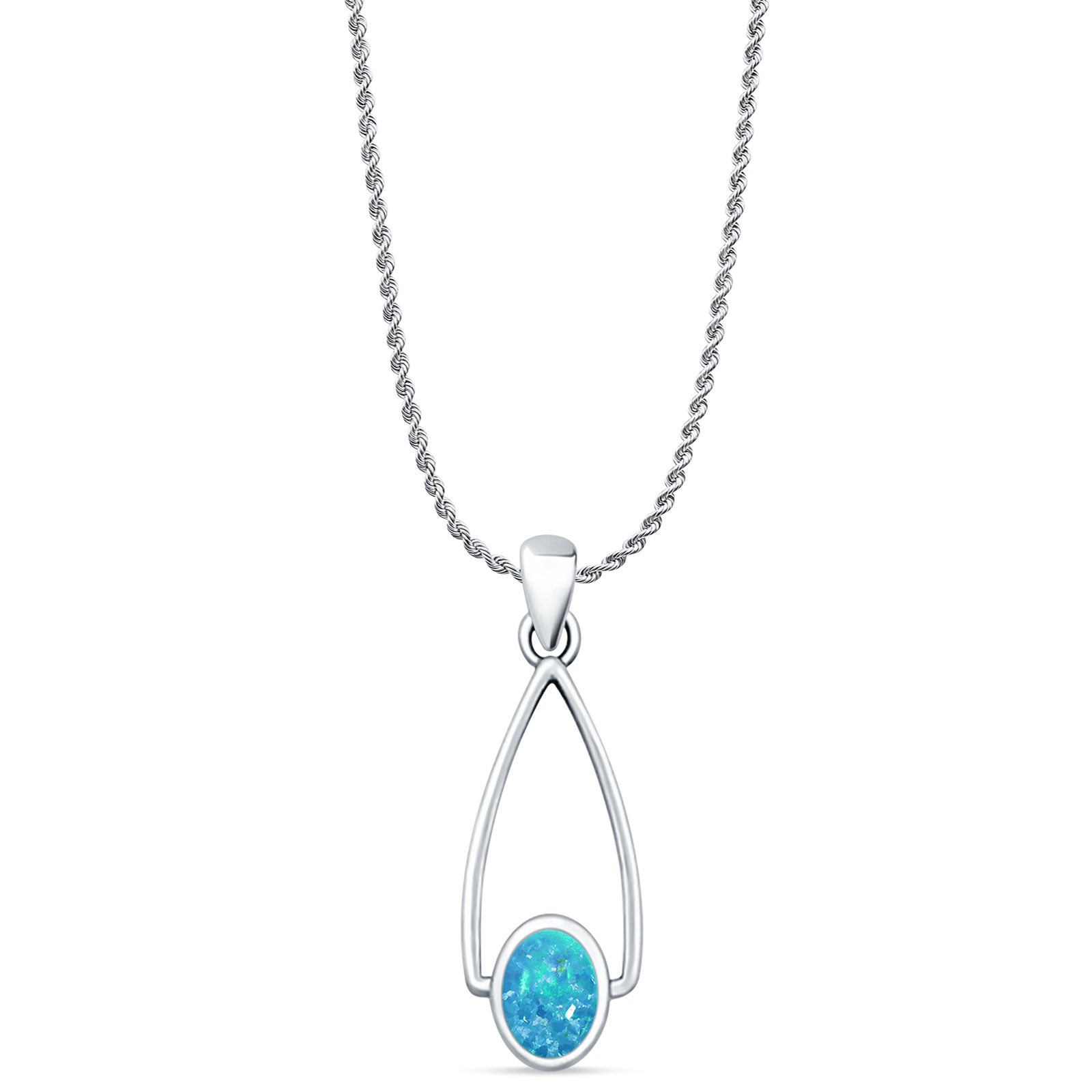 Style: Oxidized Oval Lab Created Blue Opal Drop Dangle Pendant Necklace