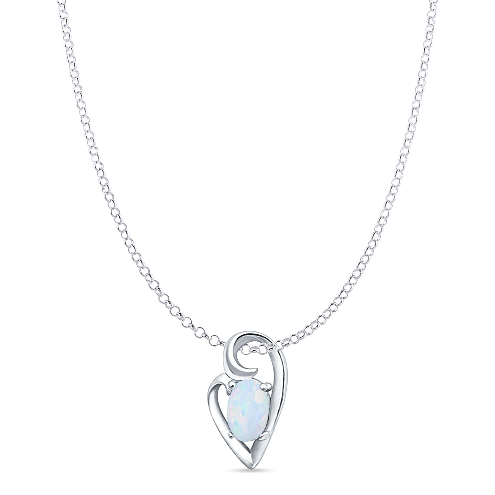 Style: Oval Lab Created White Opal Heart Pendant Necklace