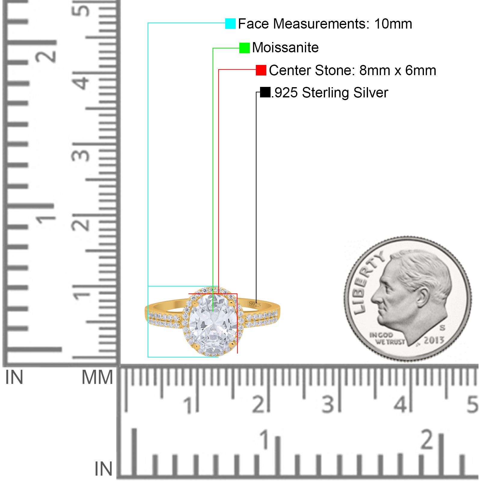 Center Stone Measurements: 8mmX6mm.