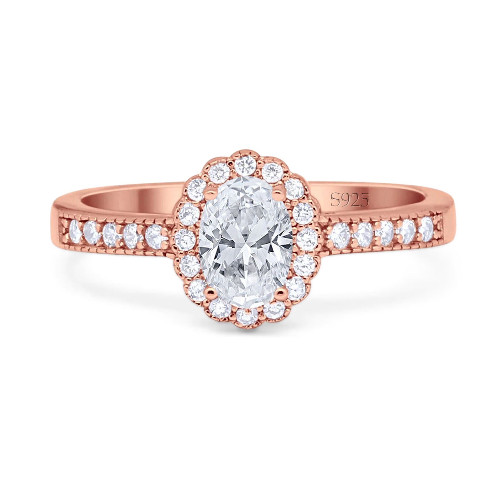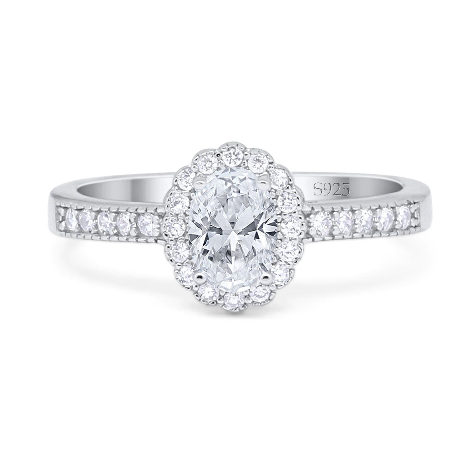 Oval Moissanite Flower Ring Halo Vintage Style 925 Sterling Silver