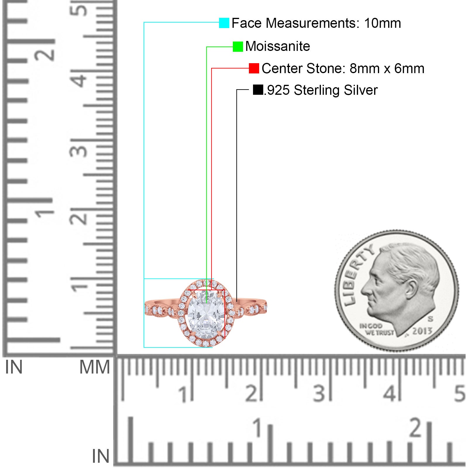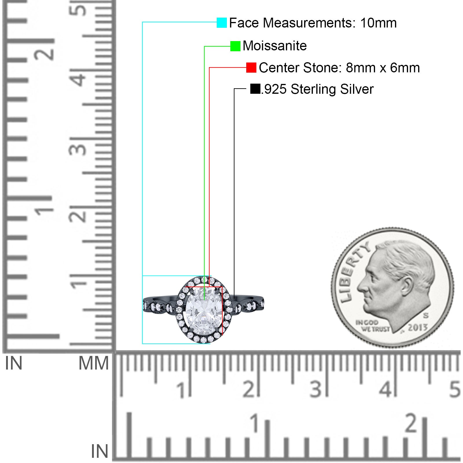 Center Stone Measurements:8mmx6mm.