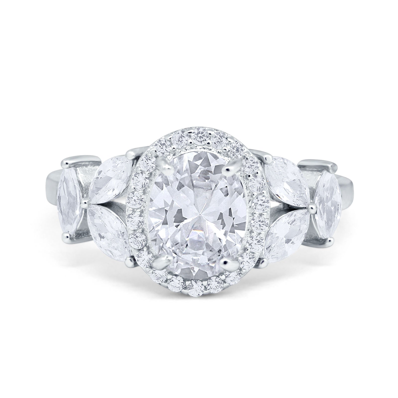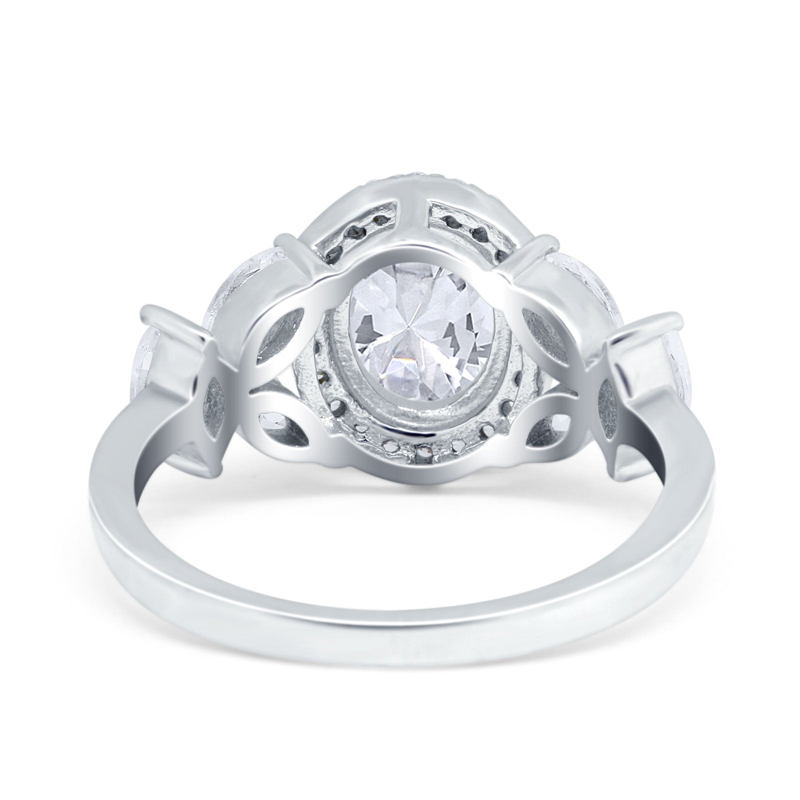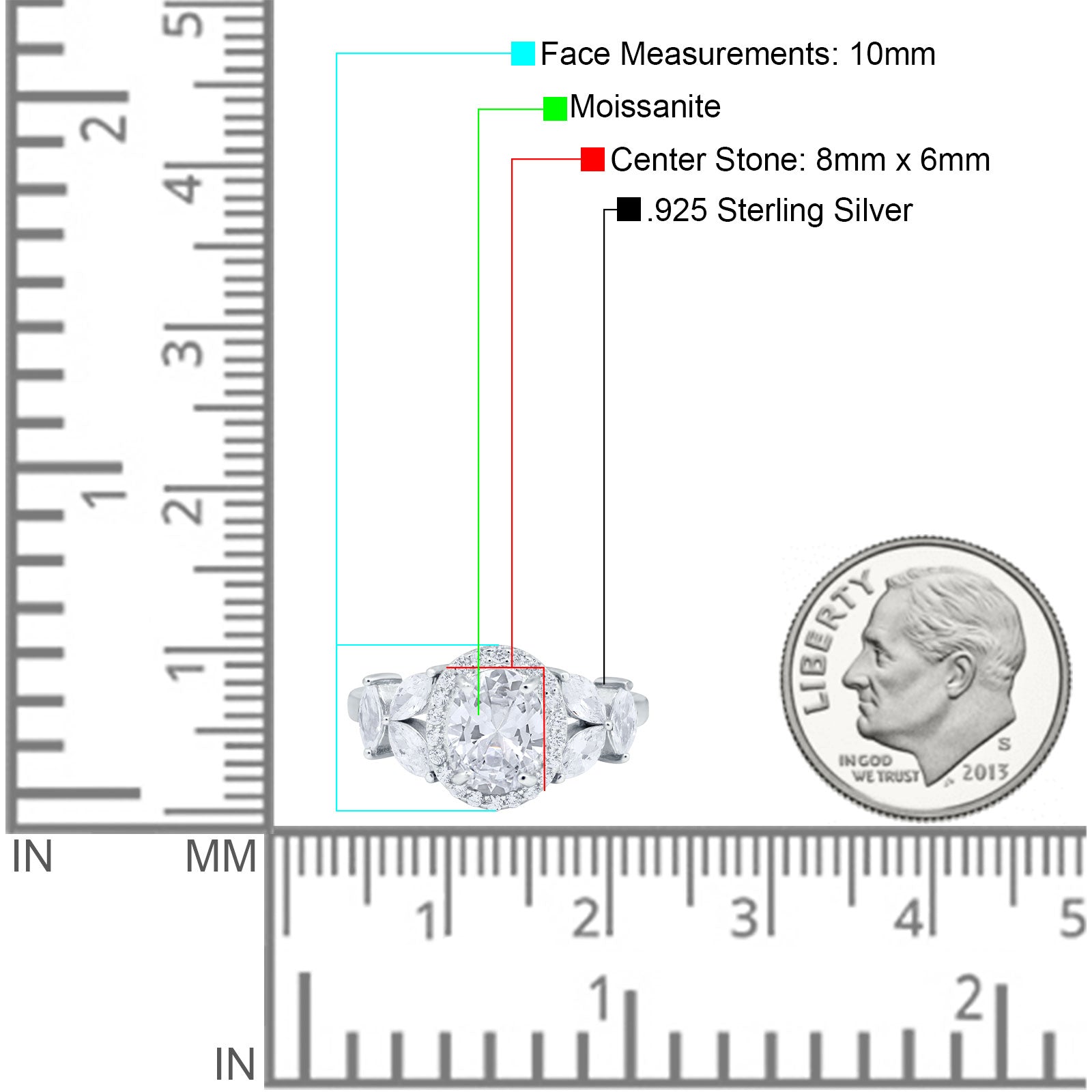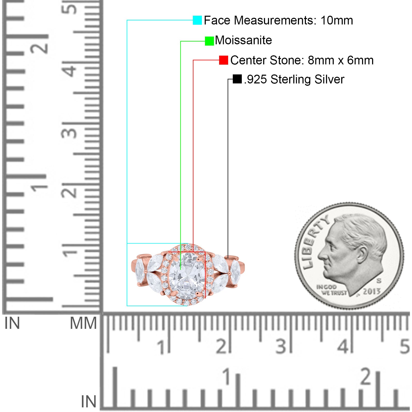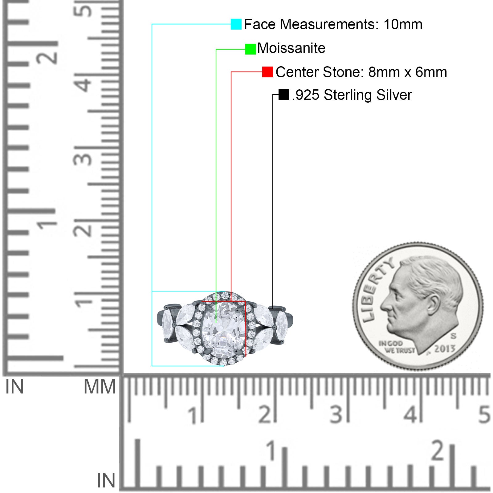 Oval Moissanite Halo Vintage Style Accent Ring 925 Sterling Silver