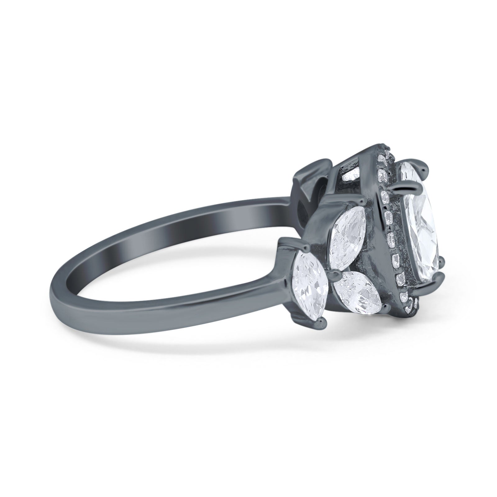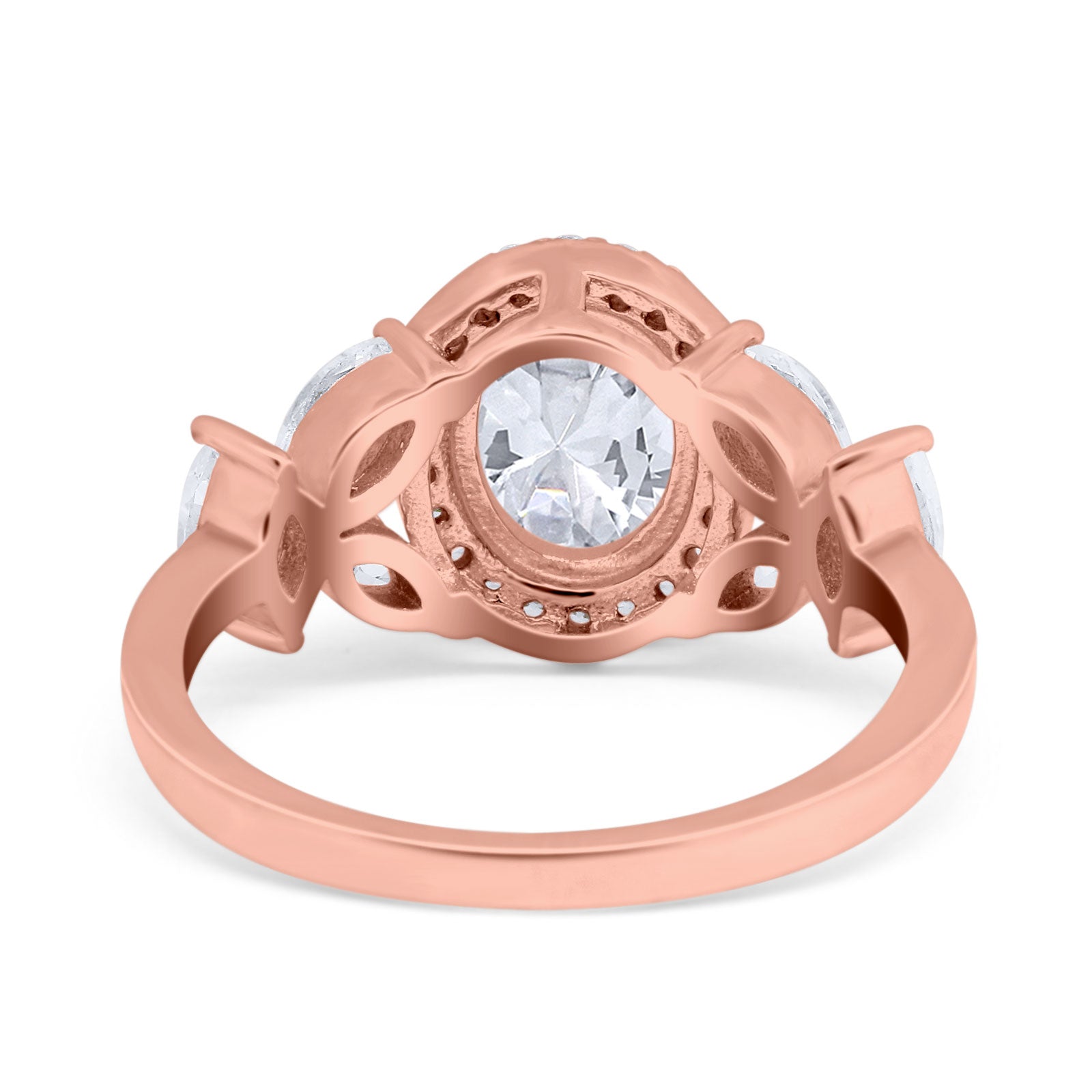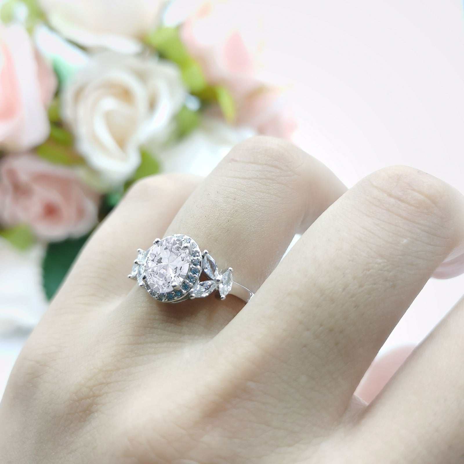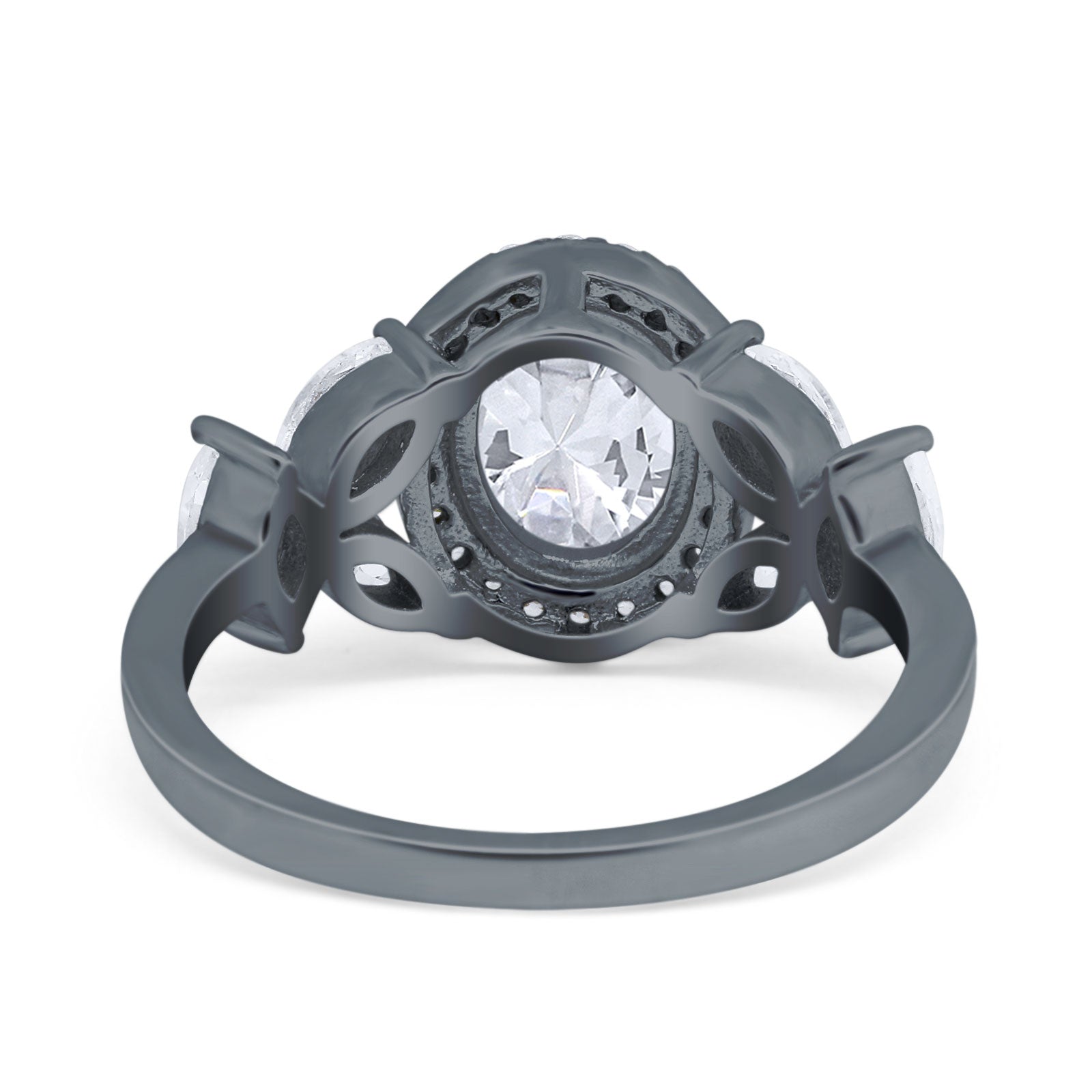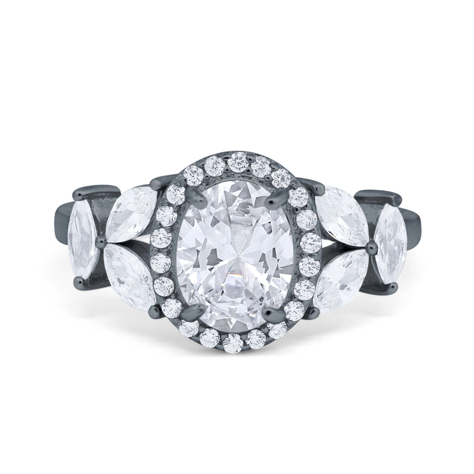 Oval Moissanite Halo Vintage Style Accent Ring 925 Sterling Silver