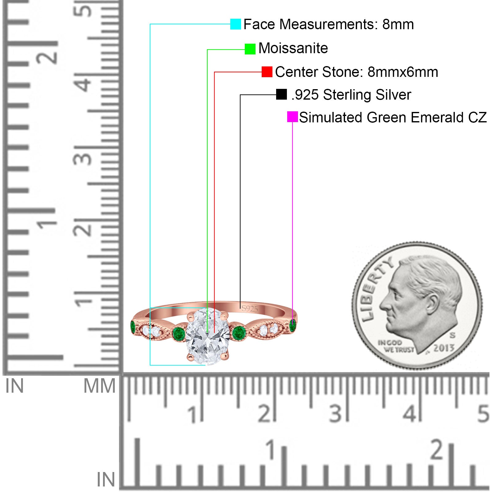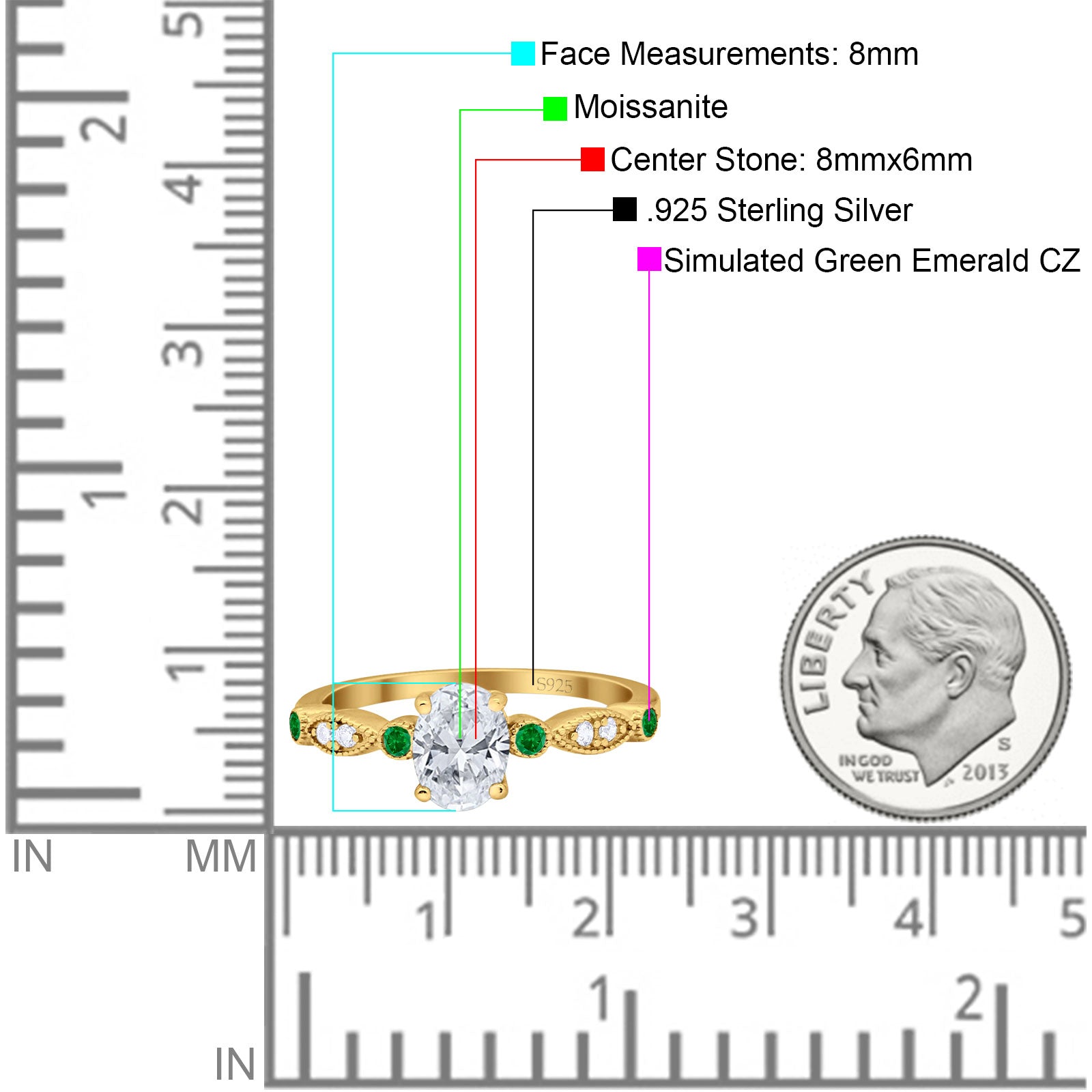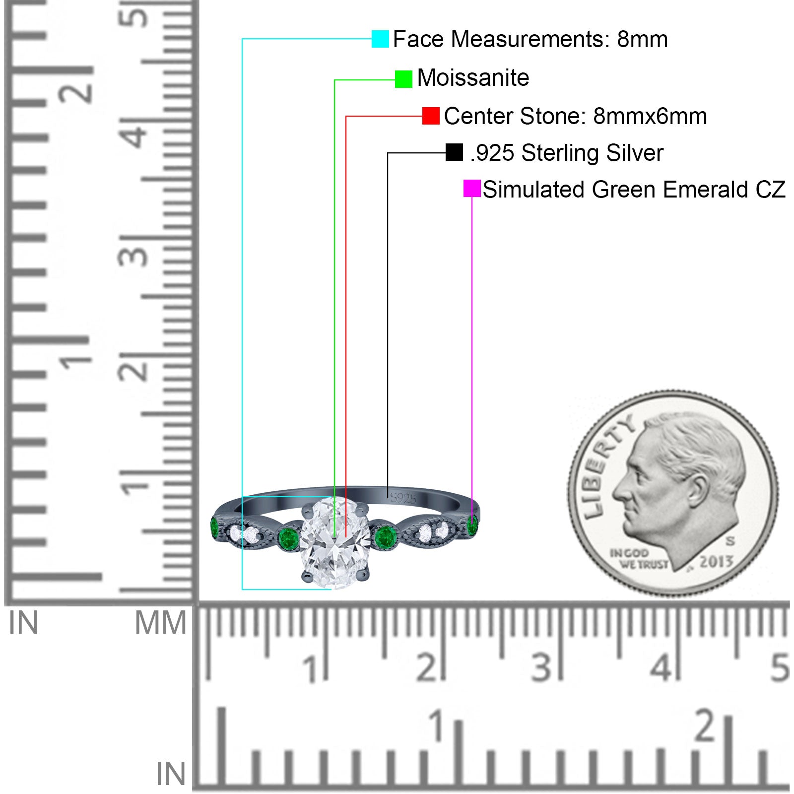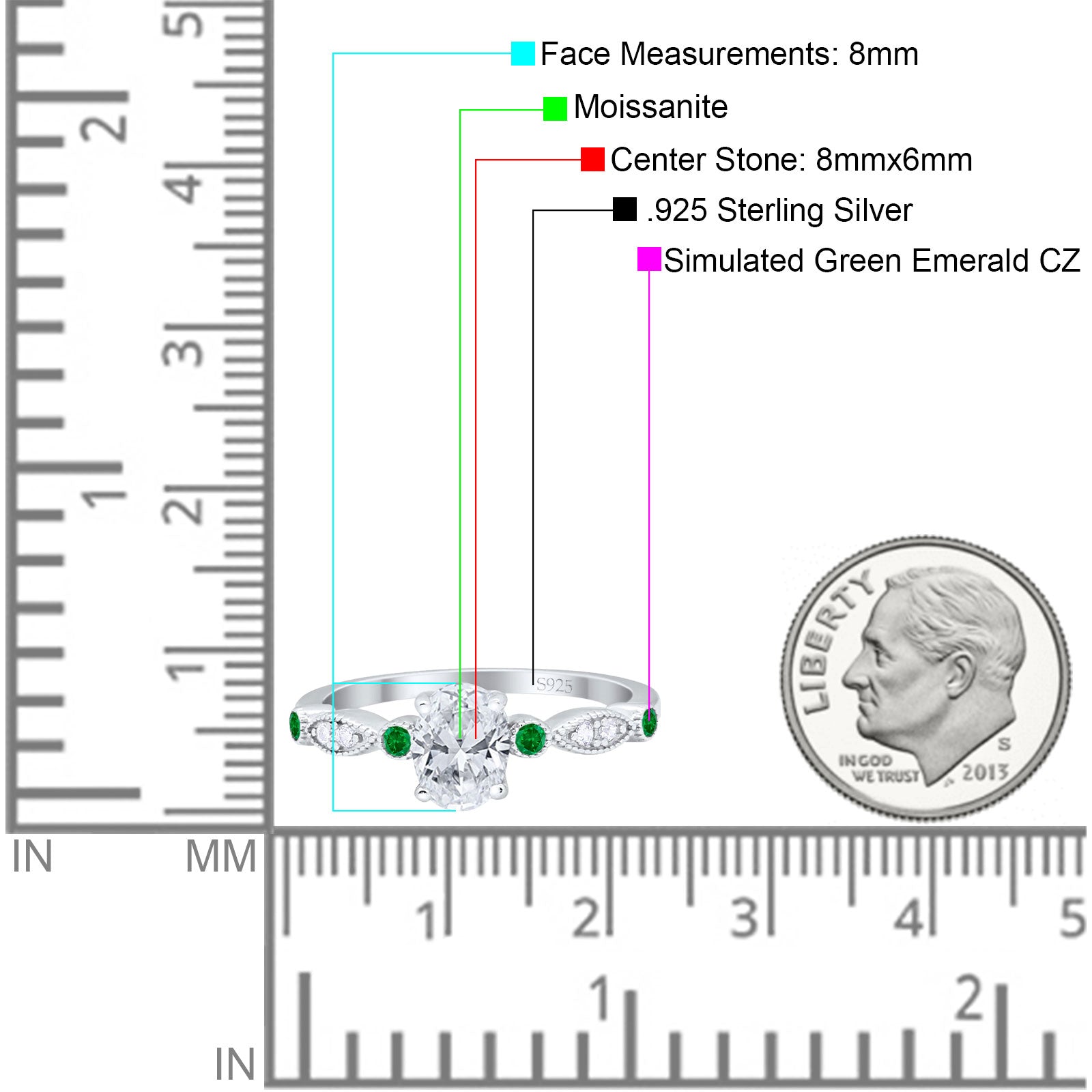 Side Stone: Green Emerald(CZ).