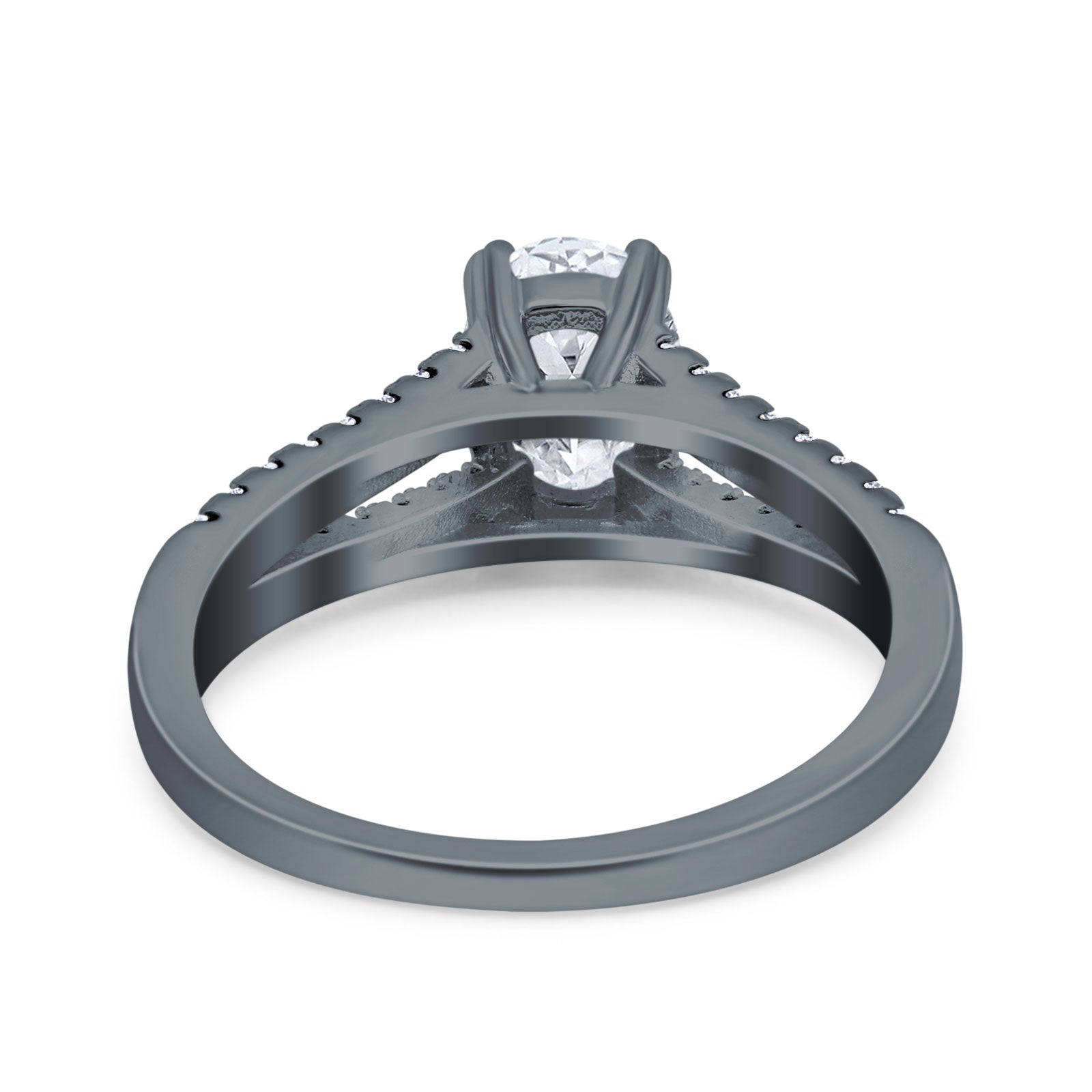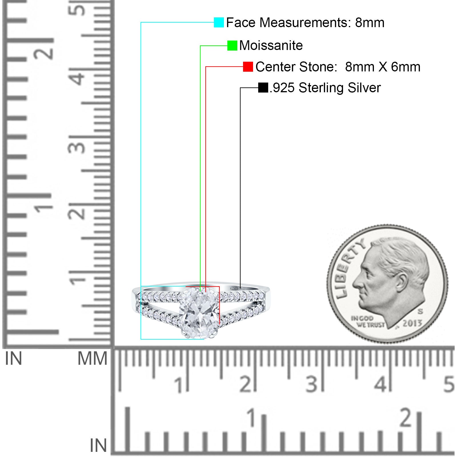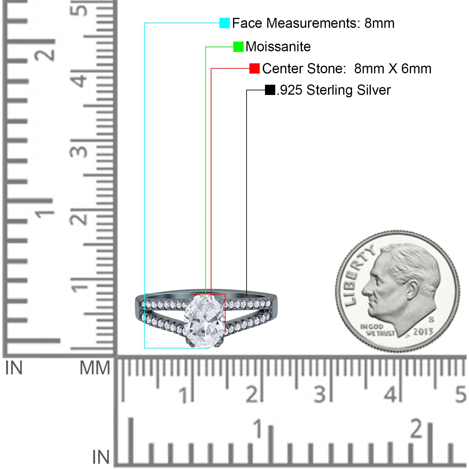 Oval Moissanite Split Shank Vintage Style Ring 925 Sterling Silver