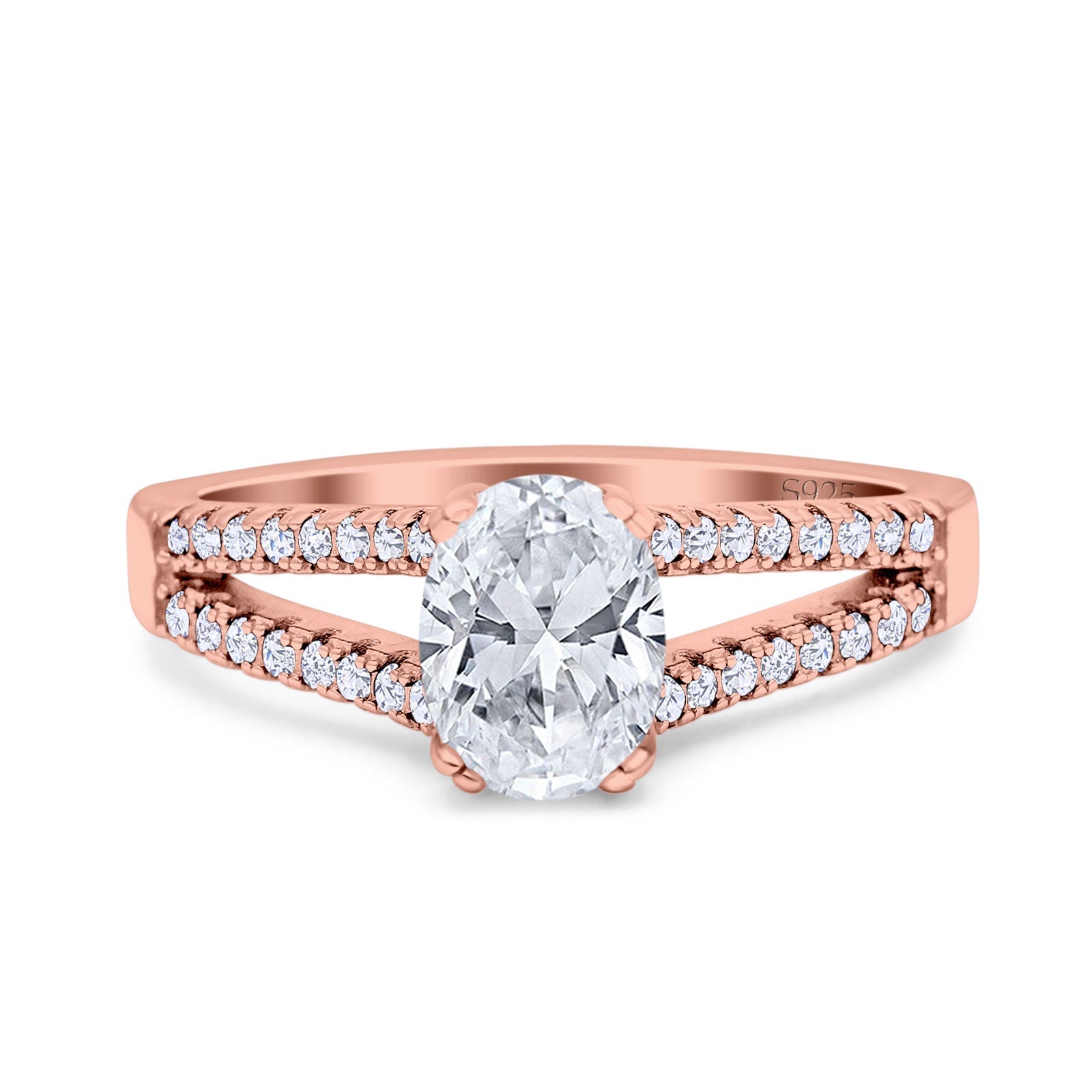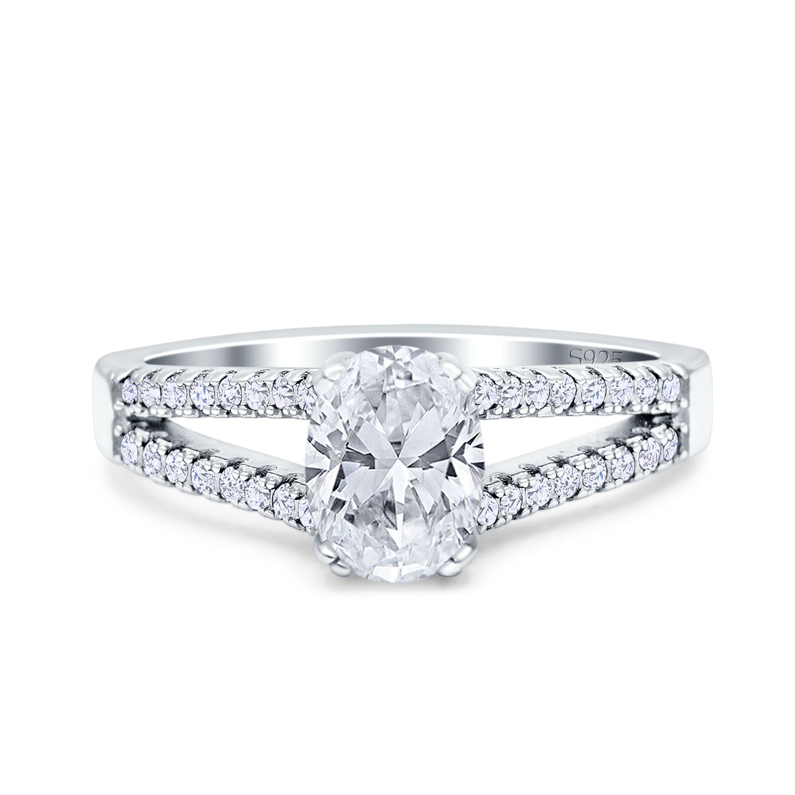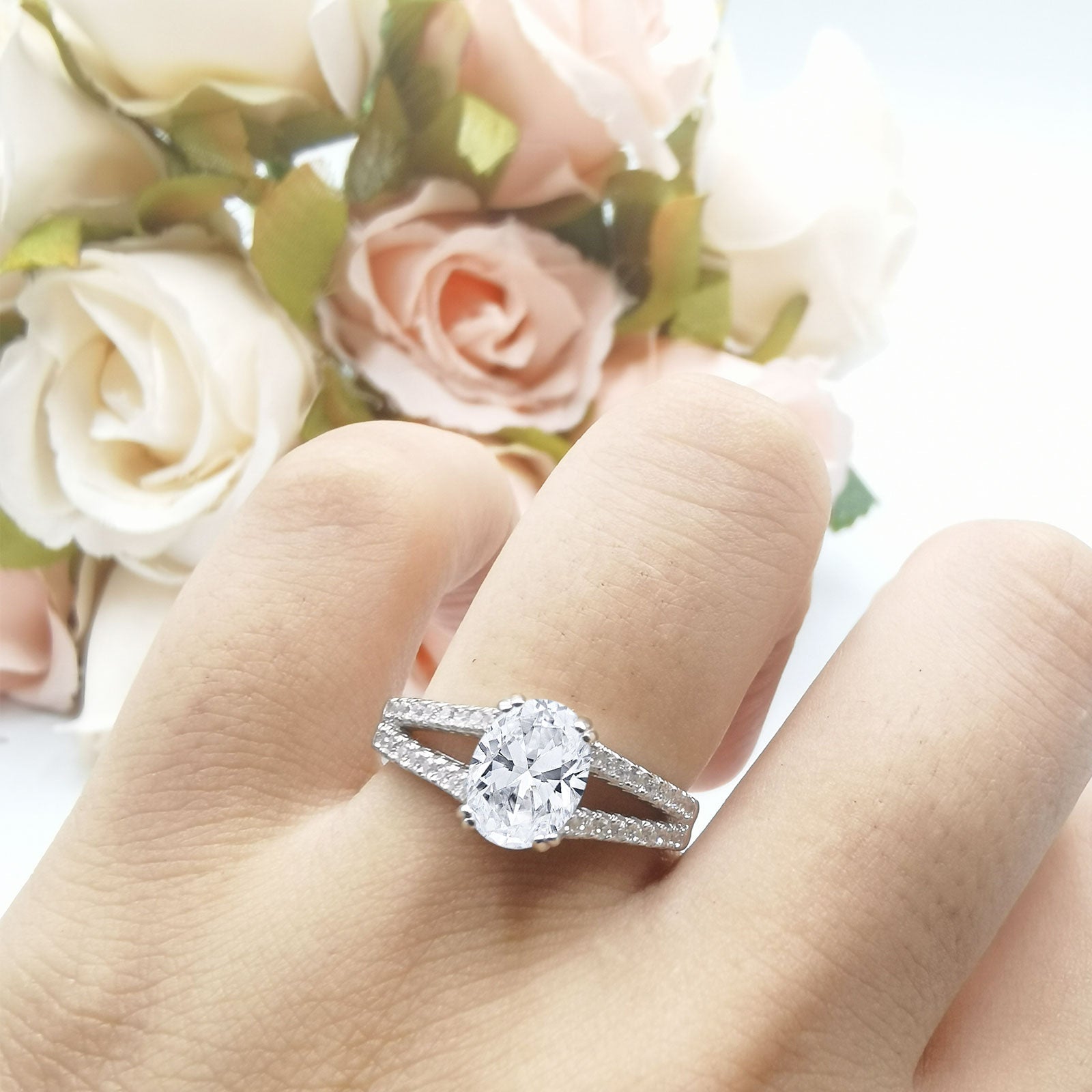 Oval Moissanite Split Shank Vintage Style Ring 925 Sterling Silver
