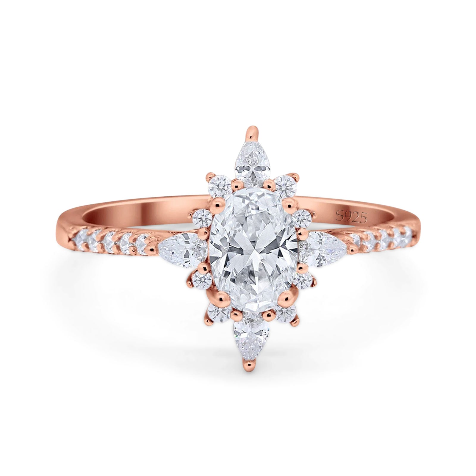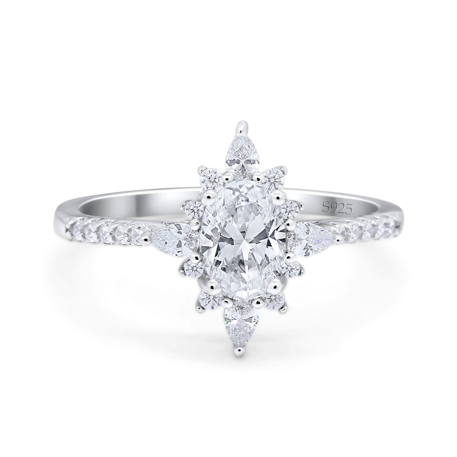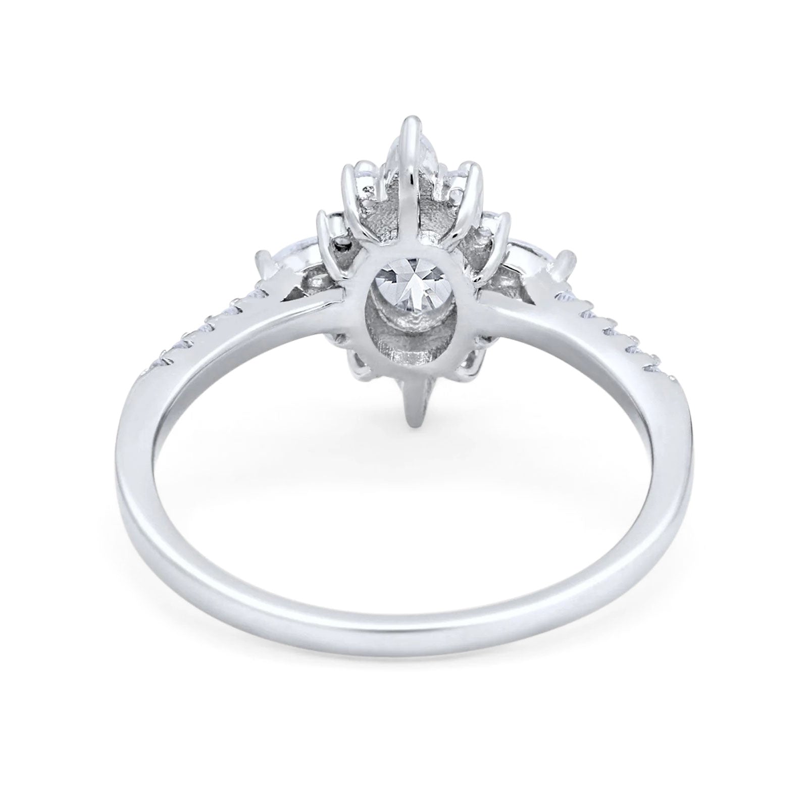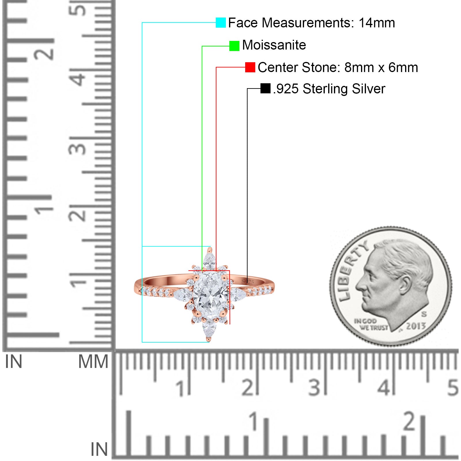 Oval Moissanite Vintage Style Accent Floral Ring 925 Sterling Silver
