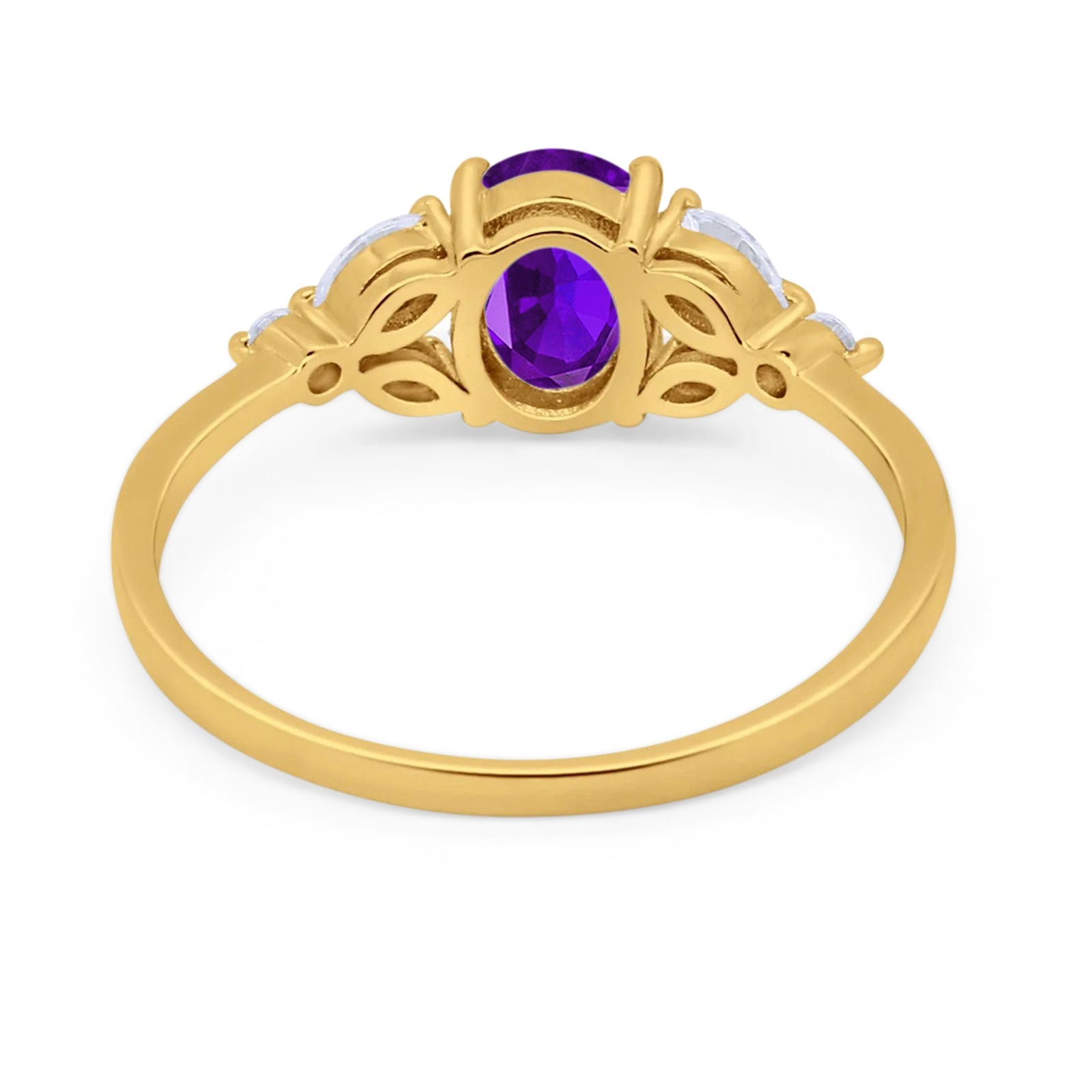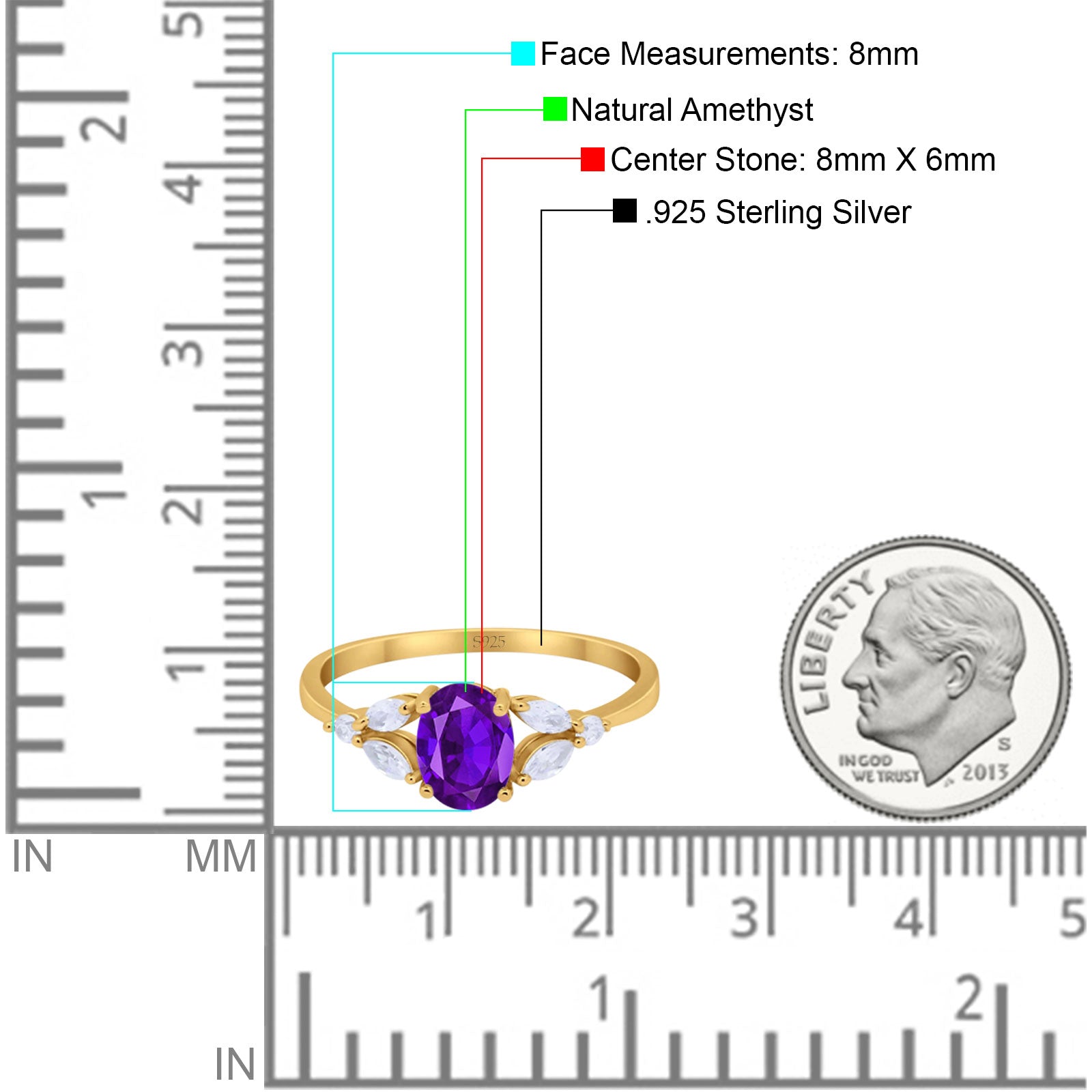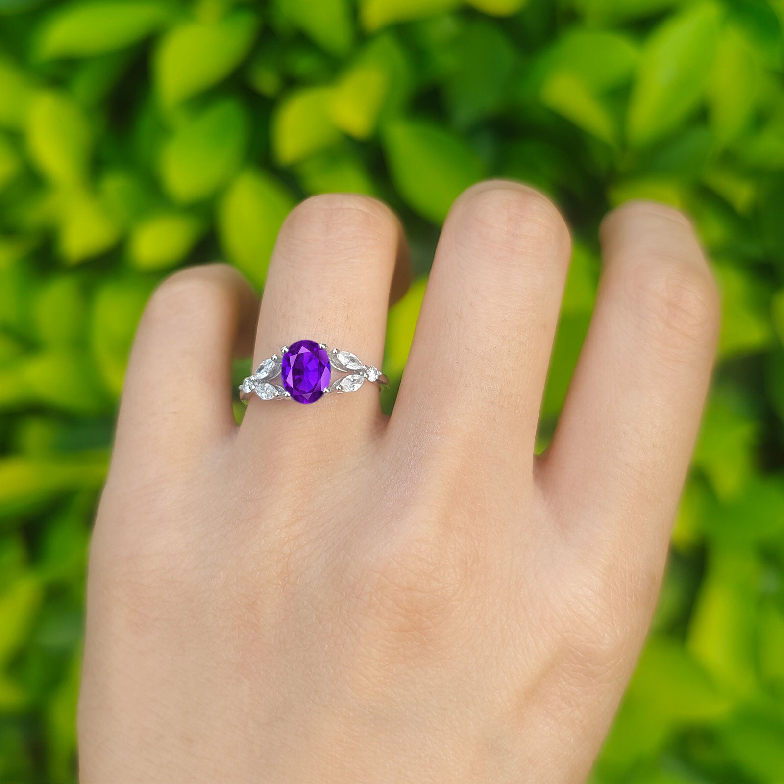 Oval Natural Amethyst Art Deco Marquise Trillium Ring 925 Sterling Silver