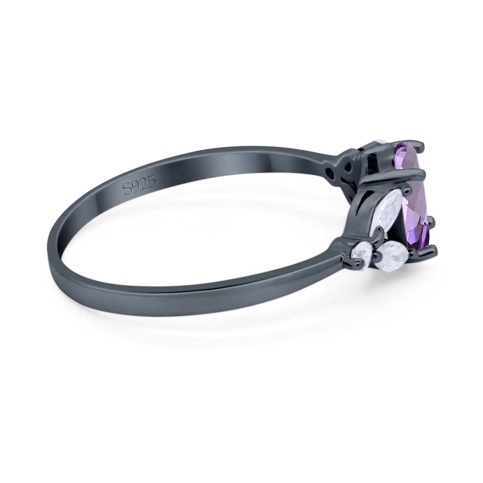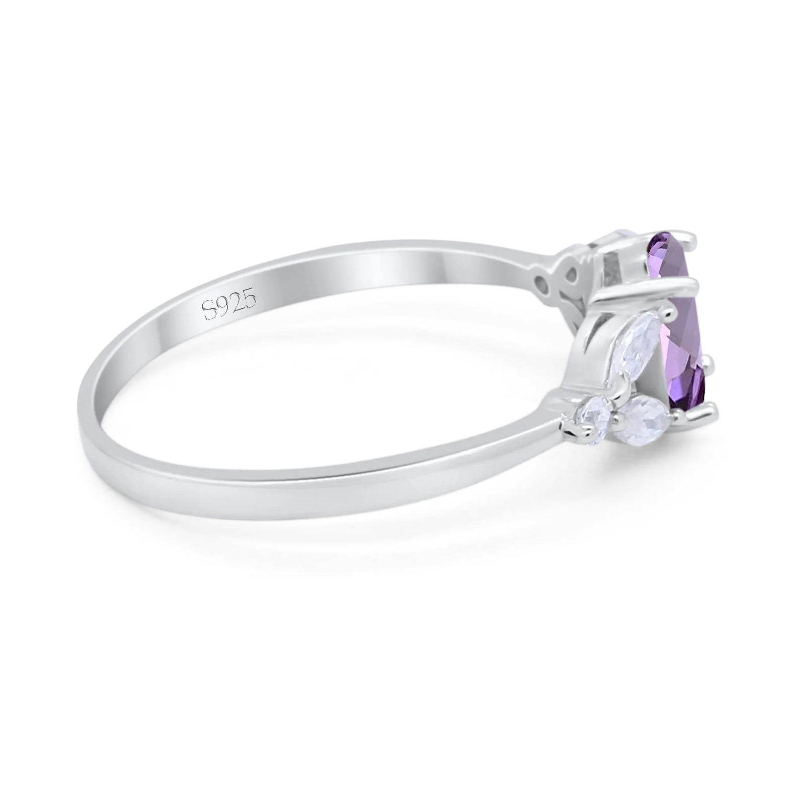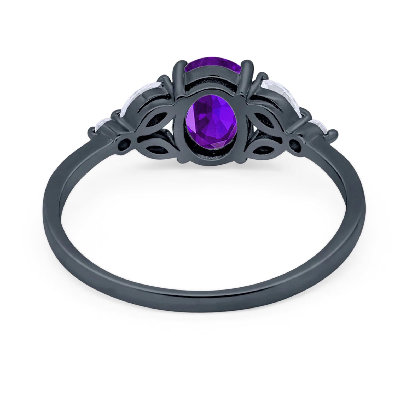 Oval Natural Amethyst Art Deco Marquise Trillium Ring 925 Sterling Silver