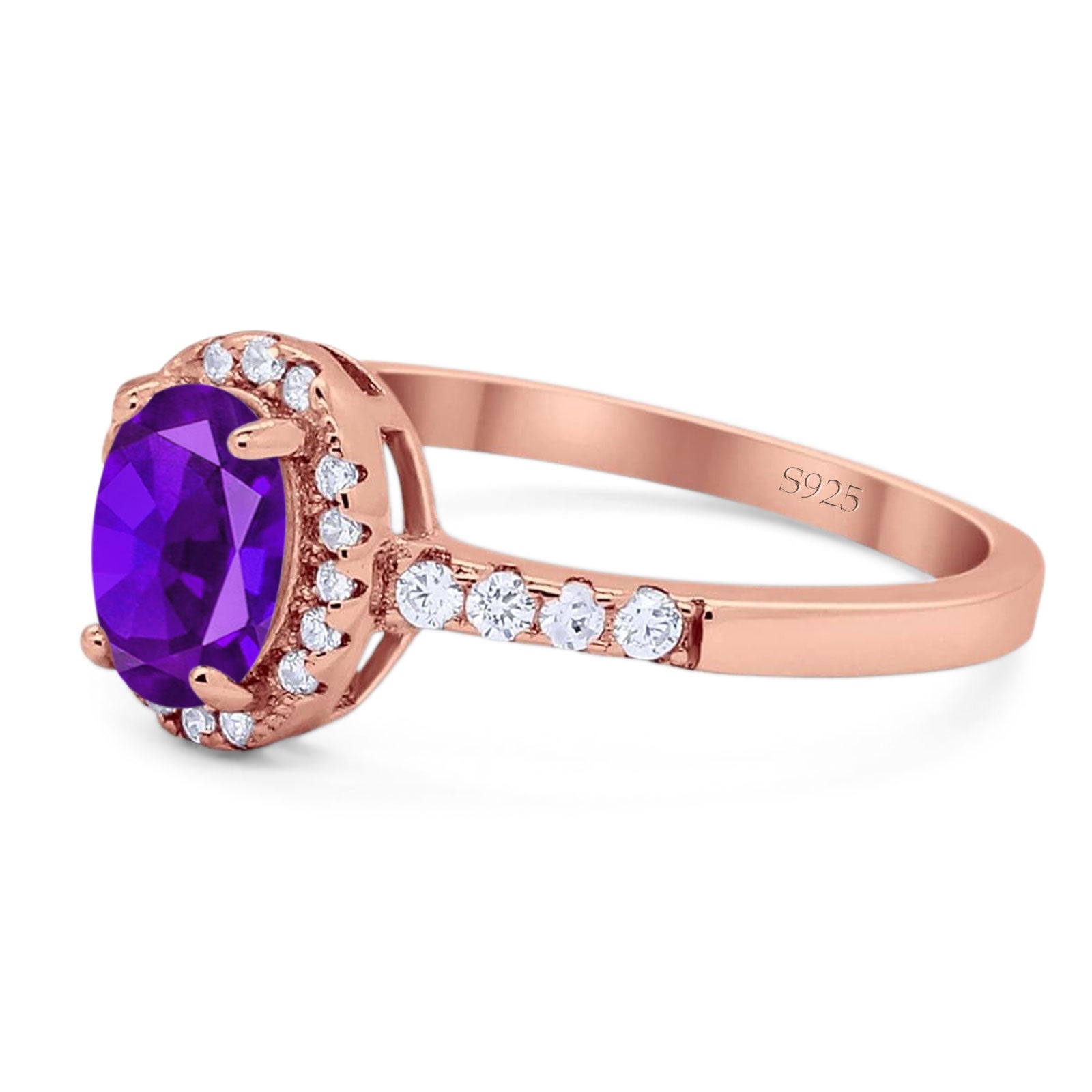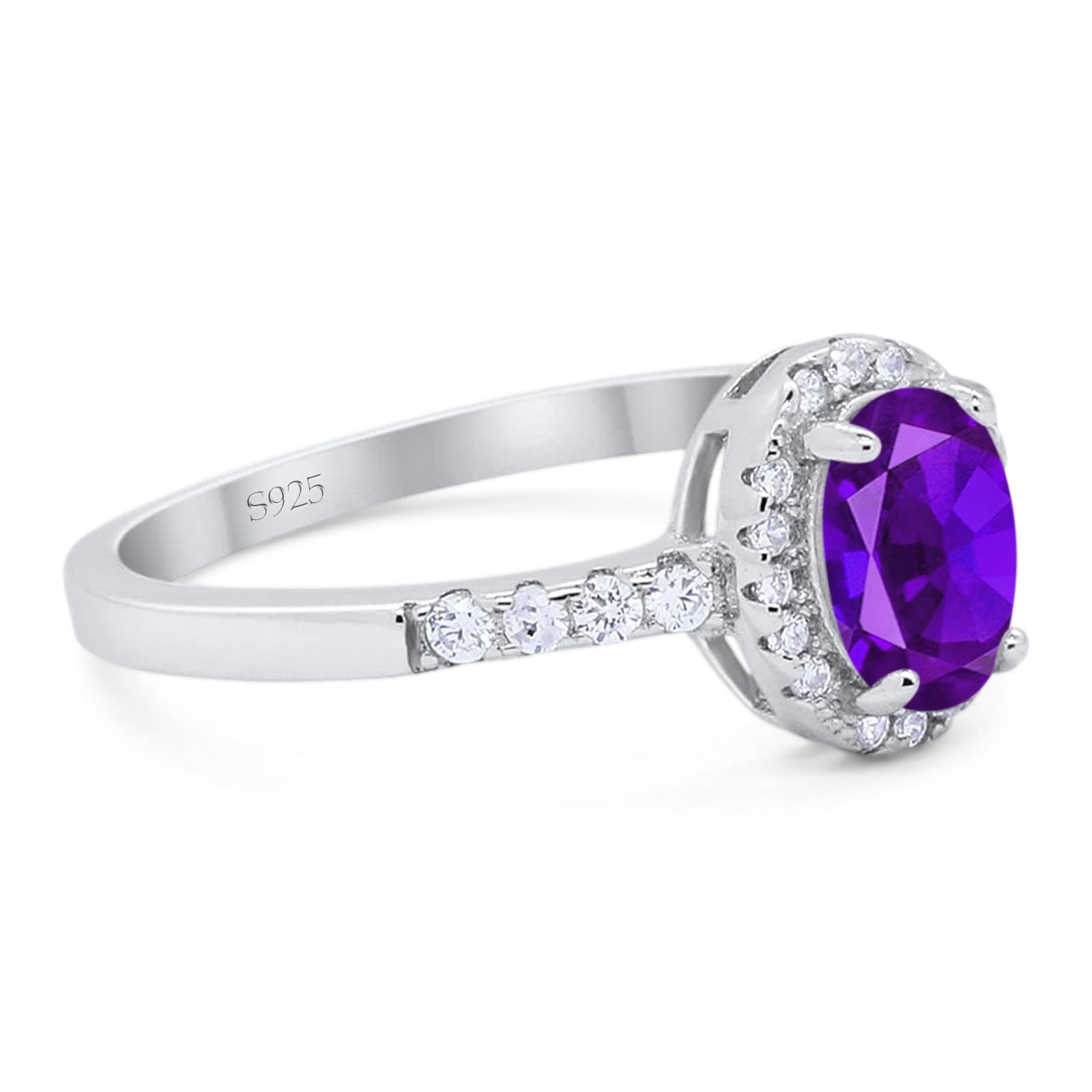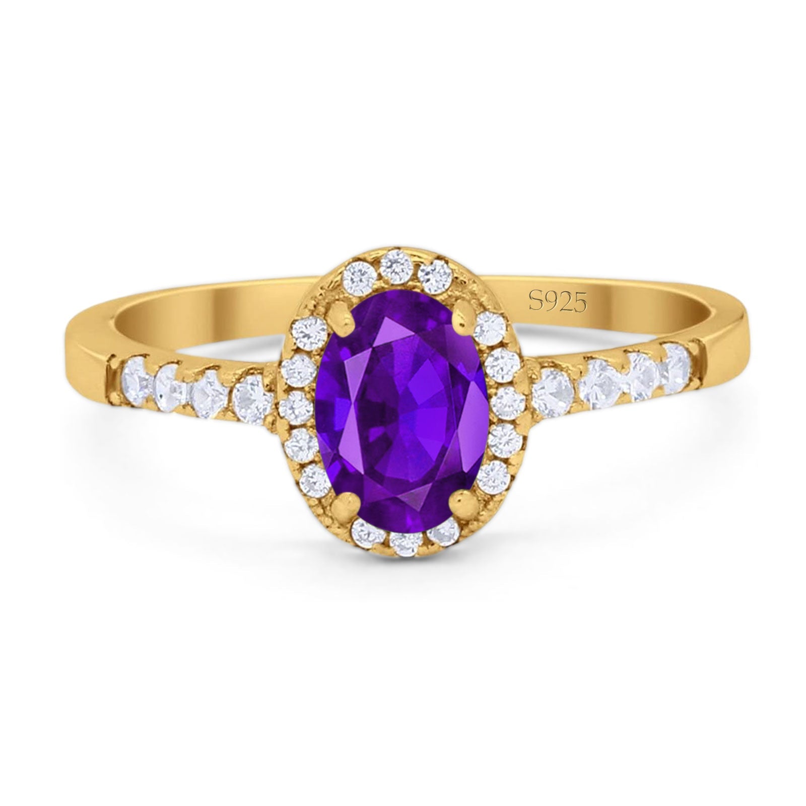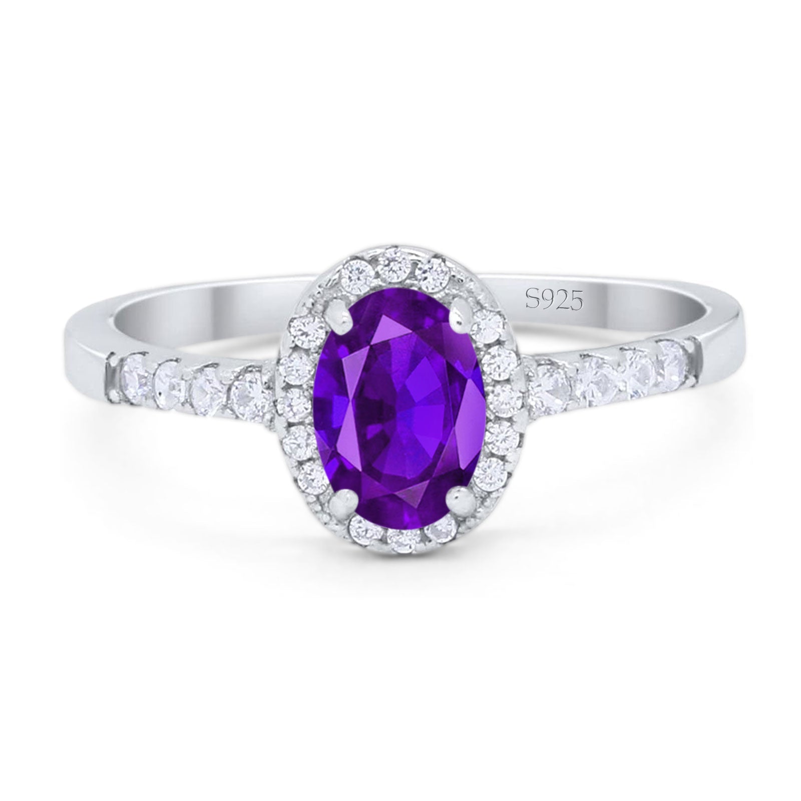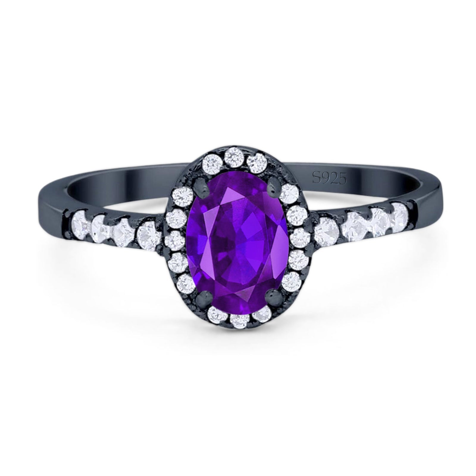 Oval Natural Amethyst Art Deco Ring 925 Sterling Silver