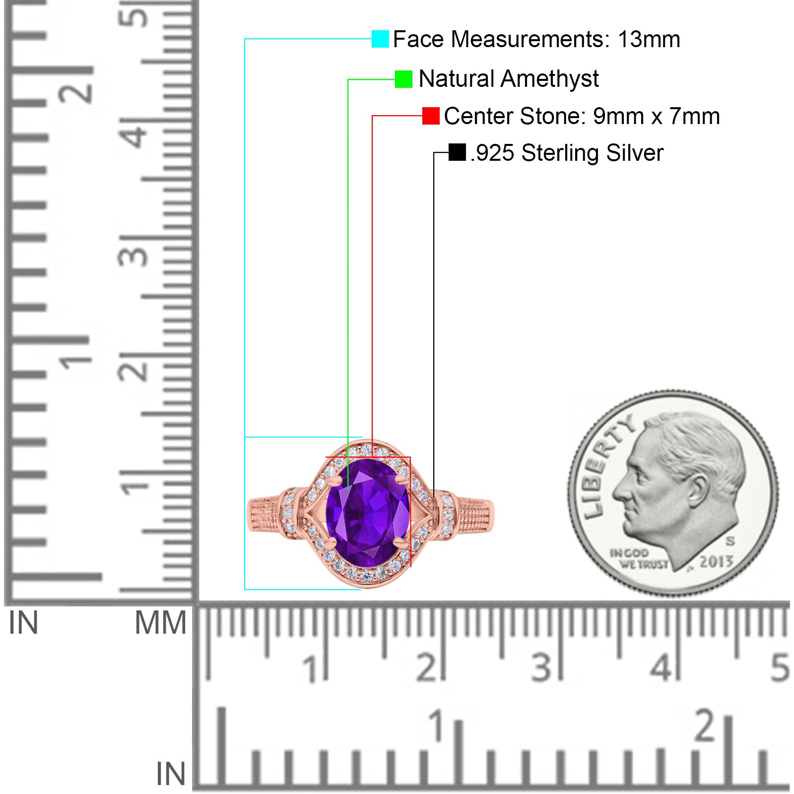 Center Stone Measurements:9mmx7mm.
