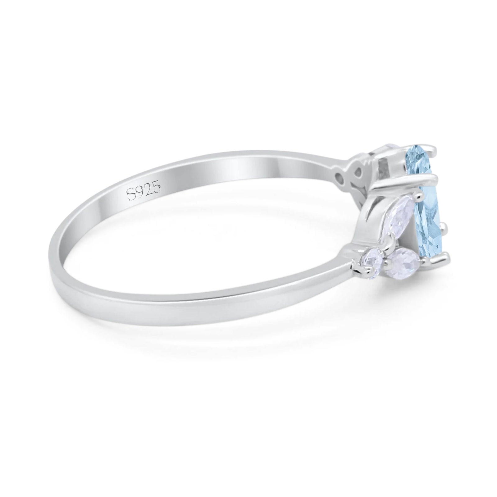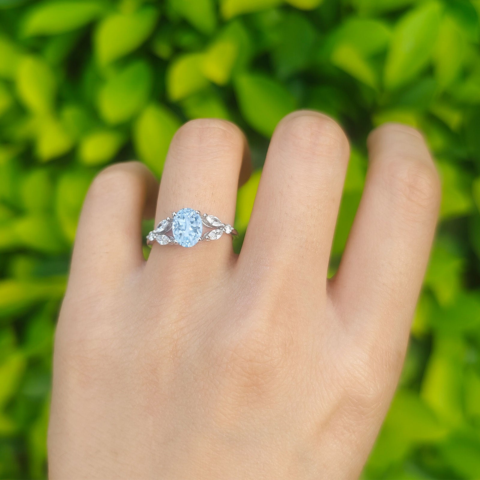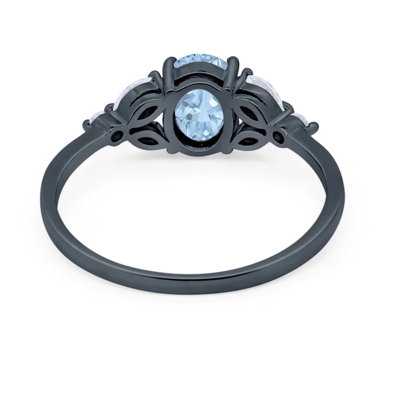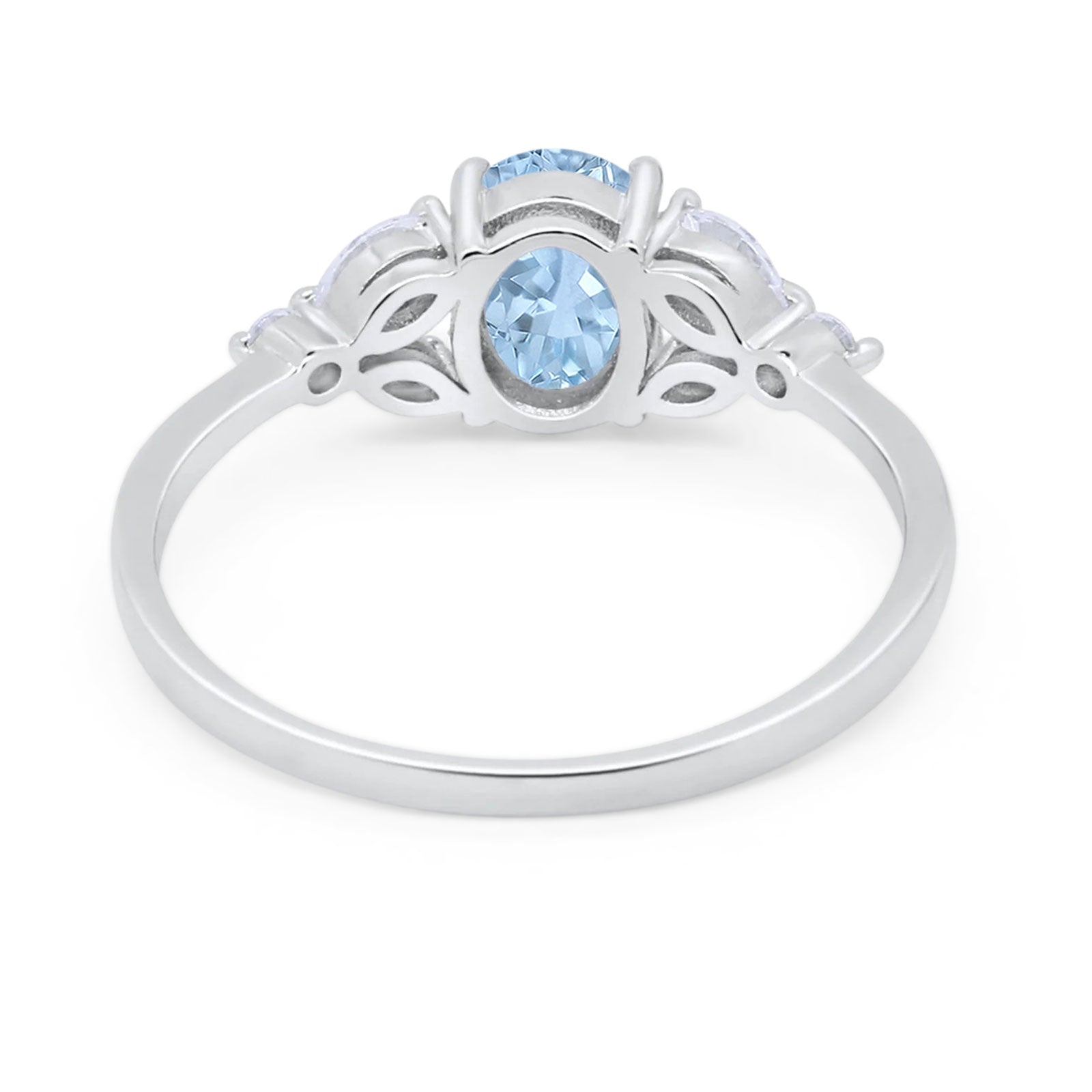 Oval Natural Aquamarine Art Deco Marquise Trillium Ring 925 Sterling Silver