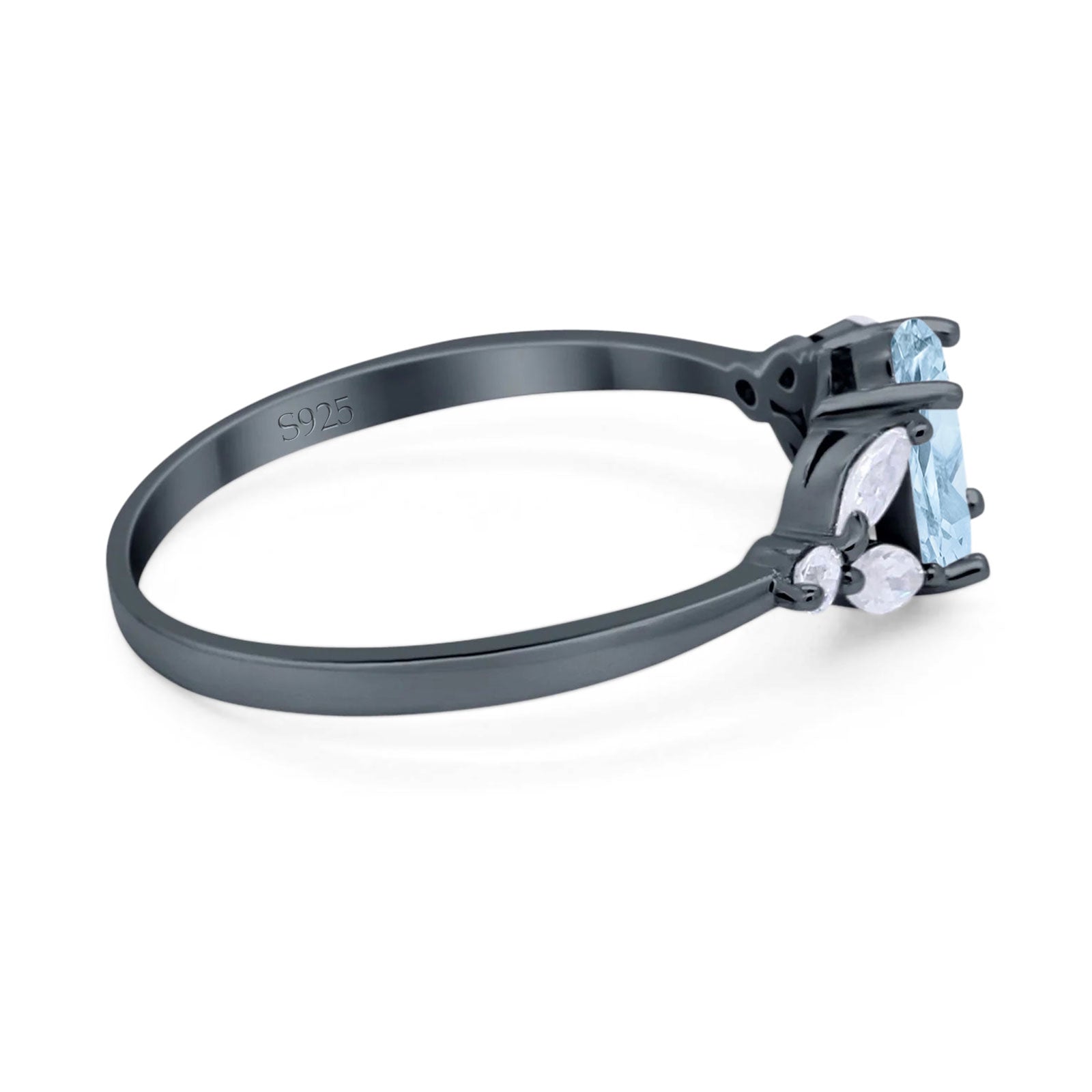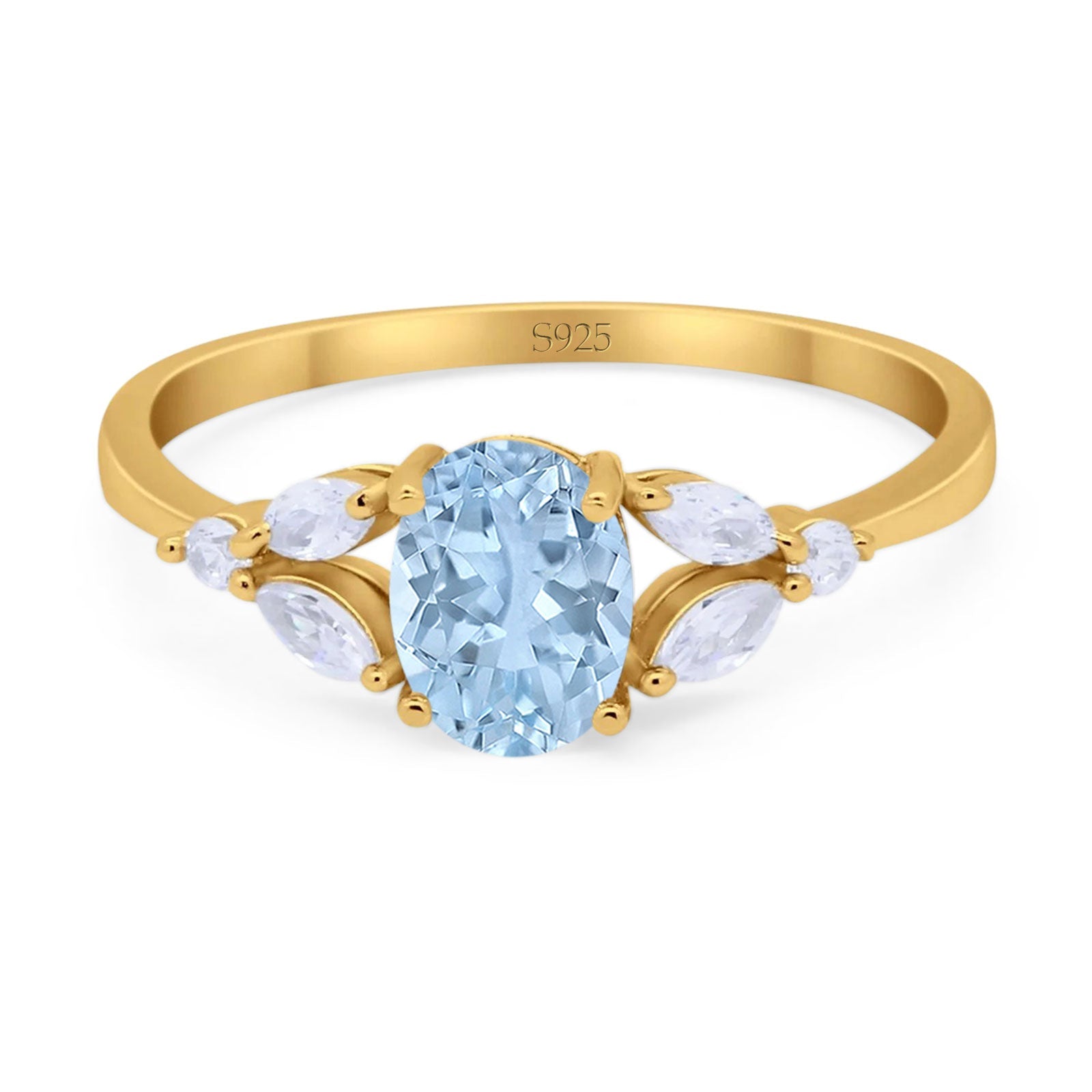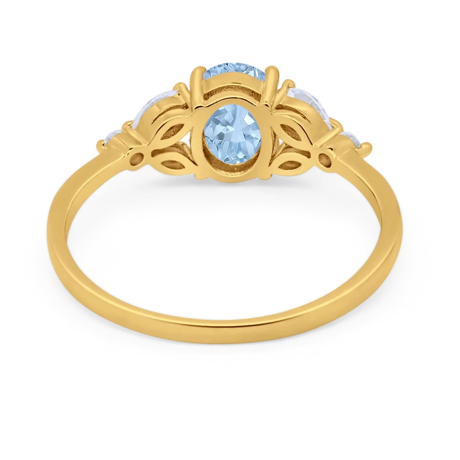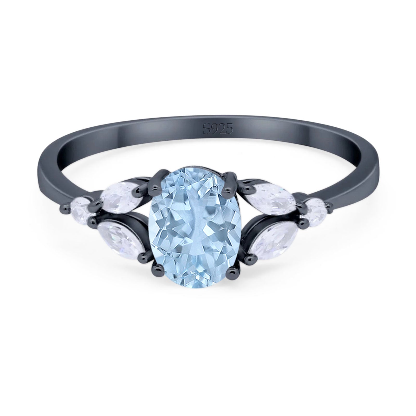Oval Natural Aquamarine Art Deco Marquise Trillium Ring 925 Sterling Silver