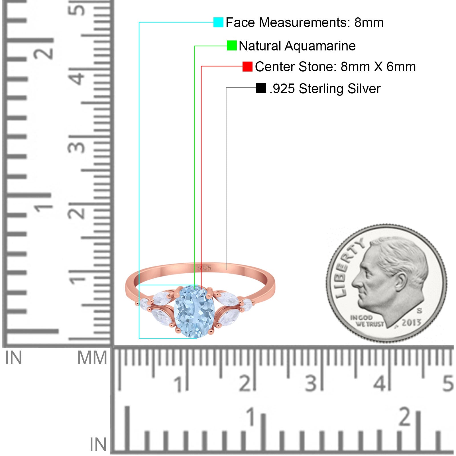 Natural Aquamarine Rose Tone Silver