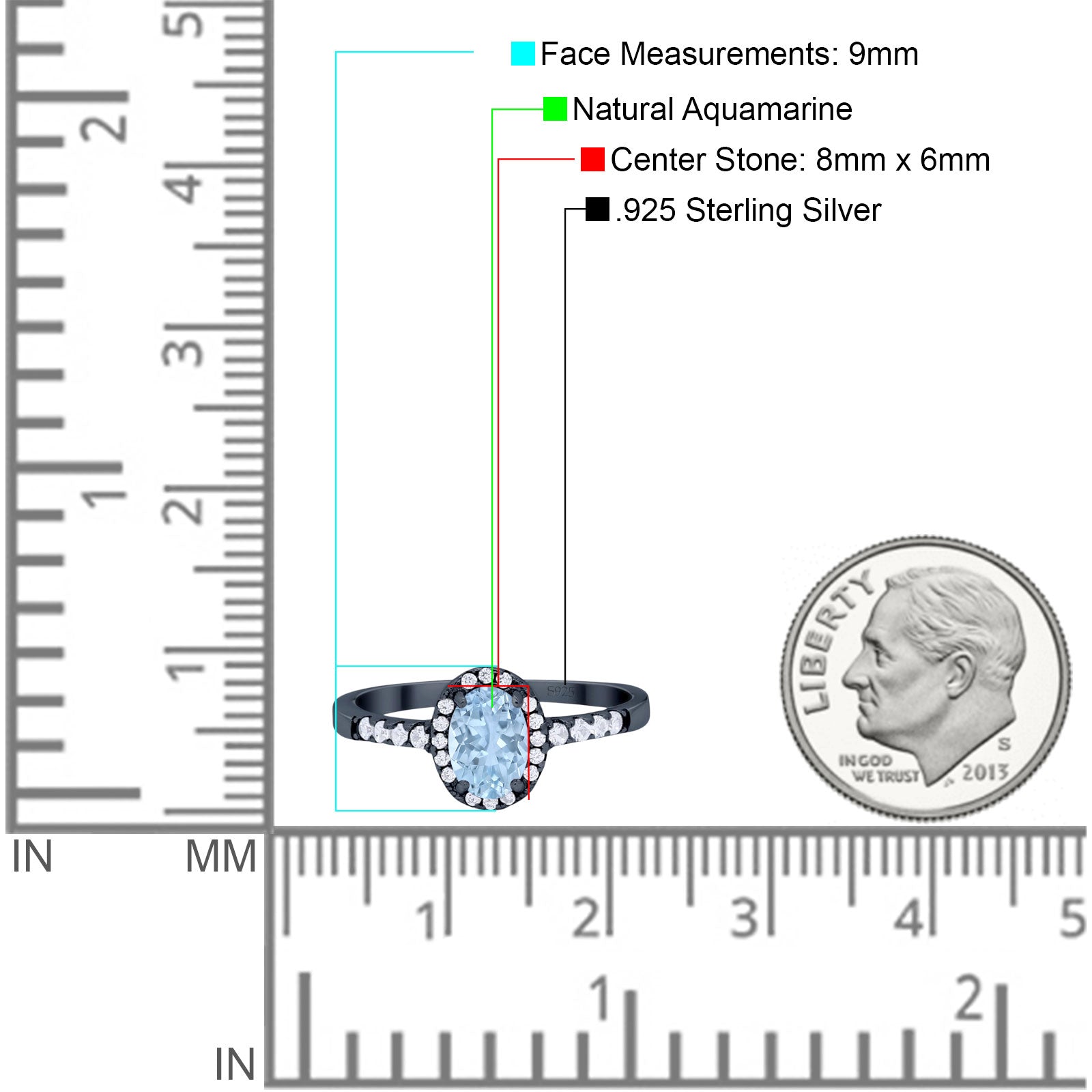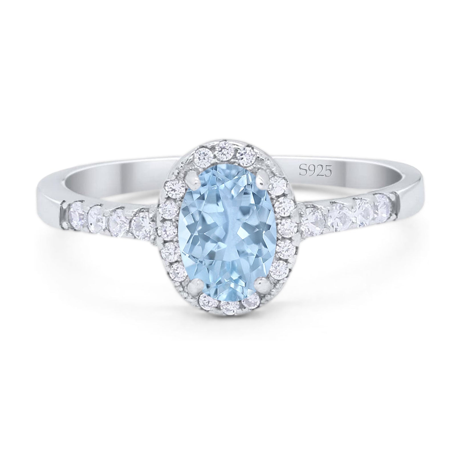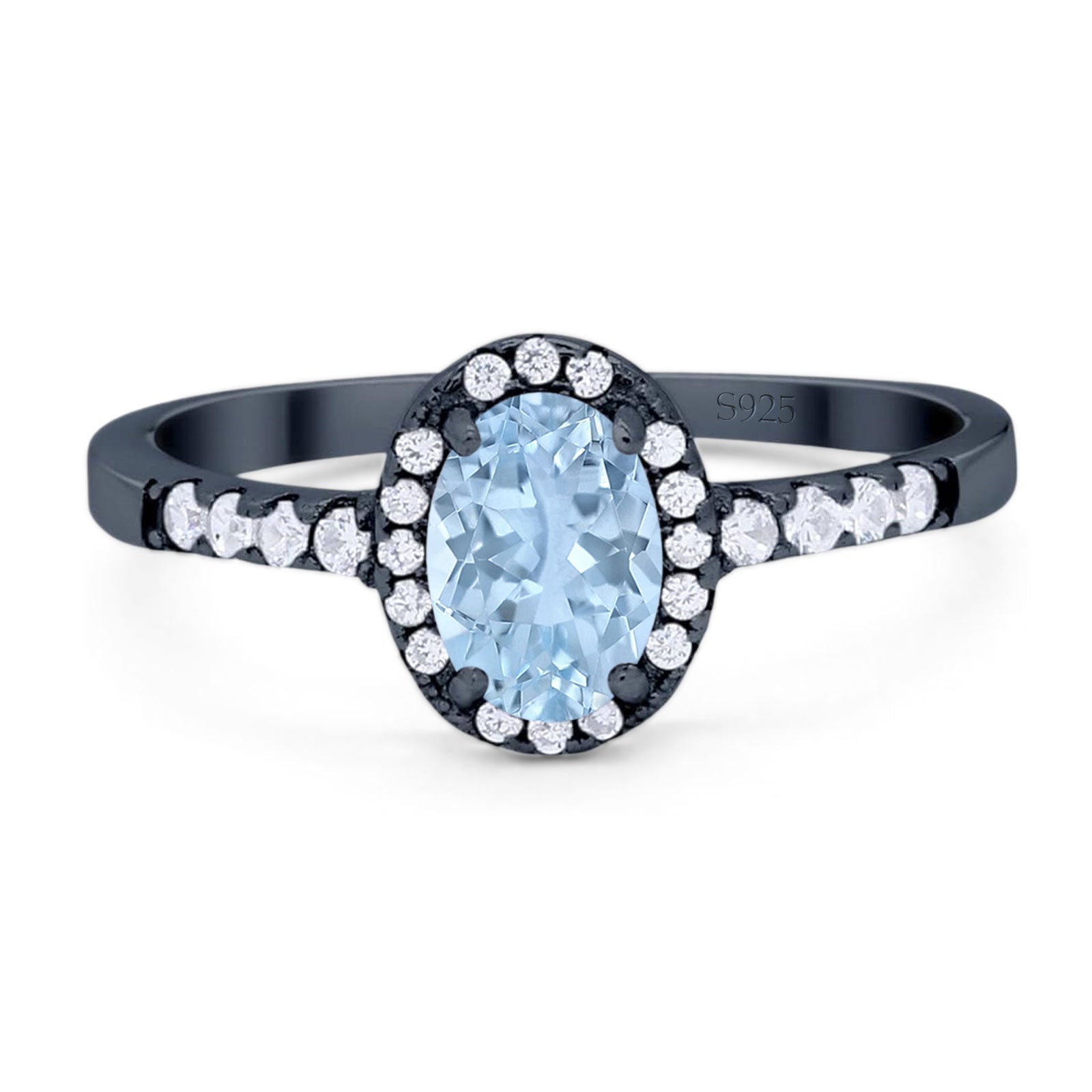 Oval Natural Aquamarine Art Deco Ring 925 Sterling Silver