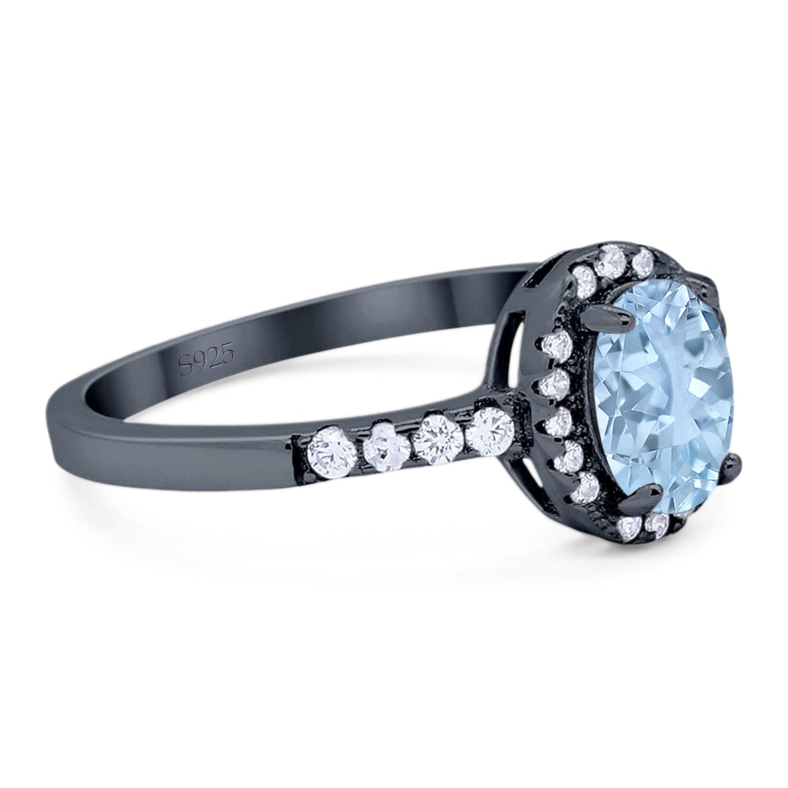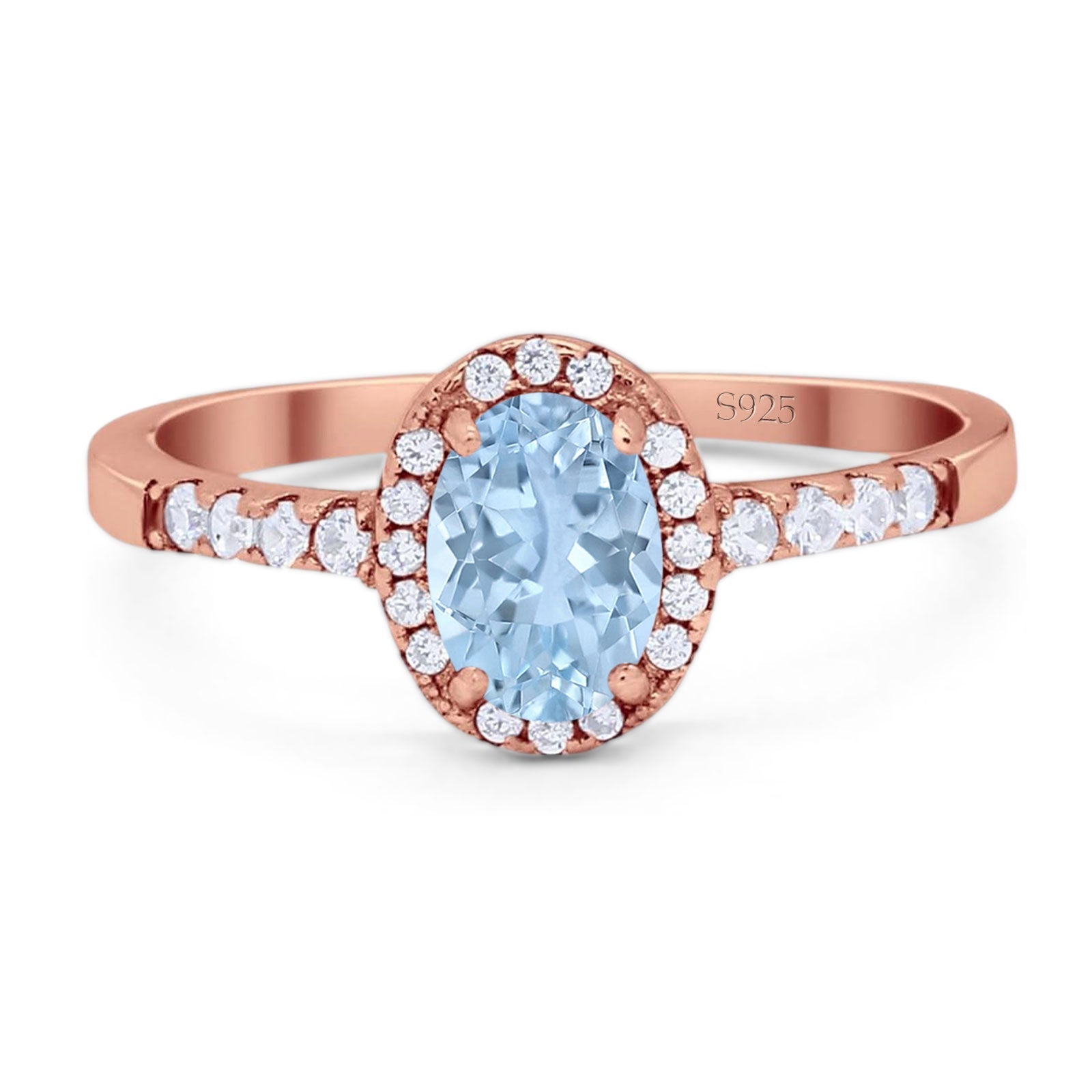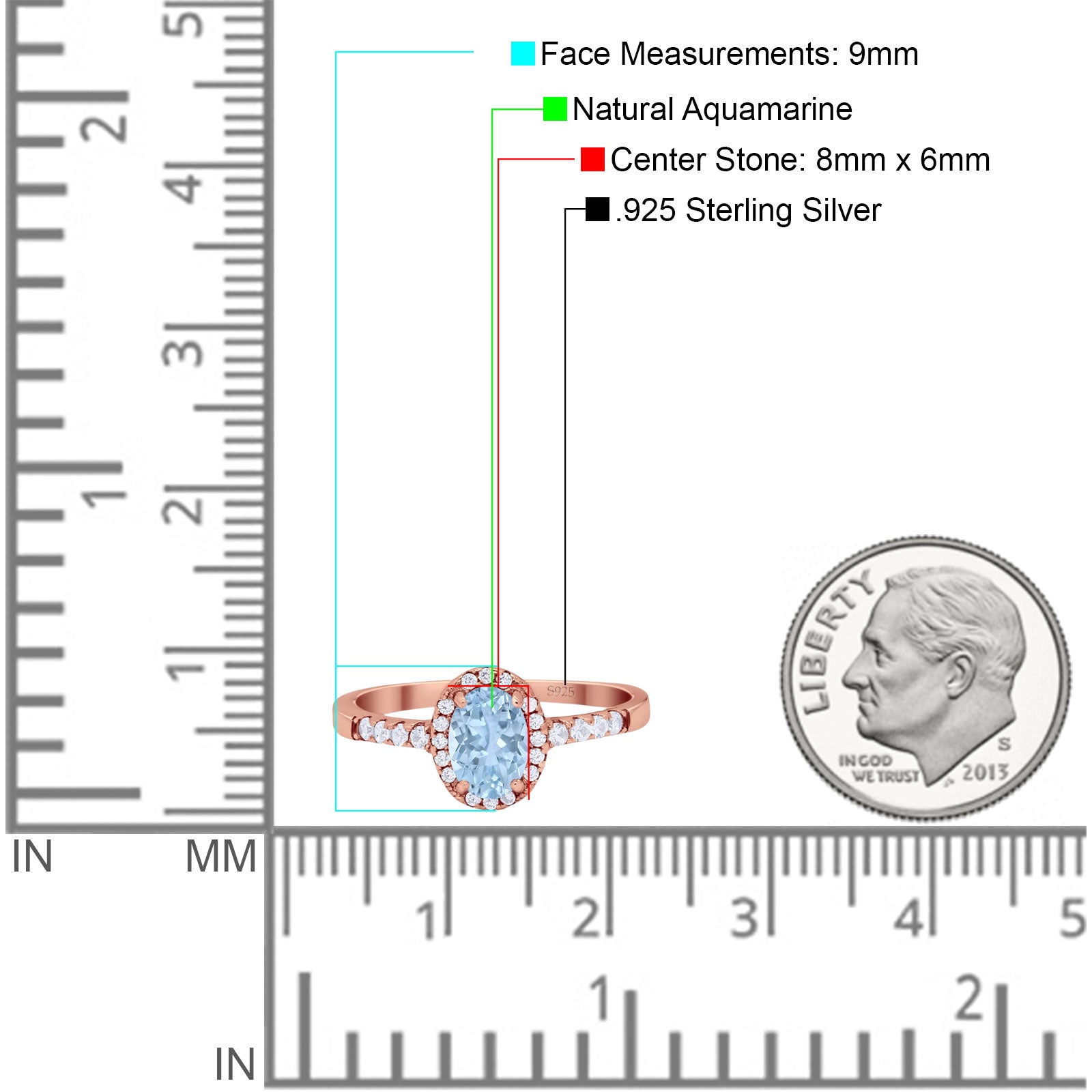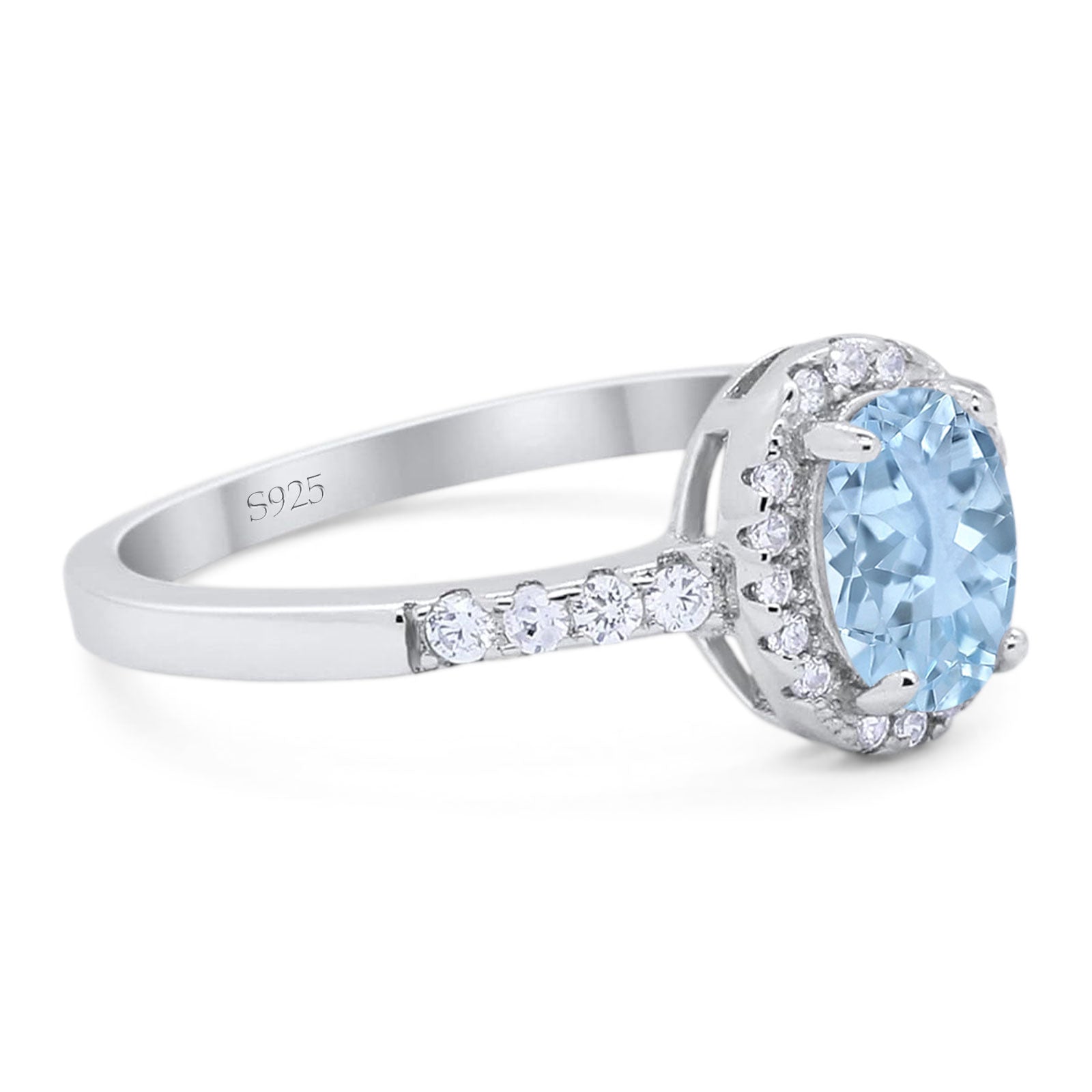Oval Natural Aquamarine Art Deco Ring 925 Sterling Silver