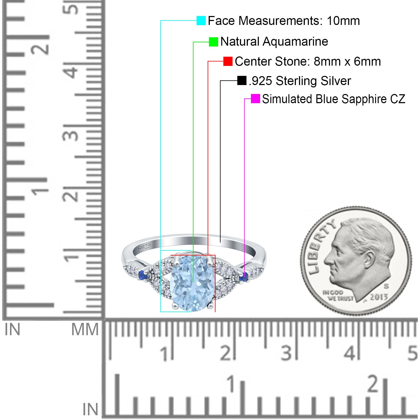 Side Stone: Blue Sapphire (CZ).