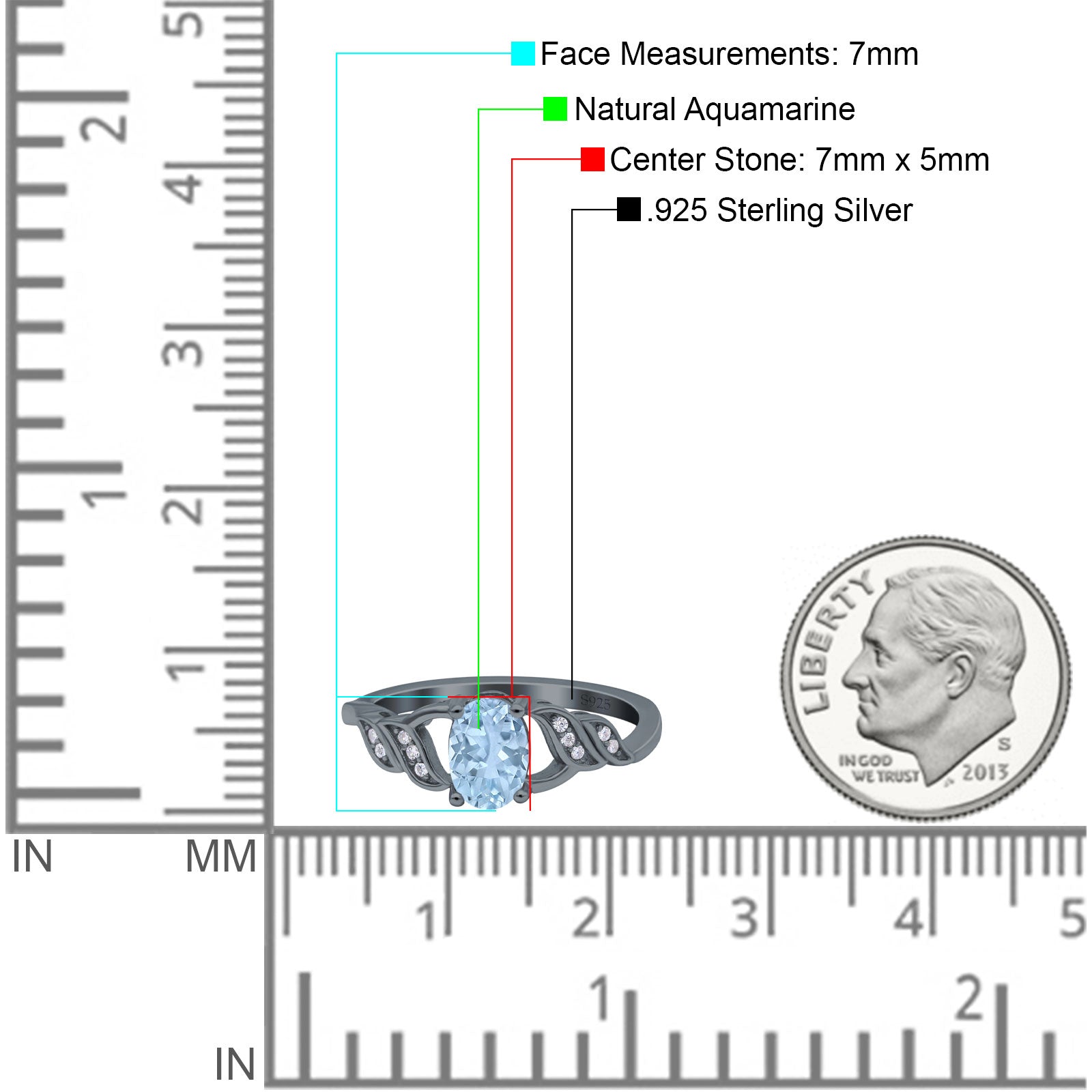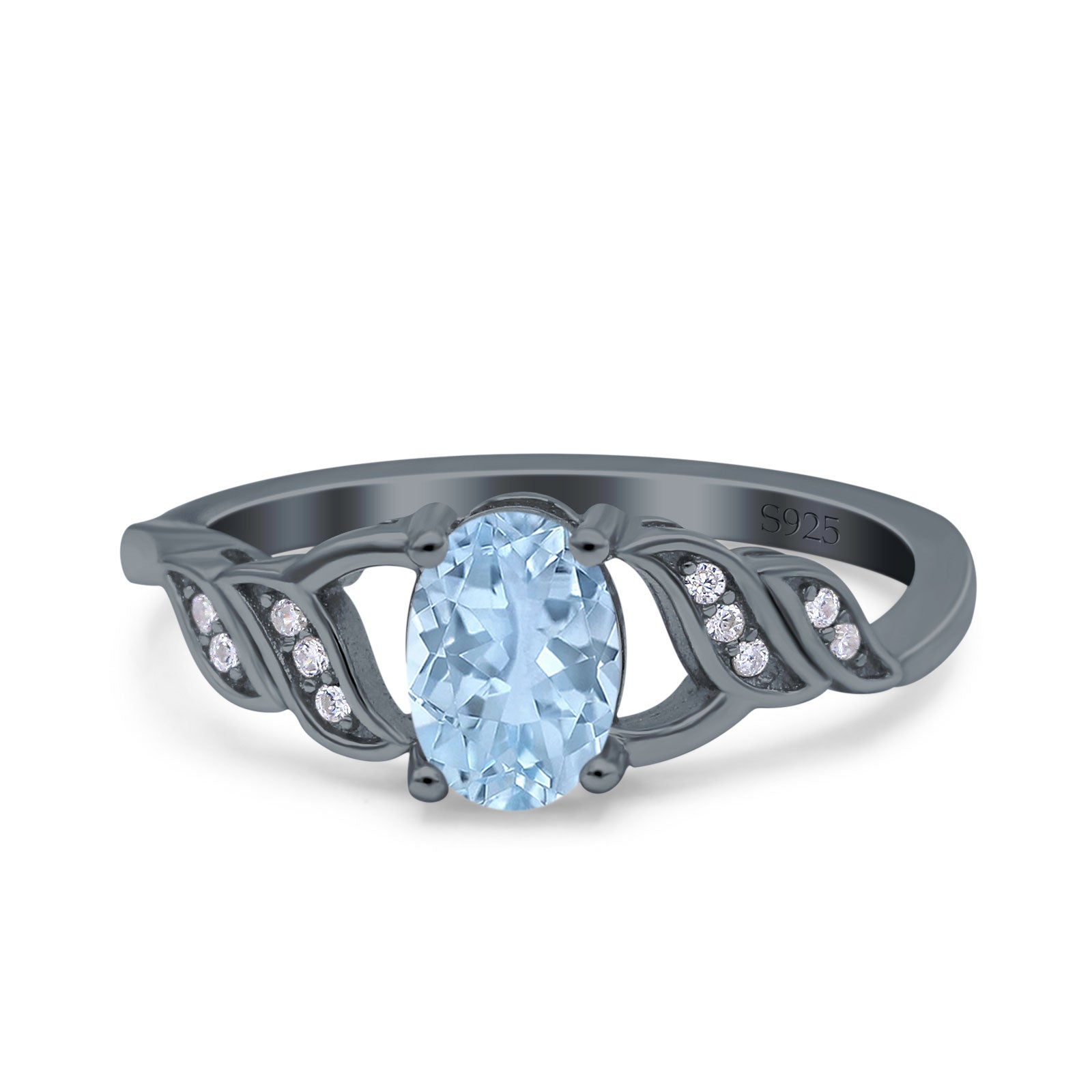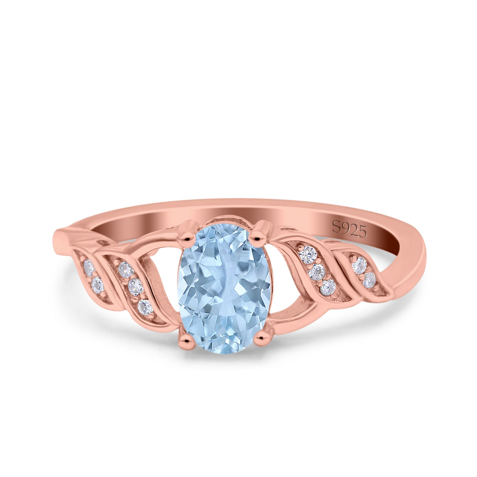 Oval Natural Aquamarine Leaf Split Shank Ring 925 Sterling Silver