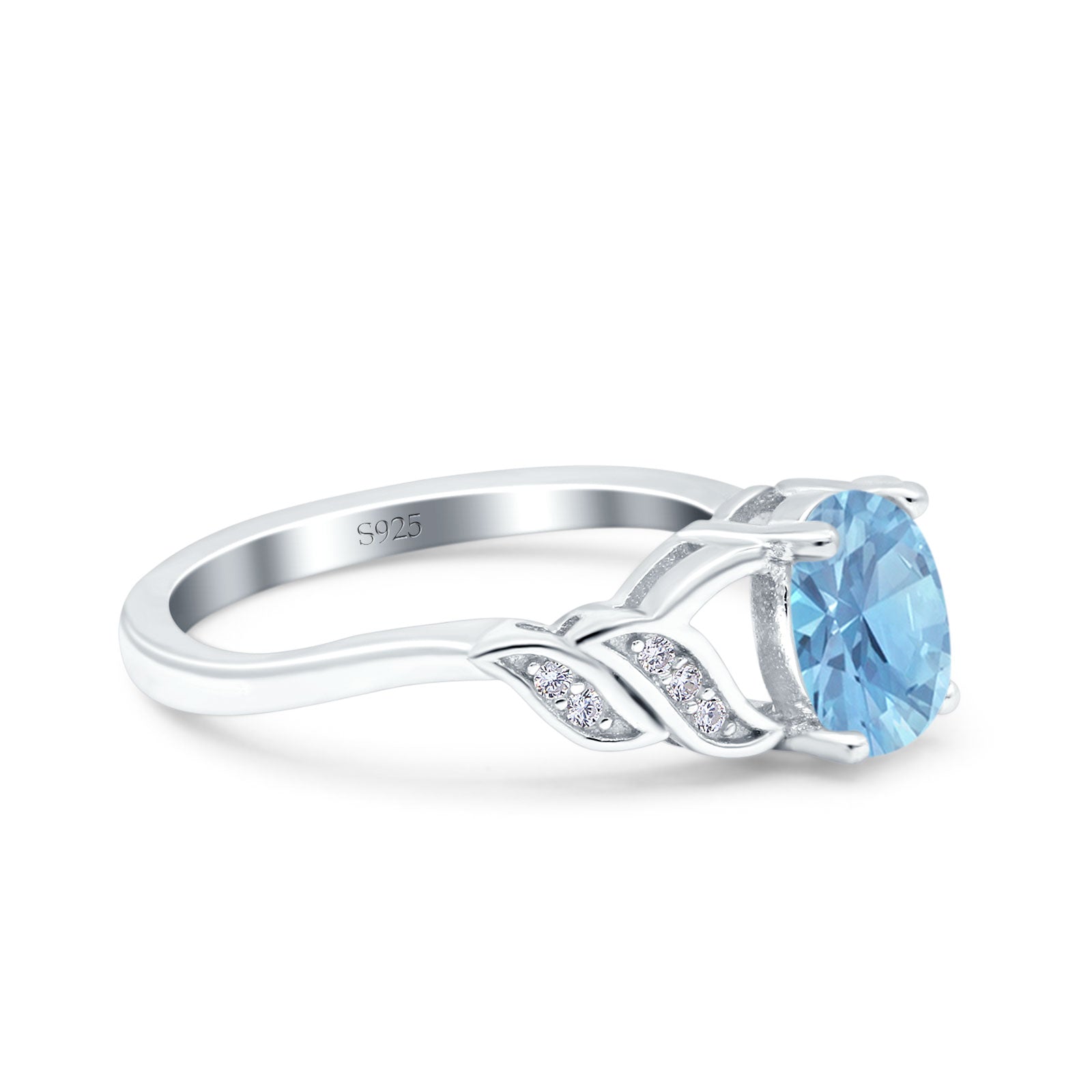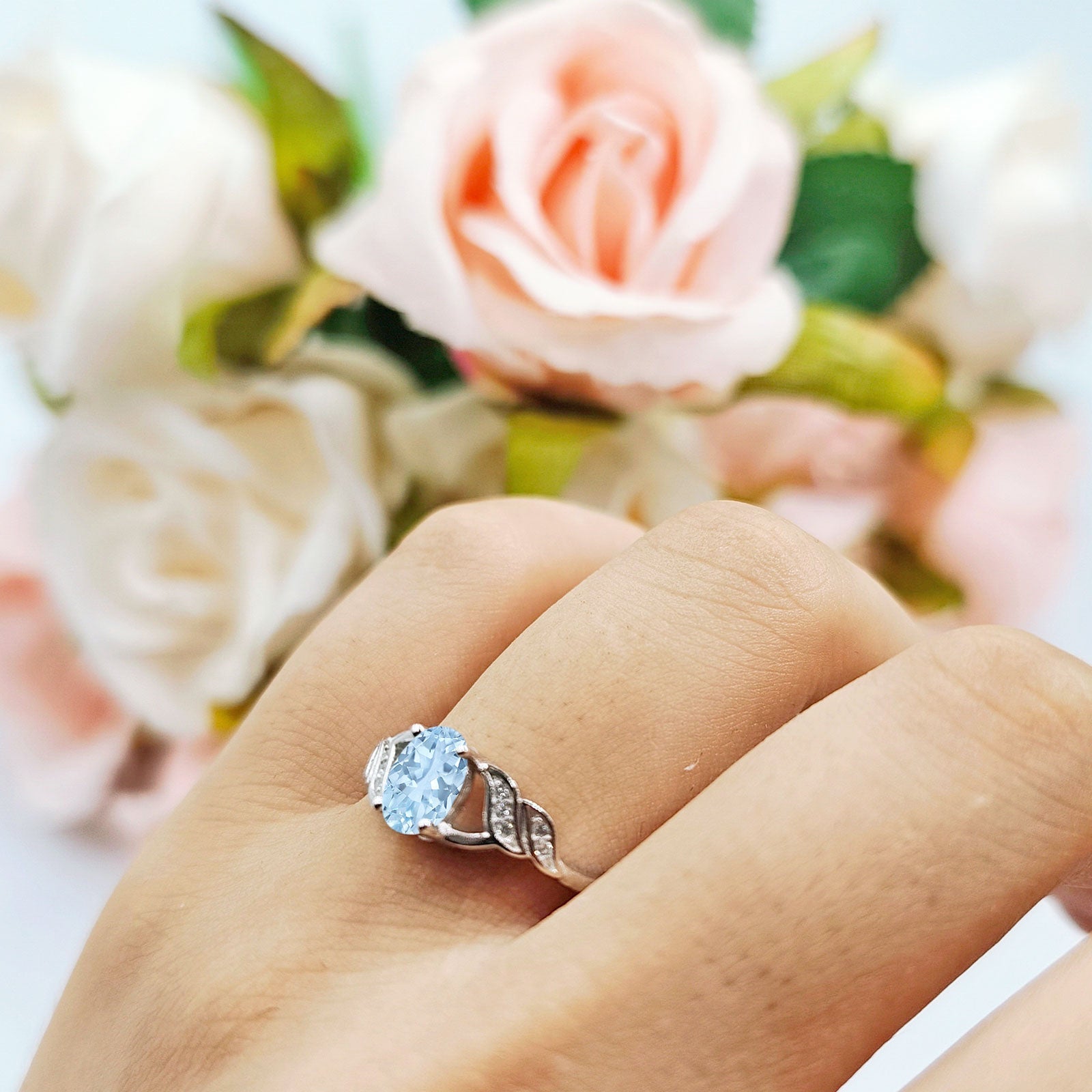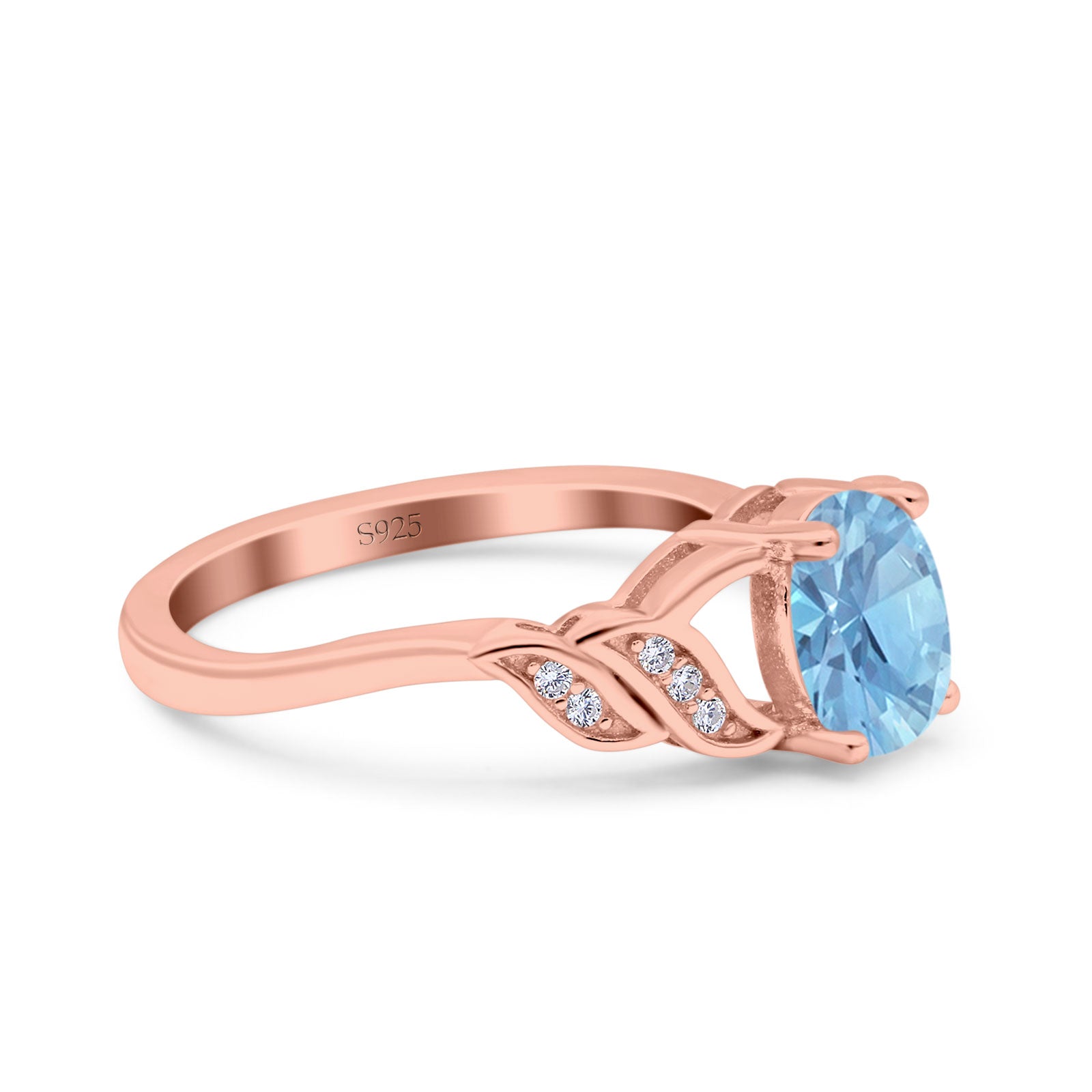 Oval Natural Aquamarine Leaf Split Shank Ring 925 Sterling Silver