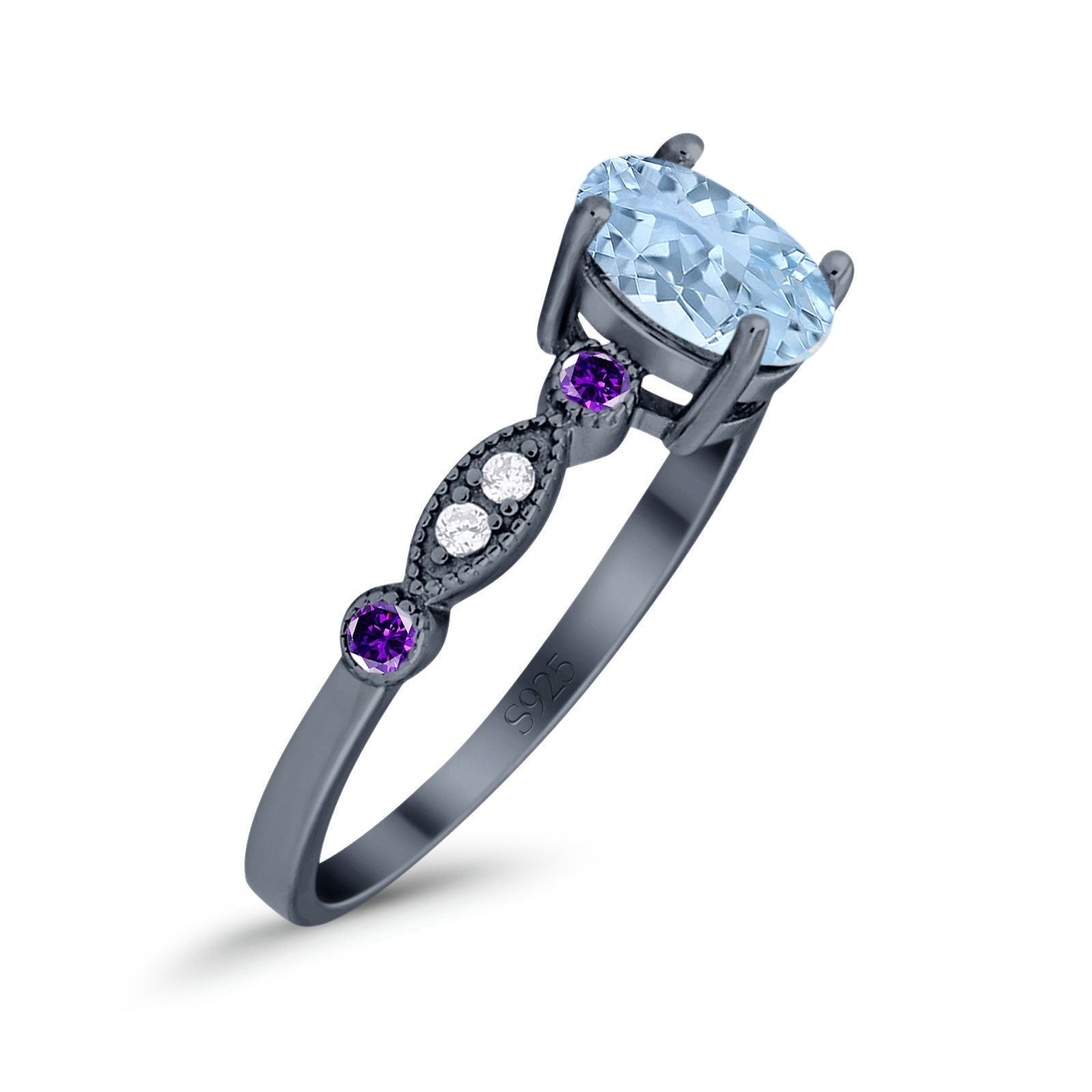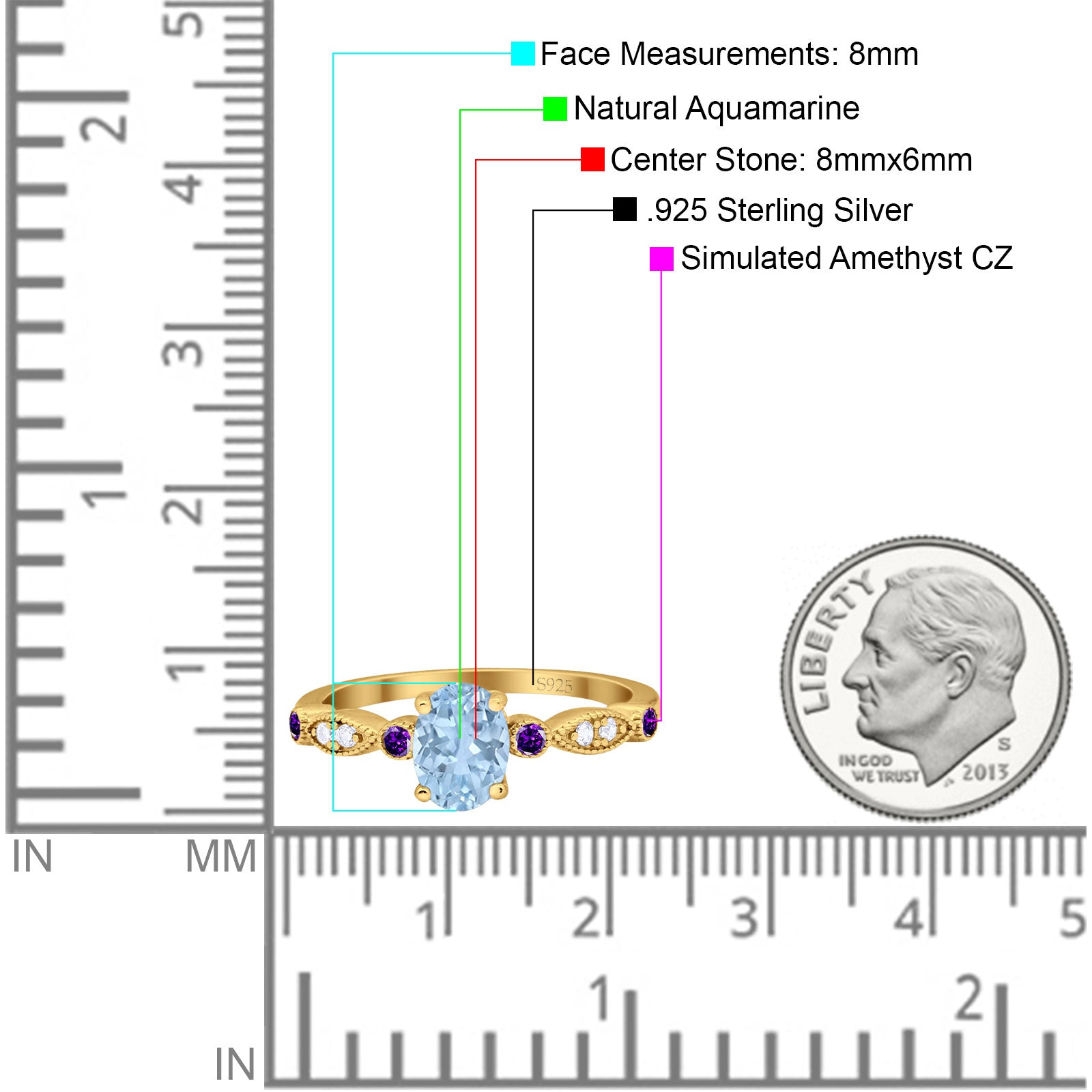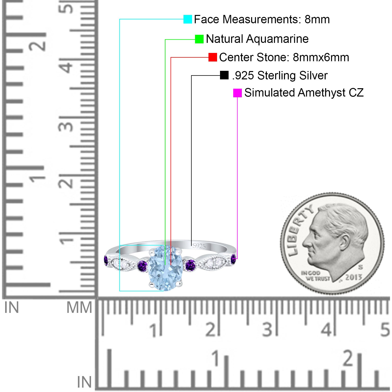 Oval Natural Aquamarine Marquise Vintage Style Ring 925 Sterling Silver