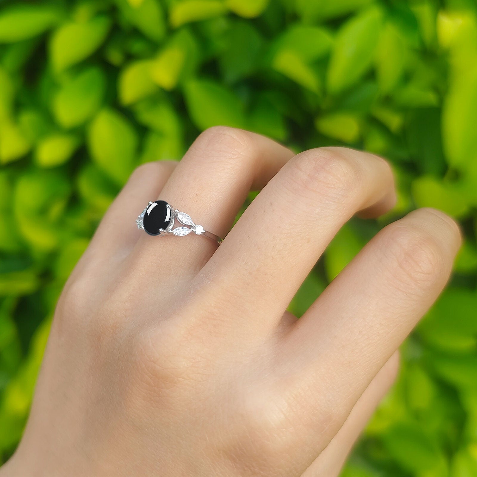 Natural Black Onyx Engagement Ring