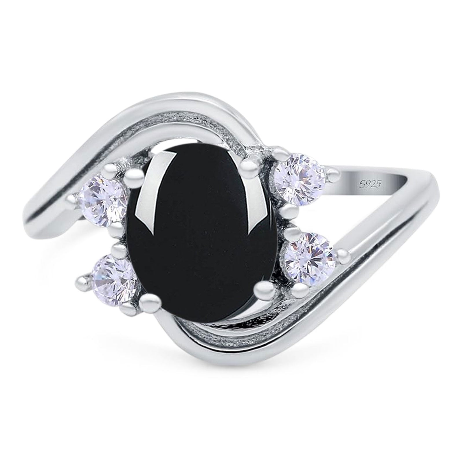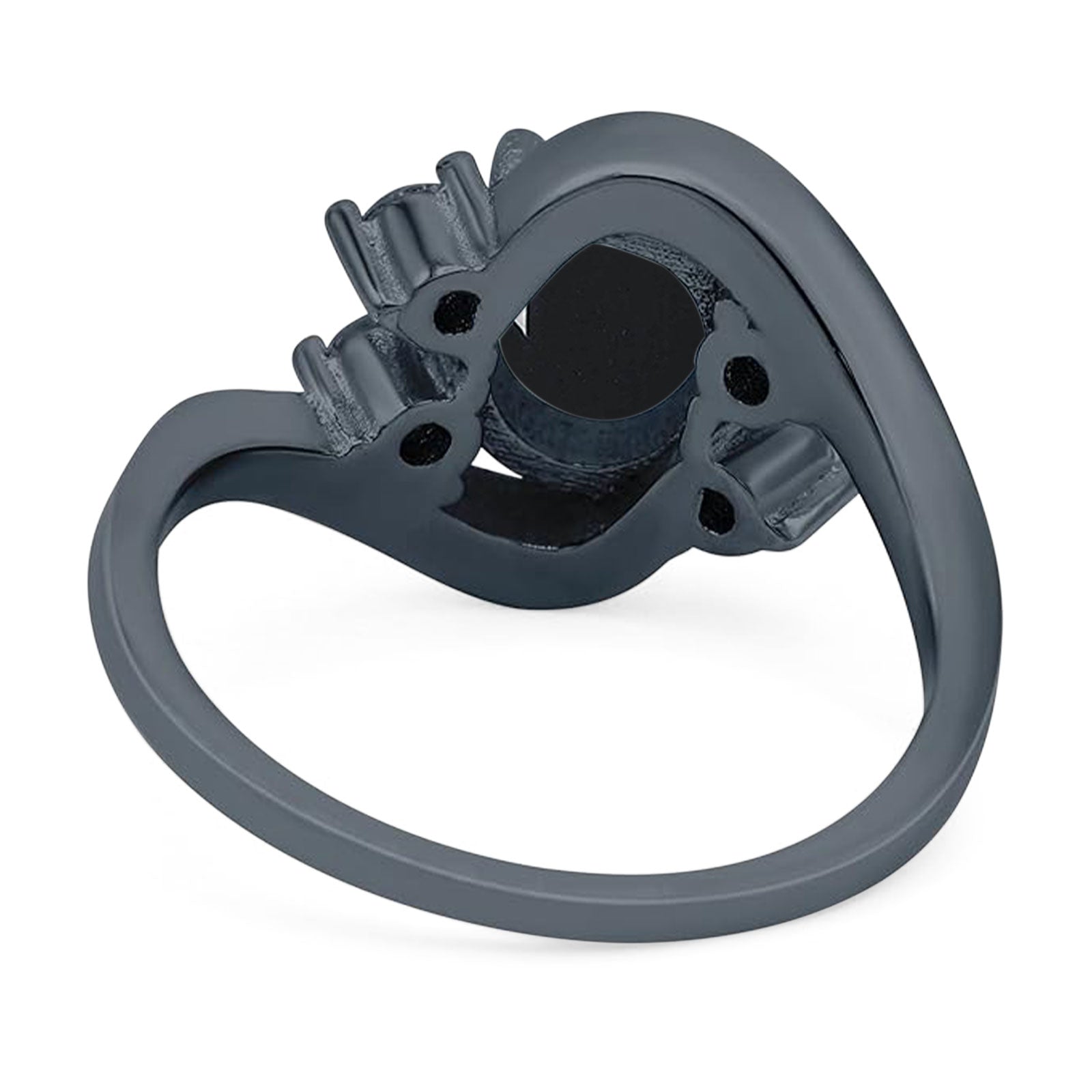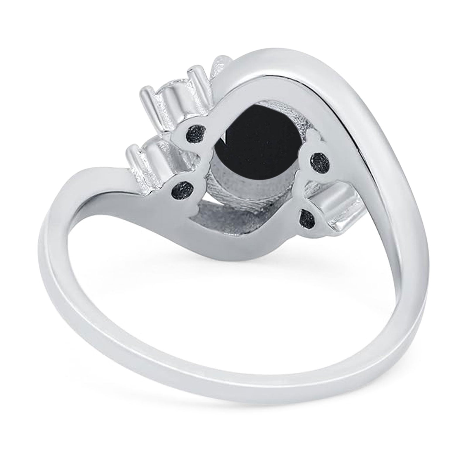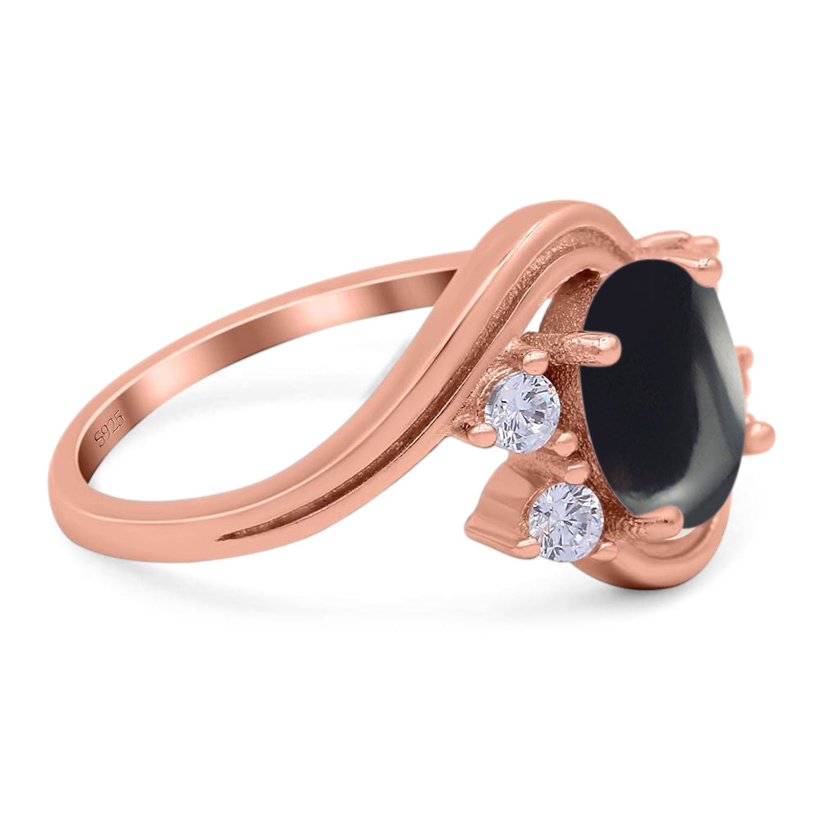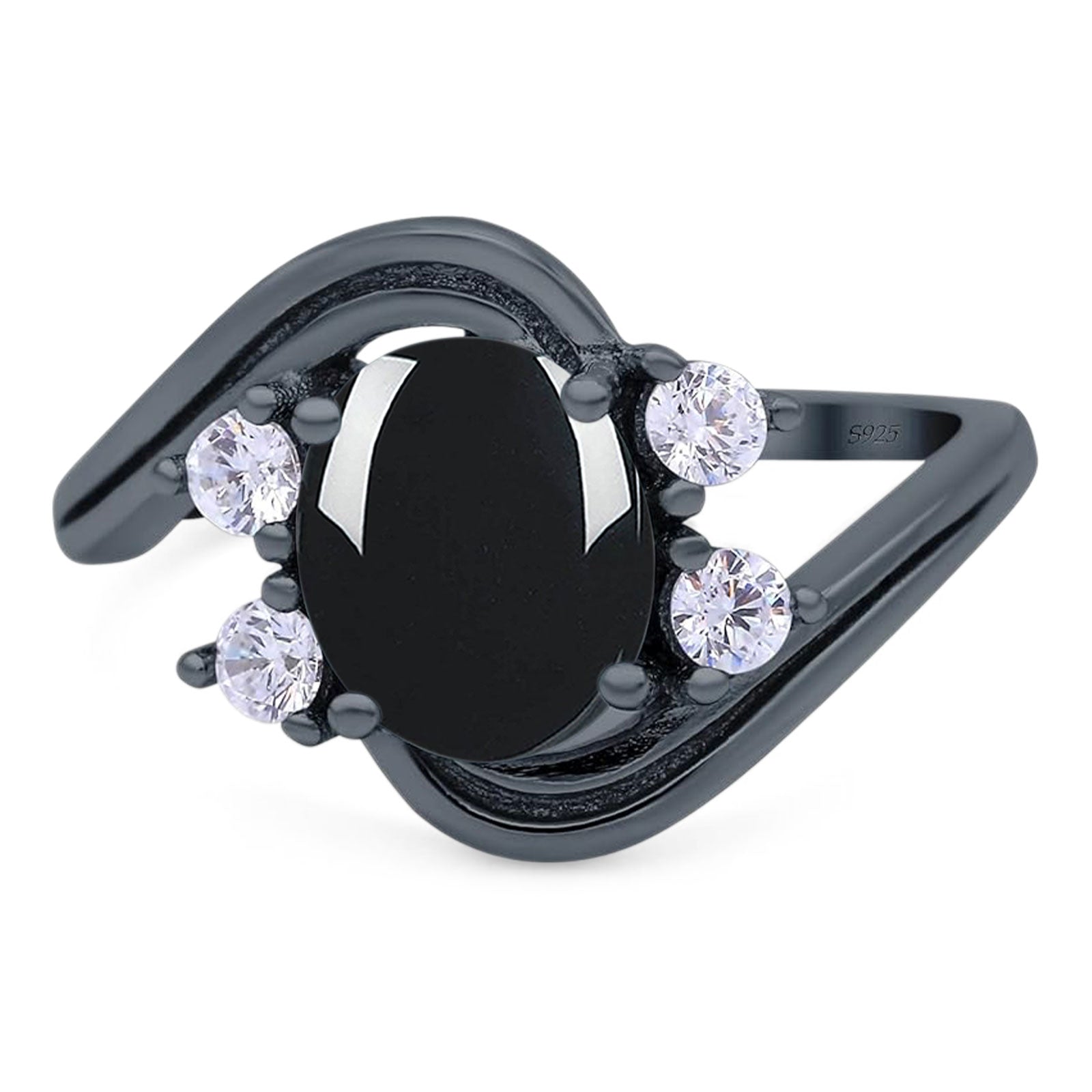 Oval Natural Black Onyx Art Deco Ring 925 Sterling Silver