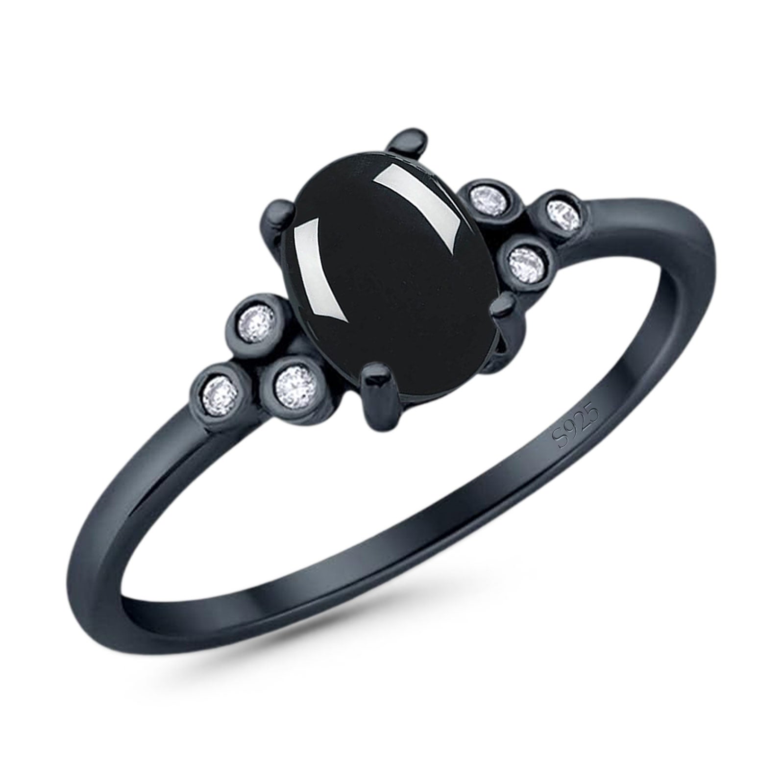 Natural Black Onyx Engagement Ring