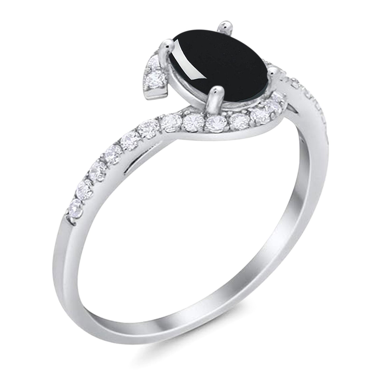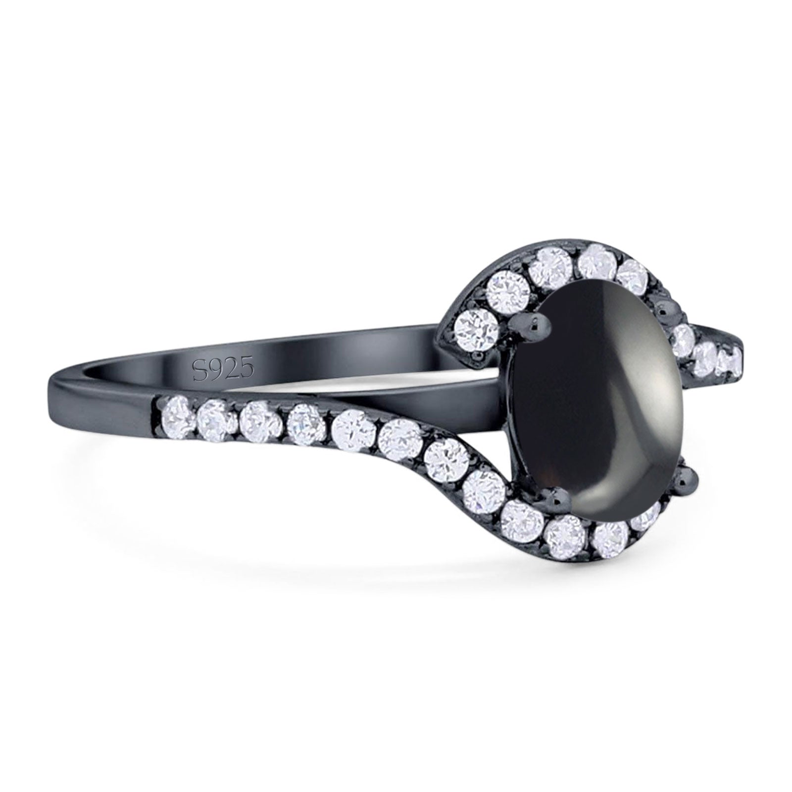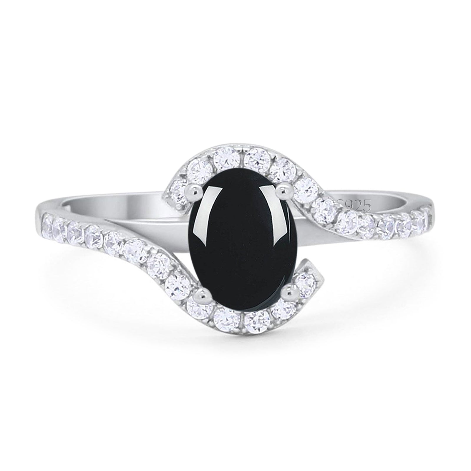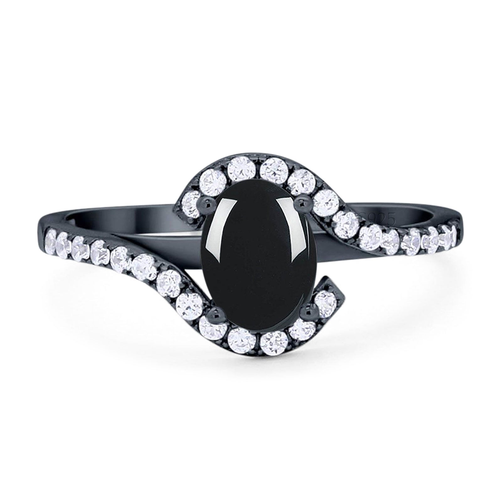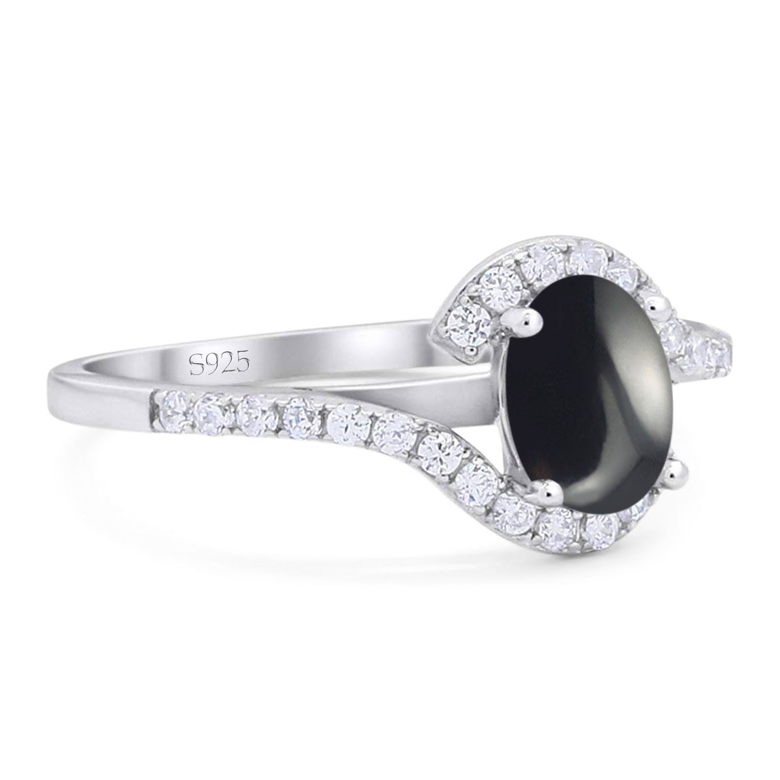 Oval Natural Black Onyx Curved Art Deco Ring 925 Sterling Silver