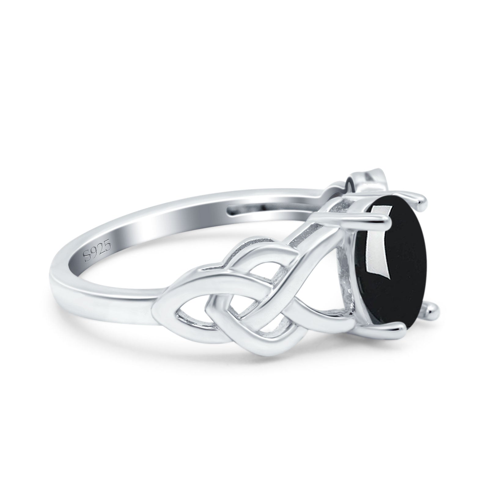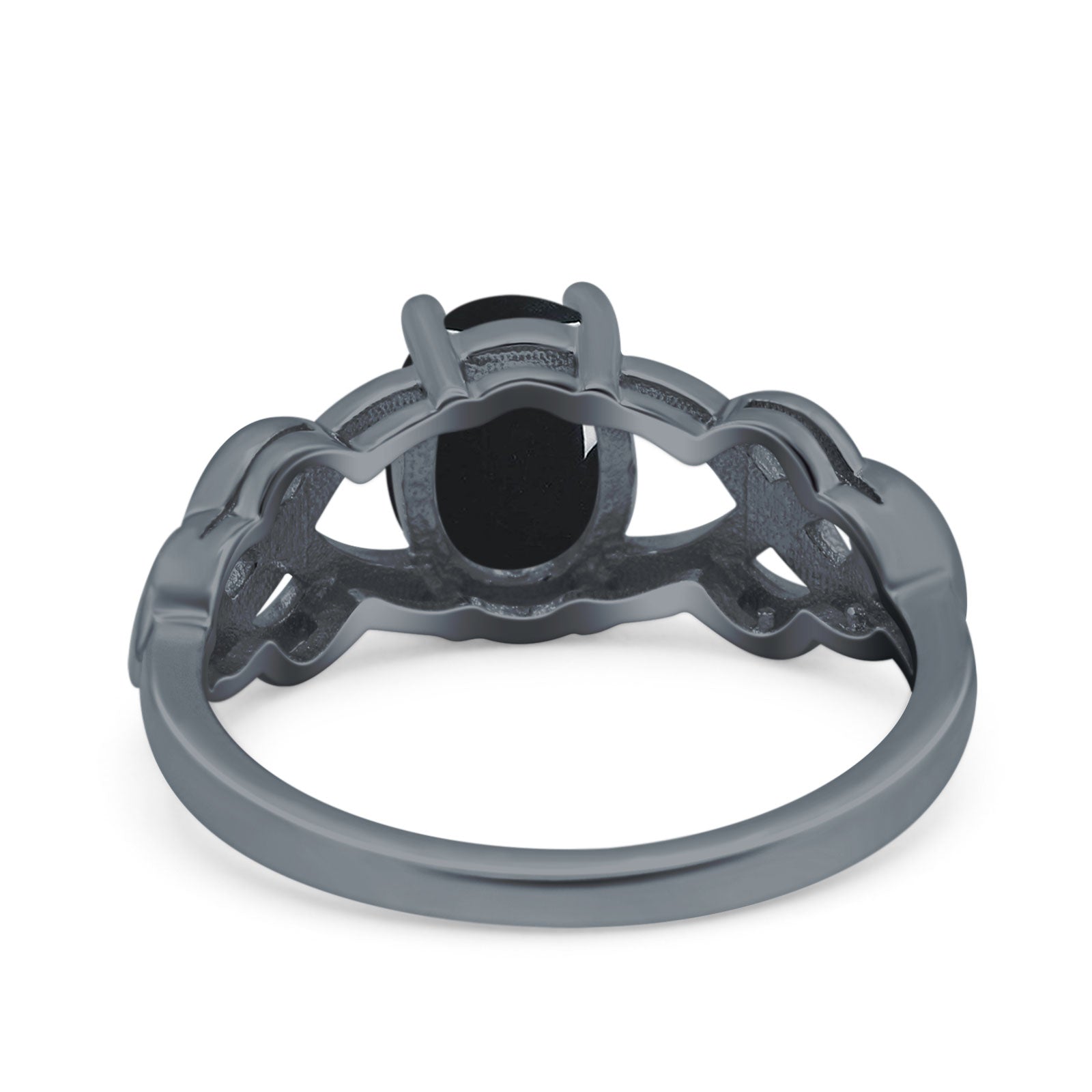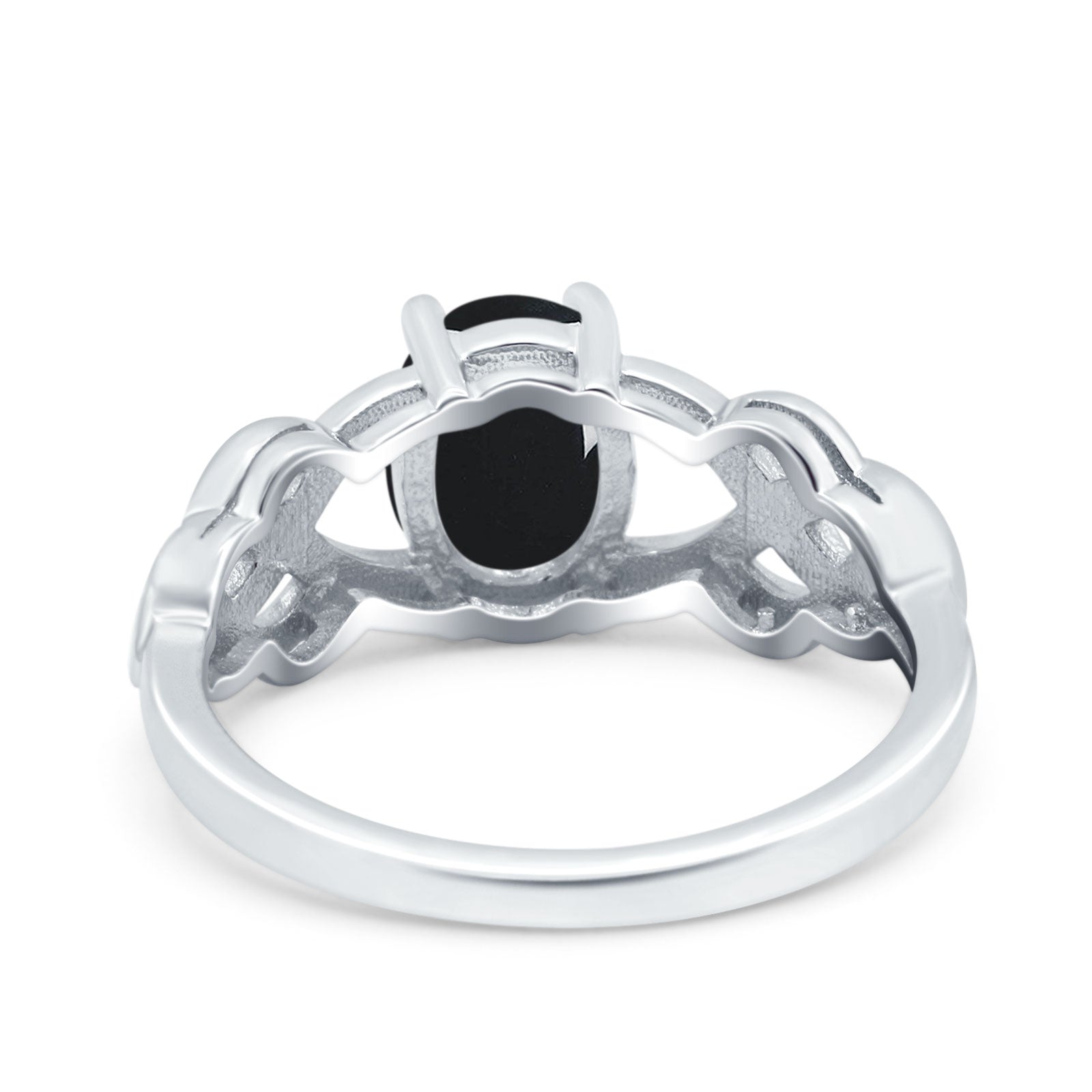 Oval Natural Black Onyx Solitaire Trinity Ring 925 Sterling Silver