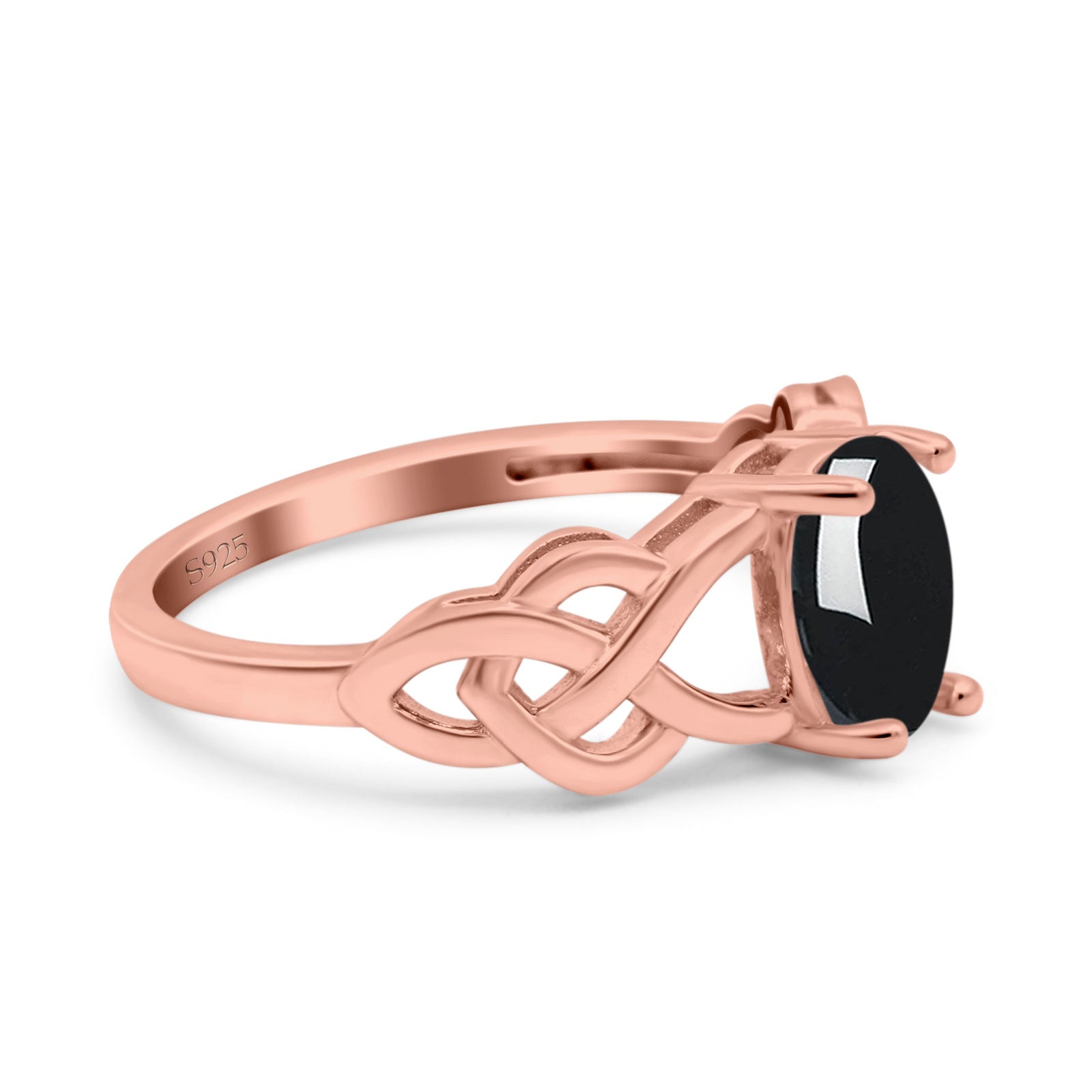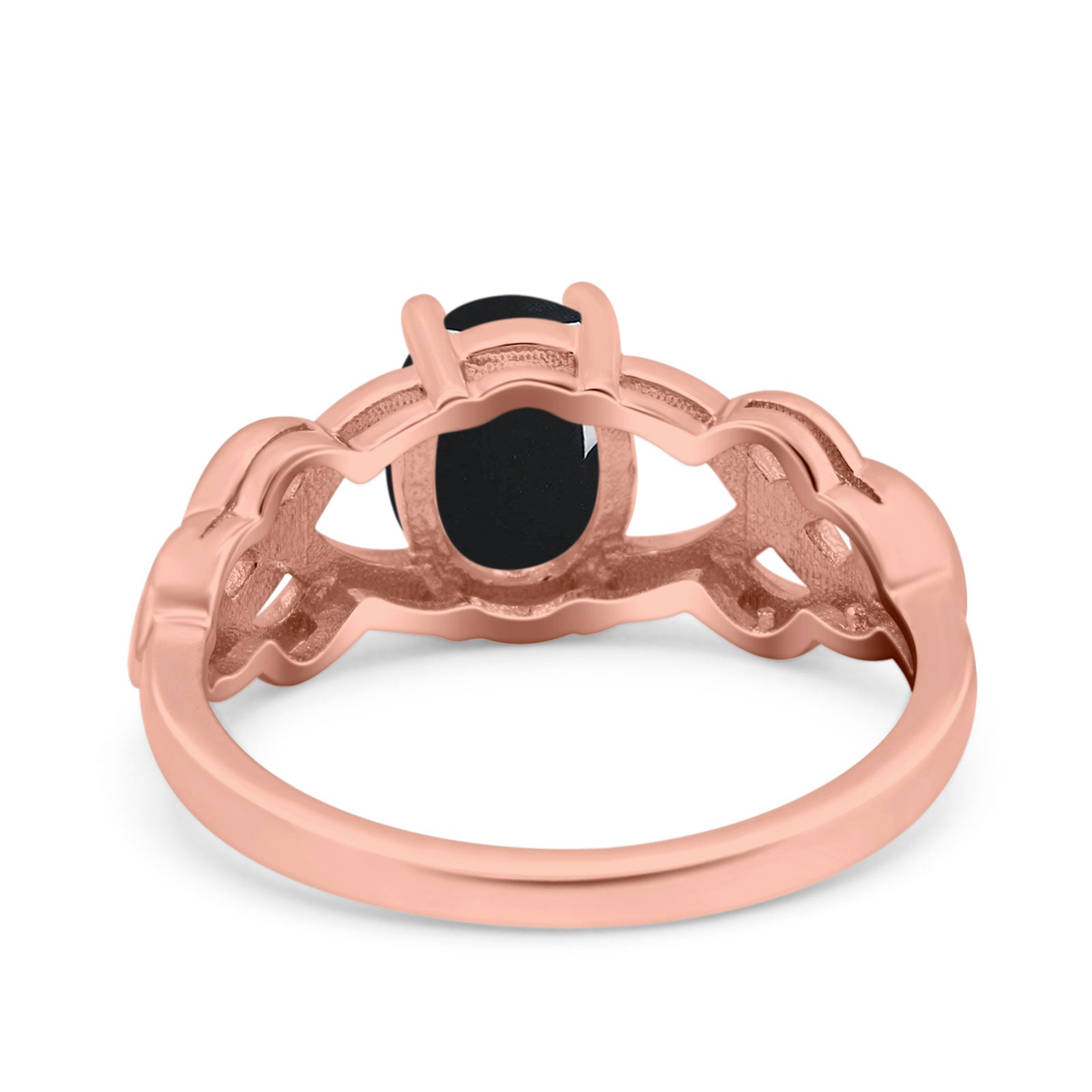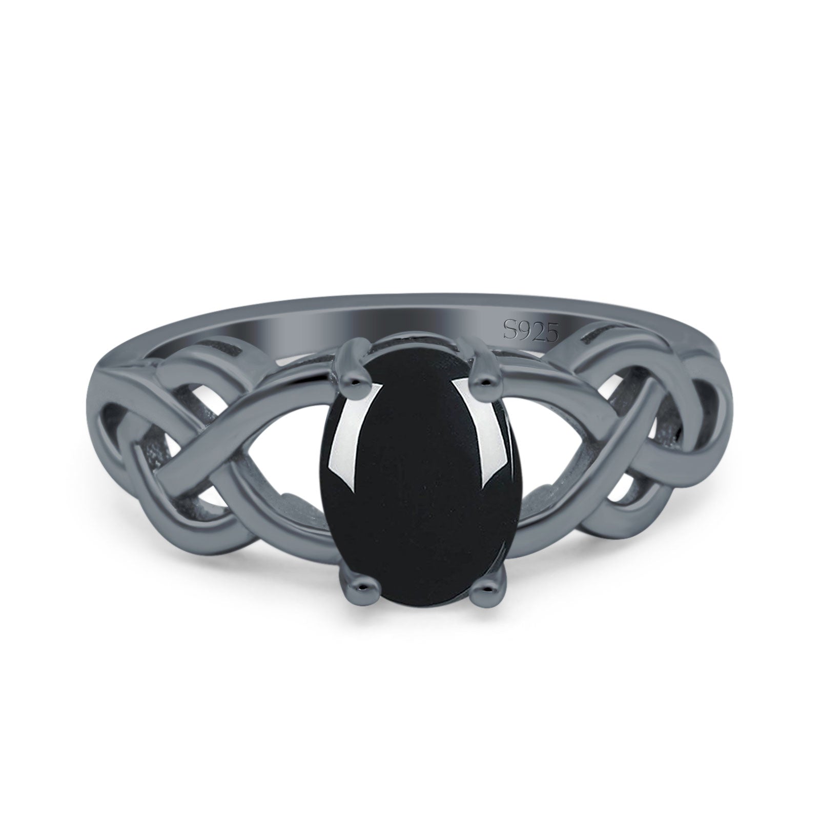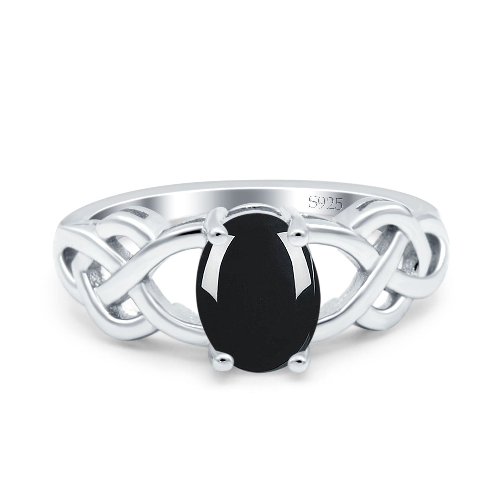 Oval Natural Black Onyx Solitaire Trinity Ring 925 Sterling Silver