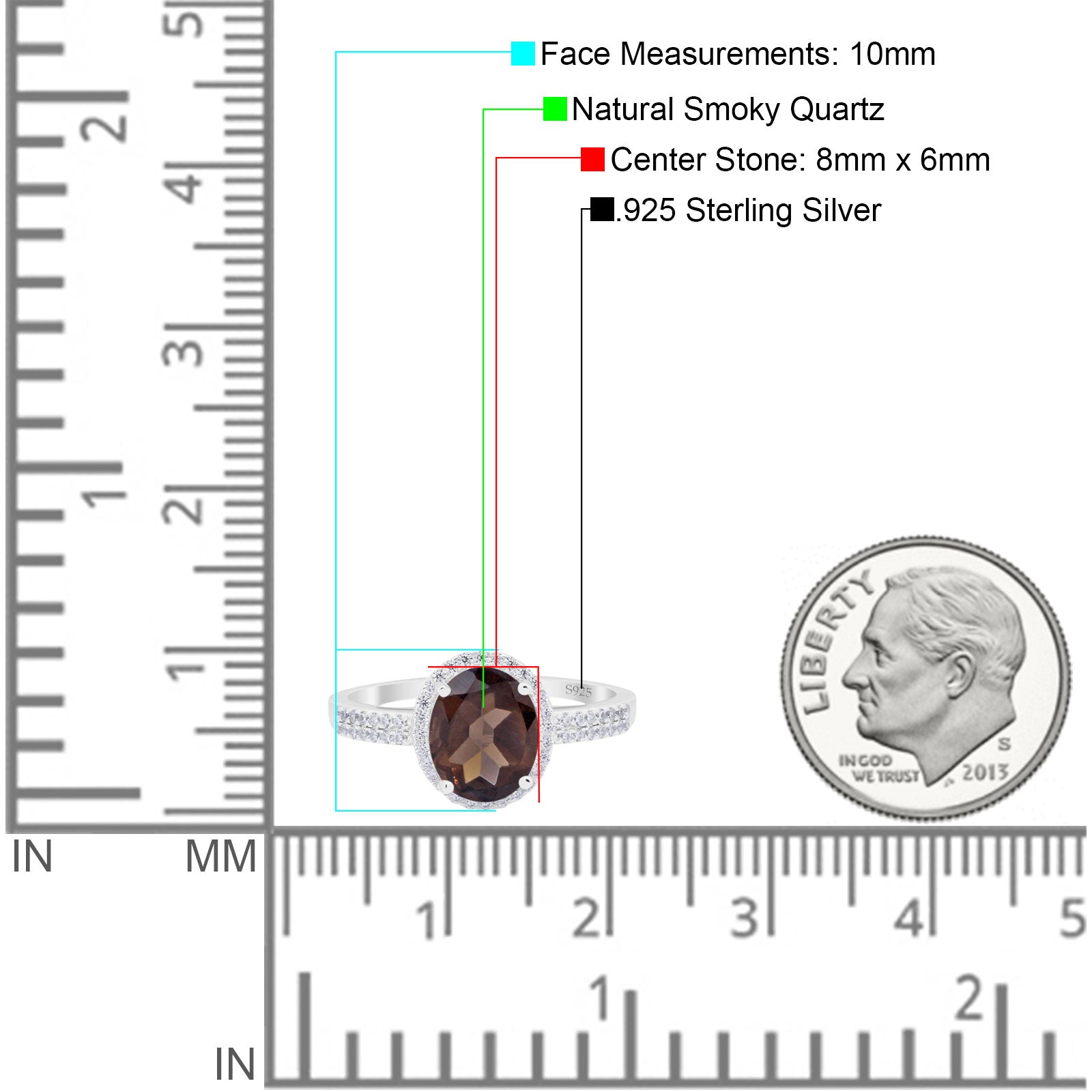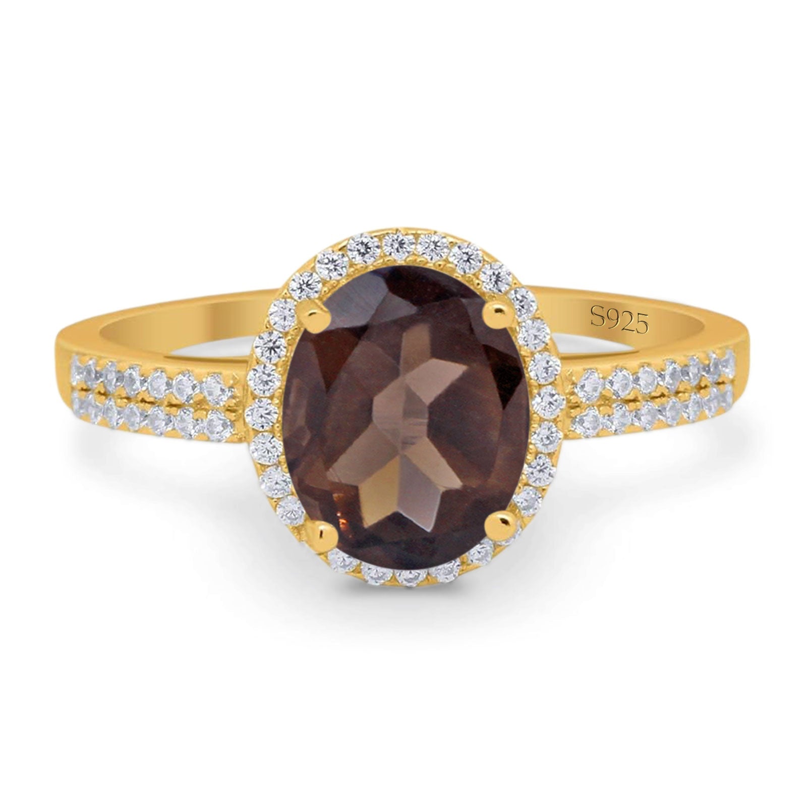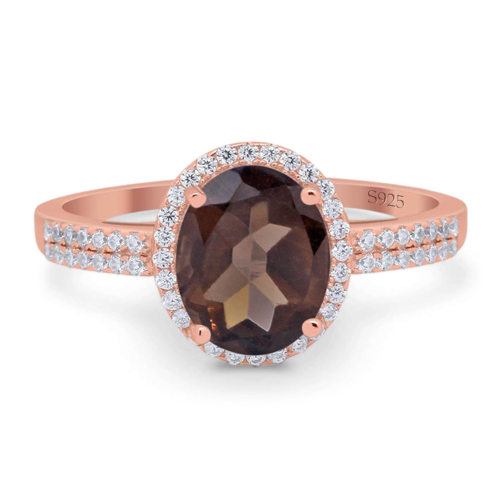 Oval Natural Chocolate Smoky Quartz Art Deco Halo Ring 925 Sterling Silver