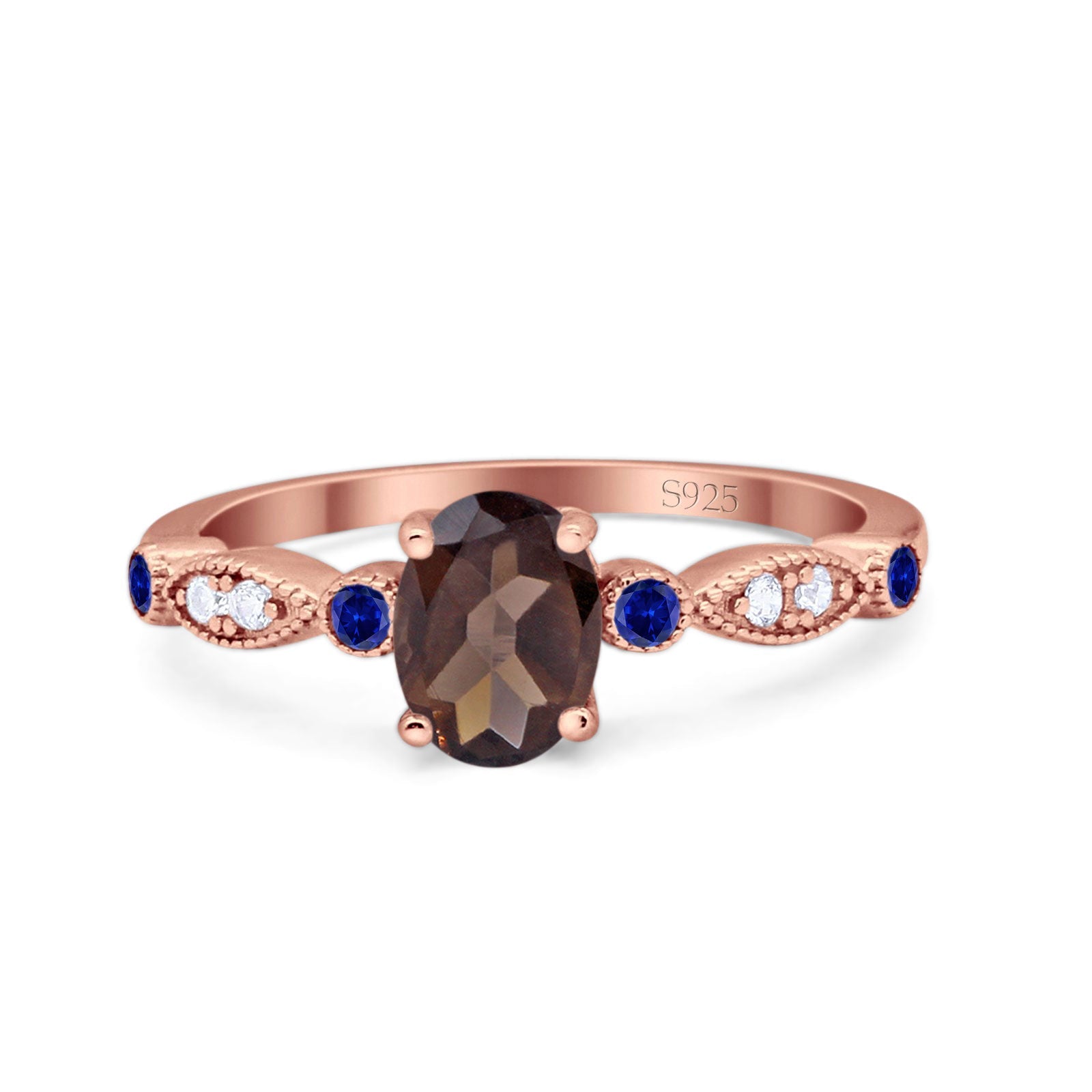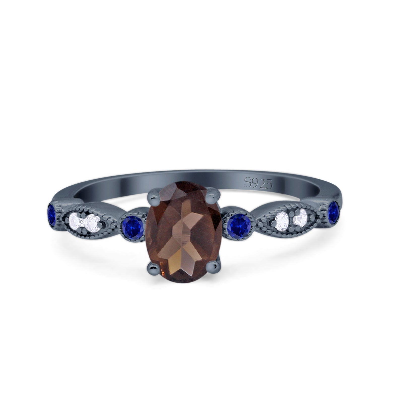 Oval Natural Chocolate Smoky Quartz Marquise Vintage Style Ring 925 Sterling Silver