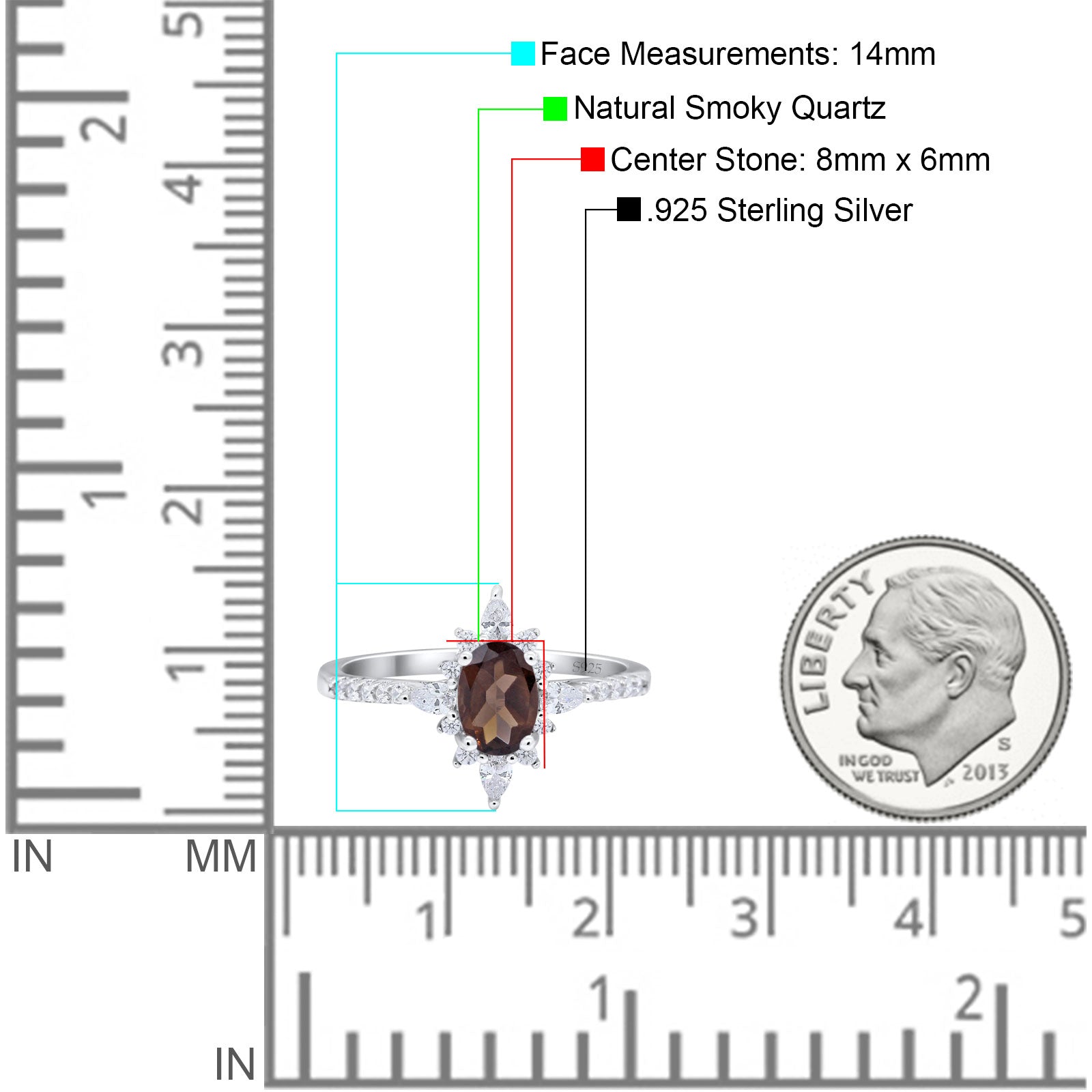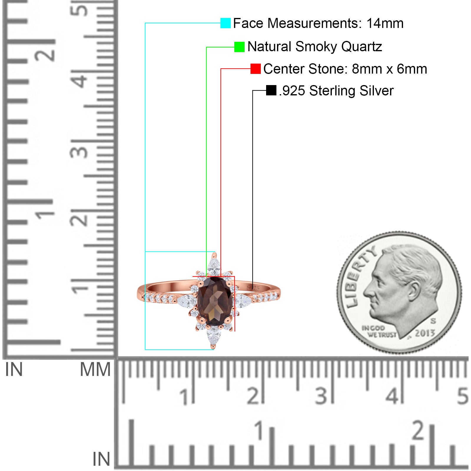 Natural Chocolate Smoky Quartz Engagement Ring
