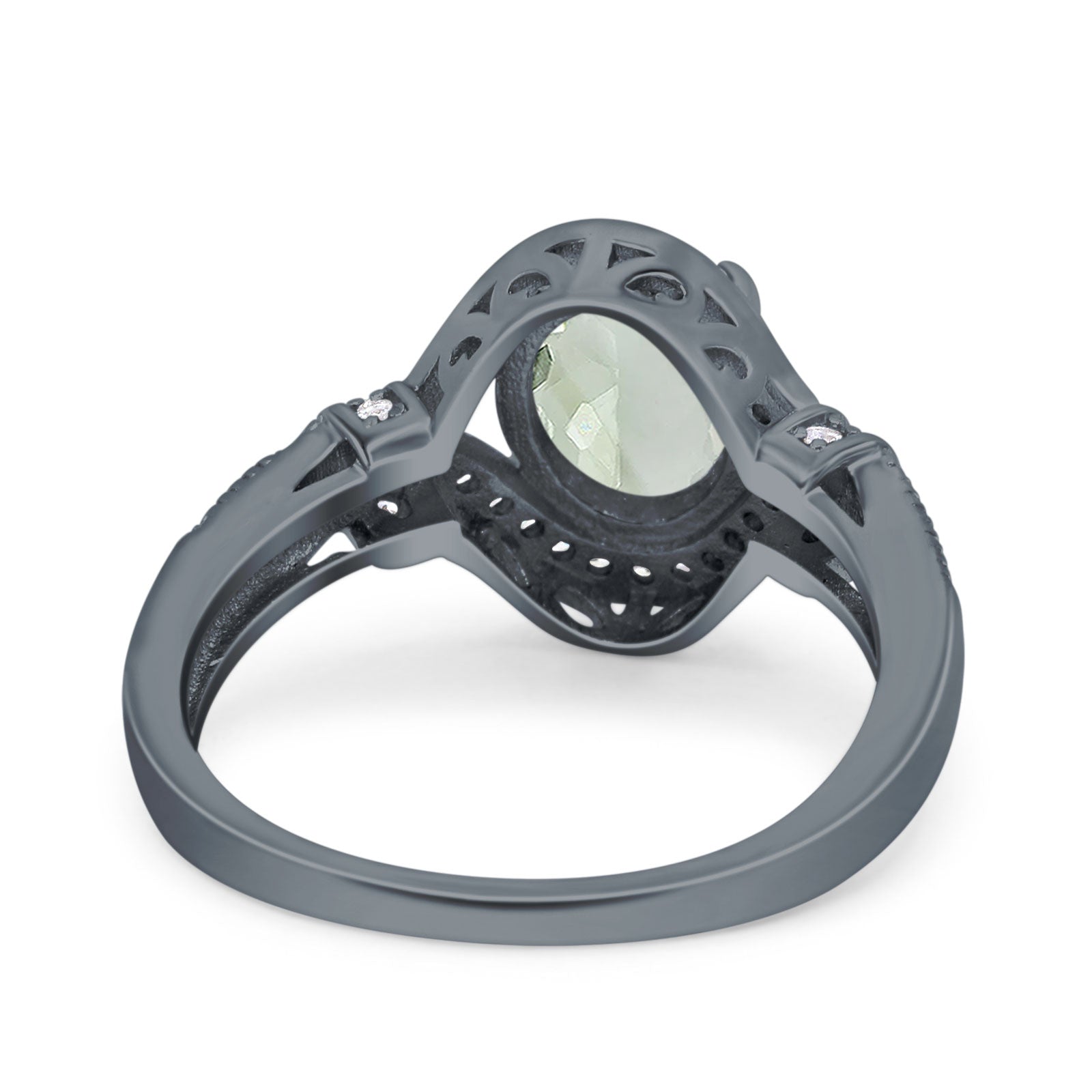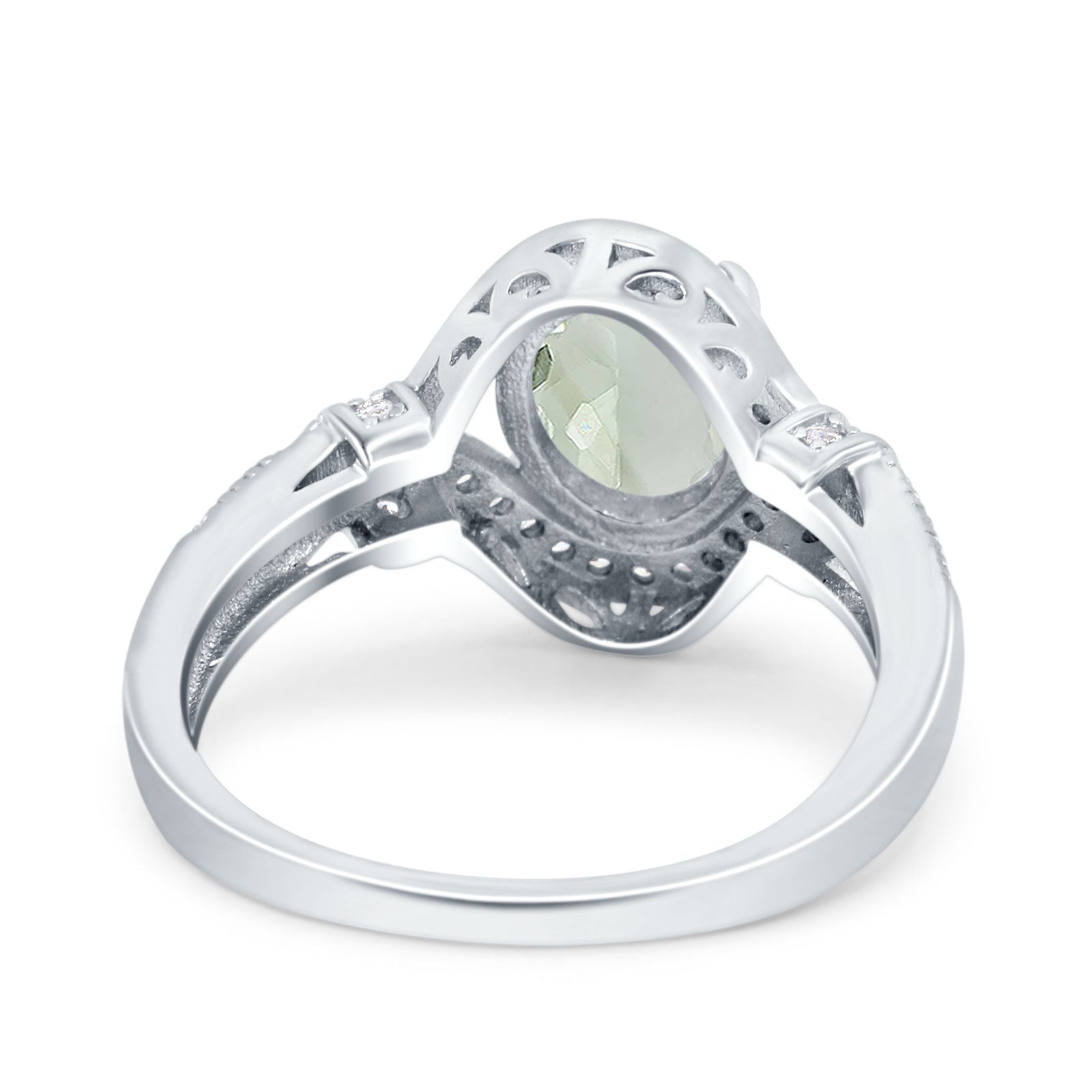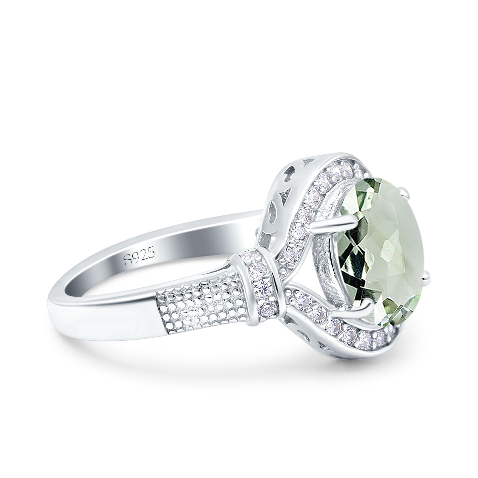 Oval Natural Green Amethyst Prasiolite Halo Beaded Ring 925 Sterling Silver