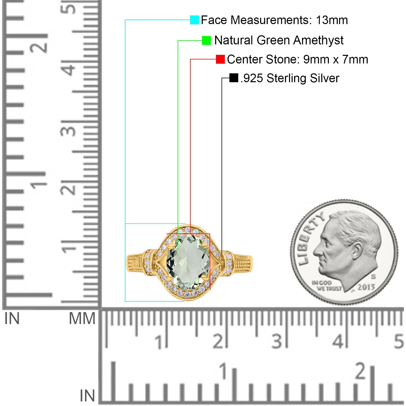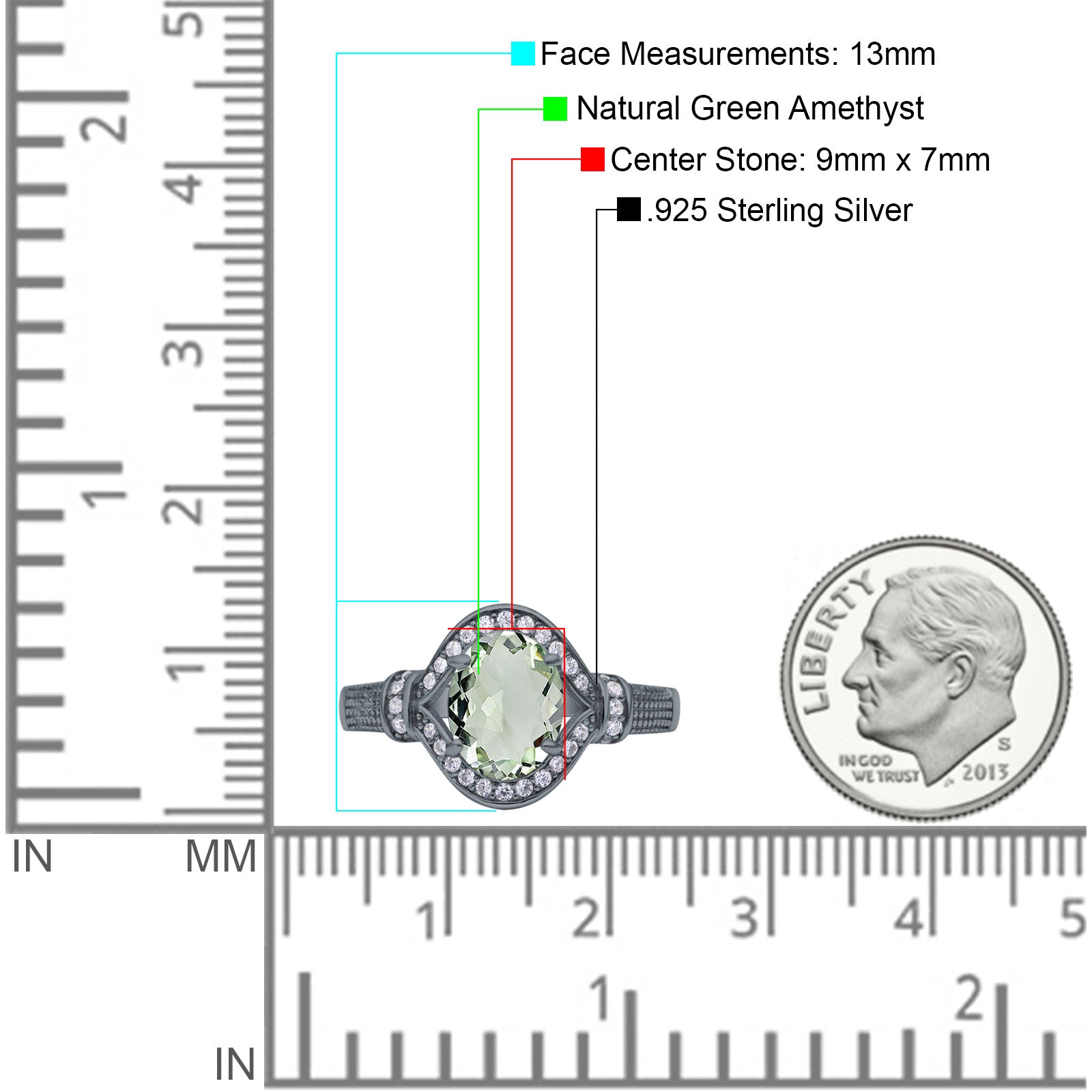 Center Stone Measurements:9mmx7mm.