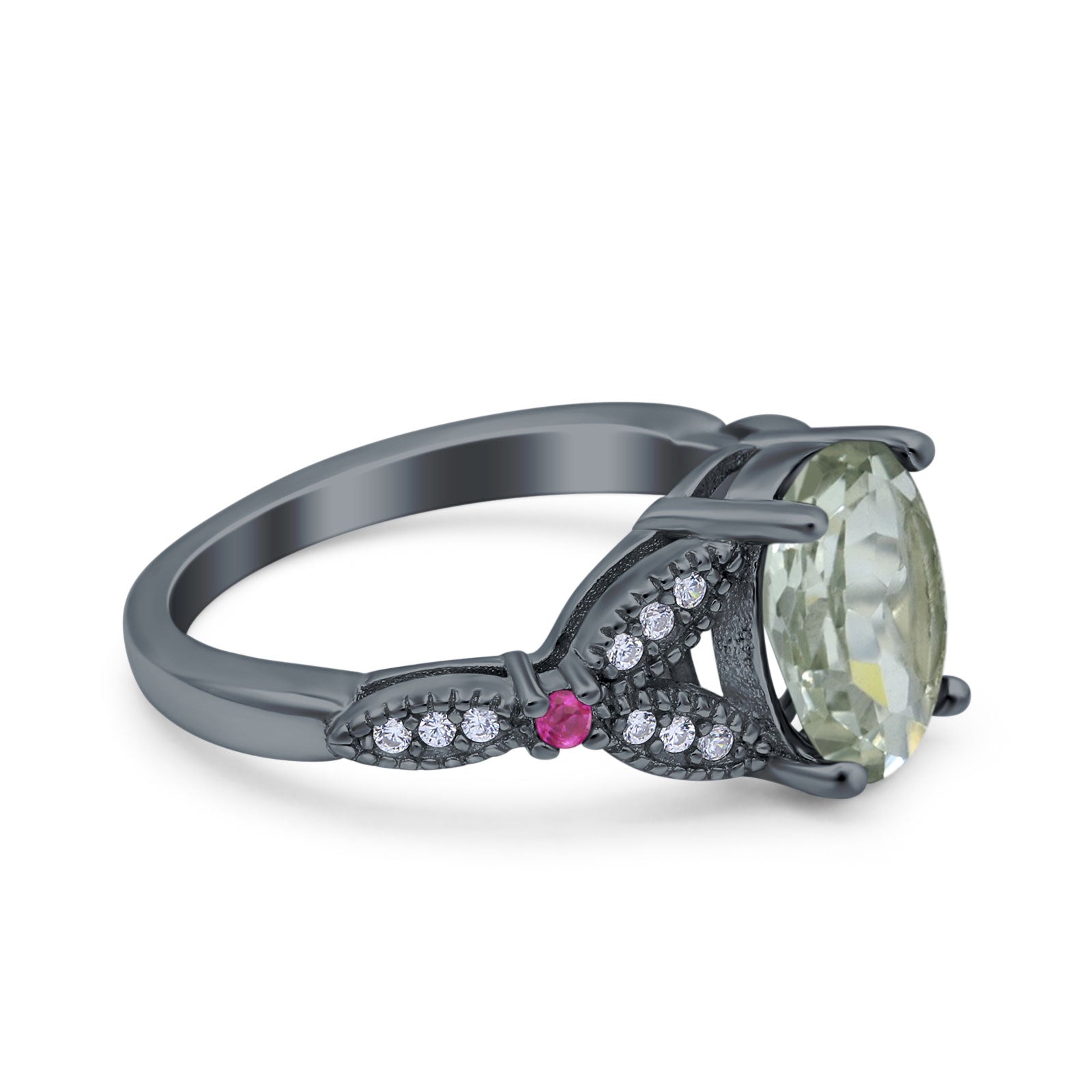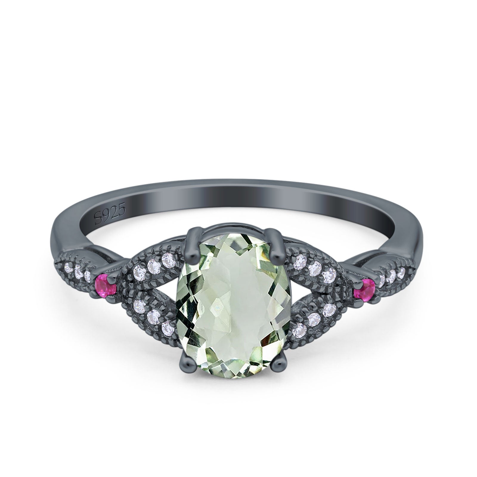 Natural Green Amethyst Prasiolite Black Tone Silver