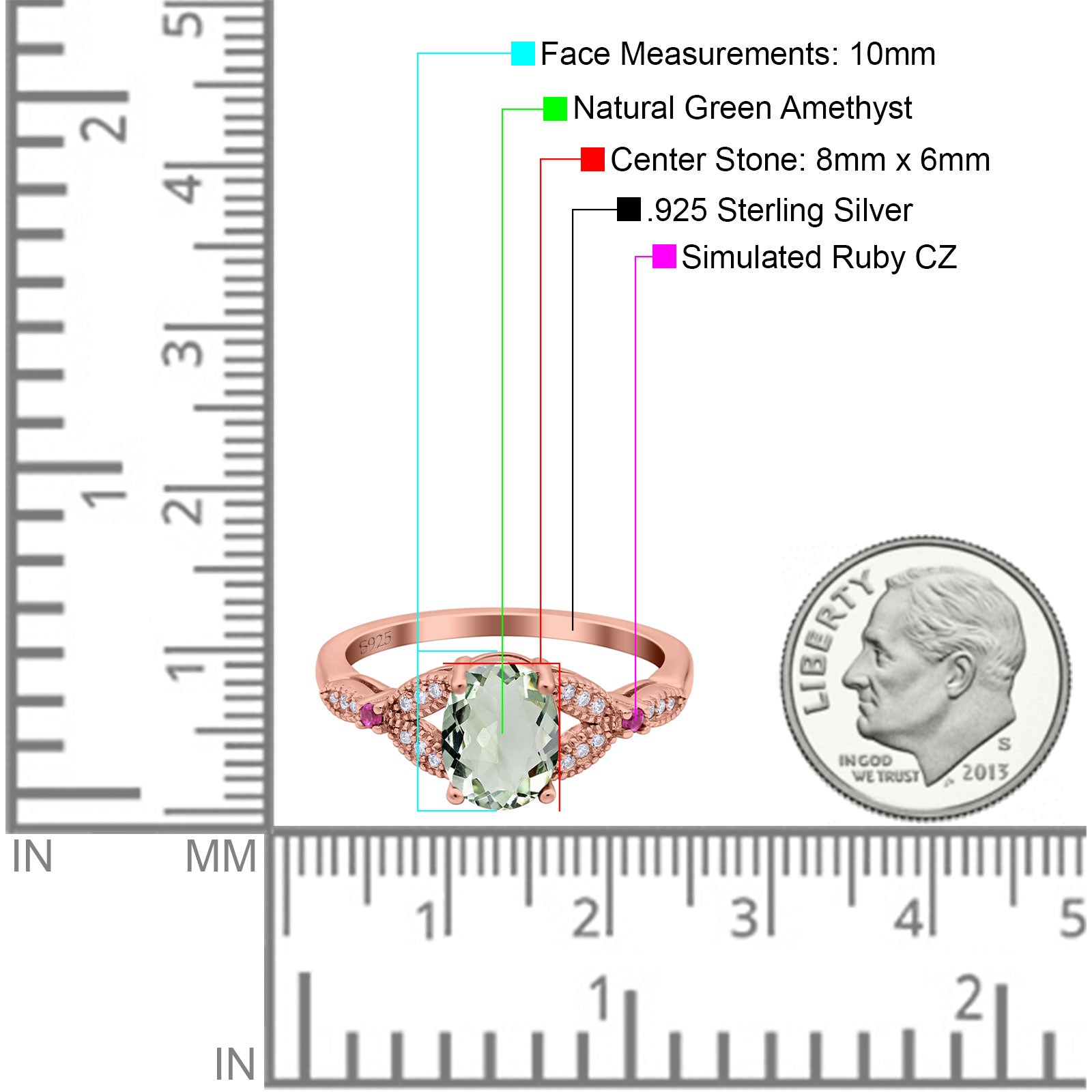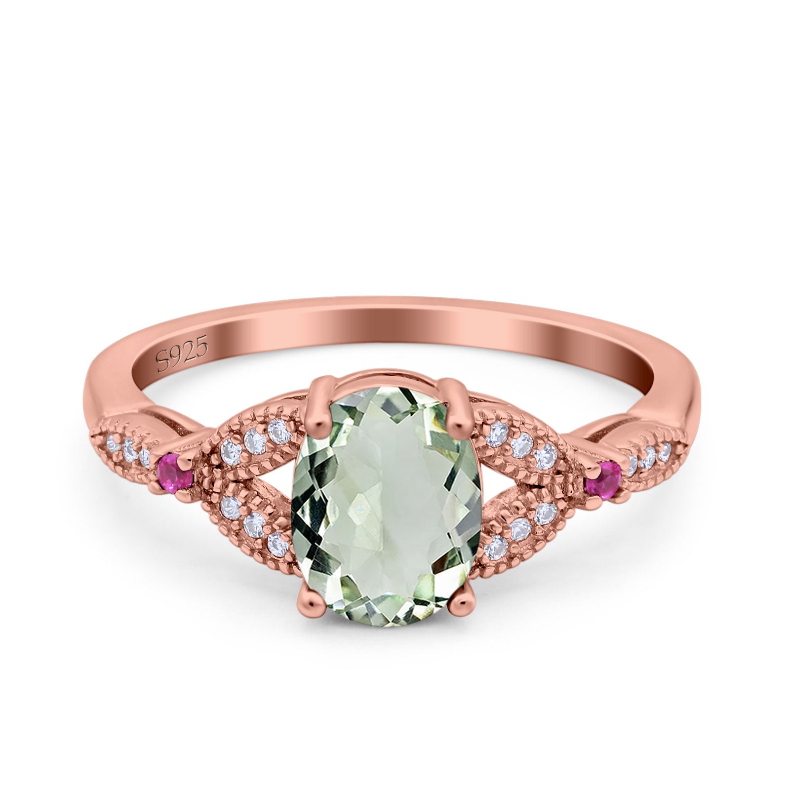 Natural Green Amethyst Prasiolite Rose Tone Silver