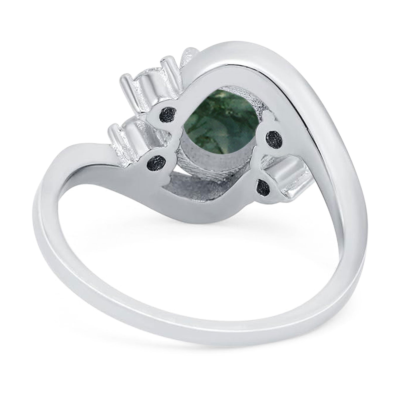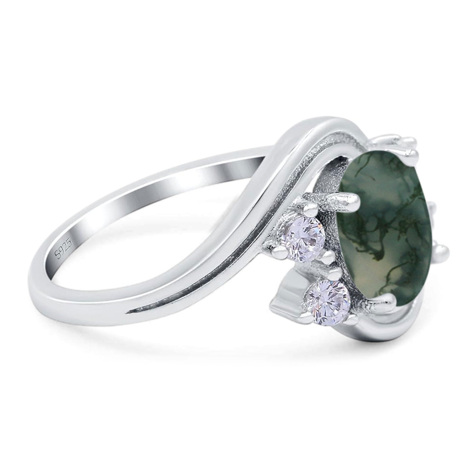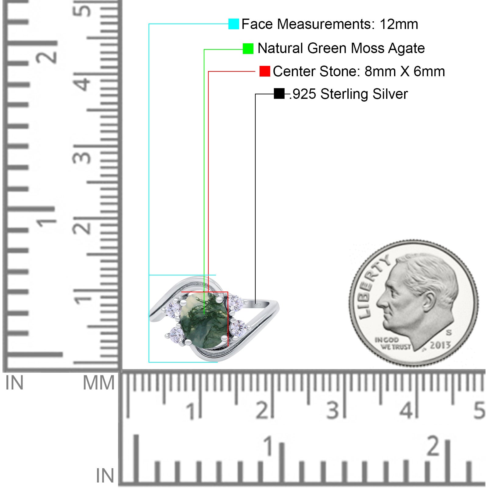 Oval Natural Green Moss Agate Art Deco Ring 925 Sterling Silver