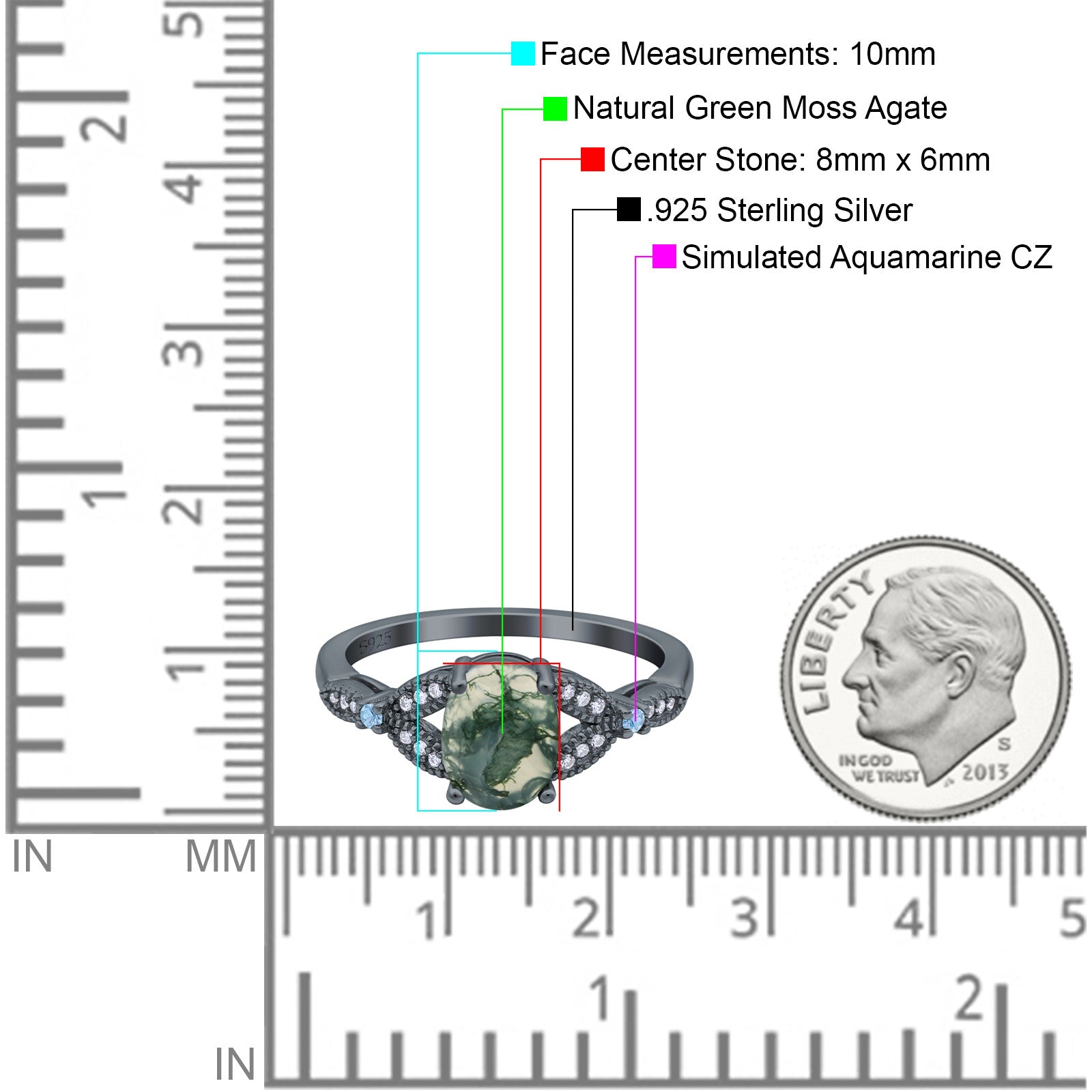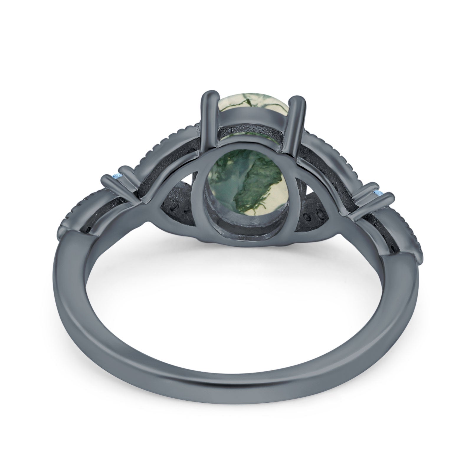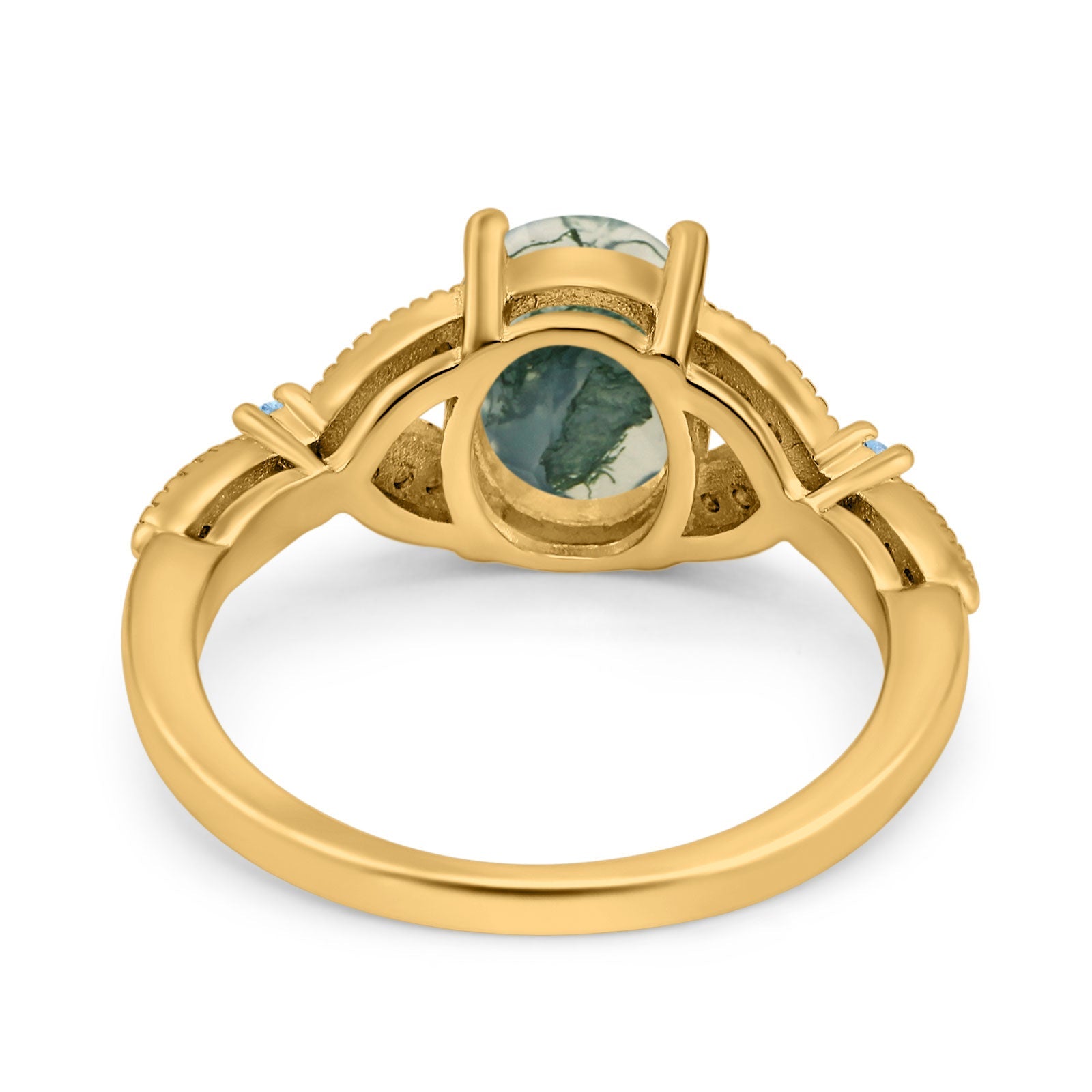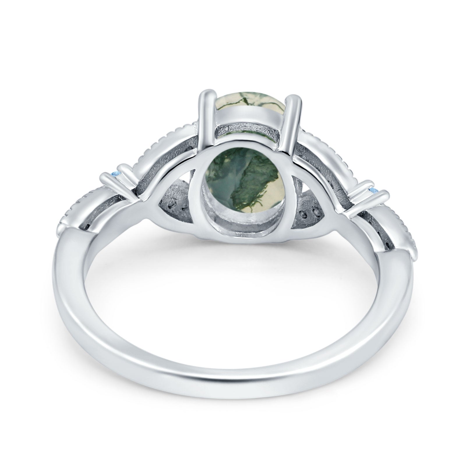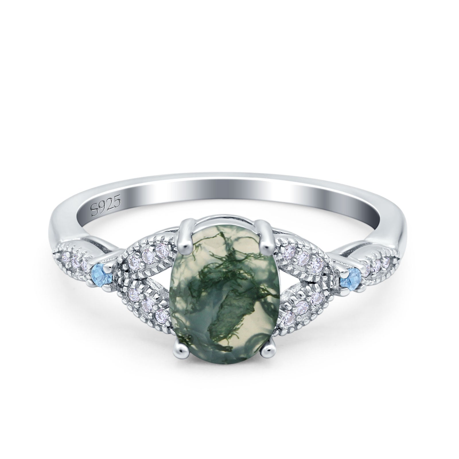 Oval Natural Green Moss Agate Leaf Design Beaded Ring 925 Sterling Silver