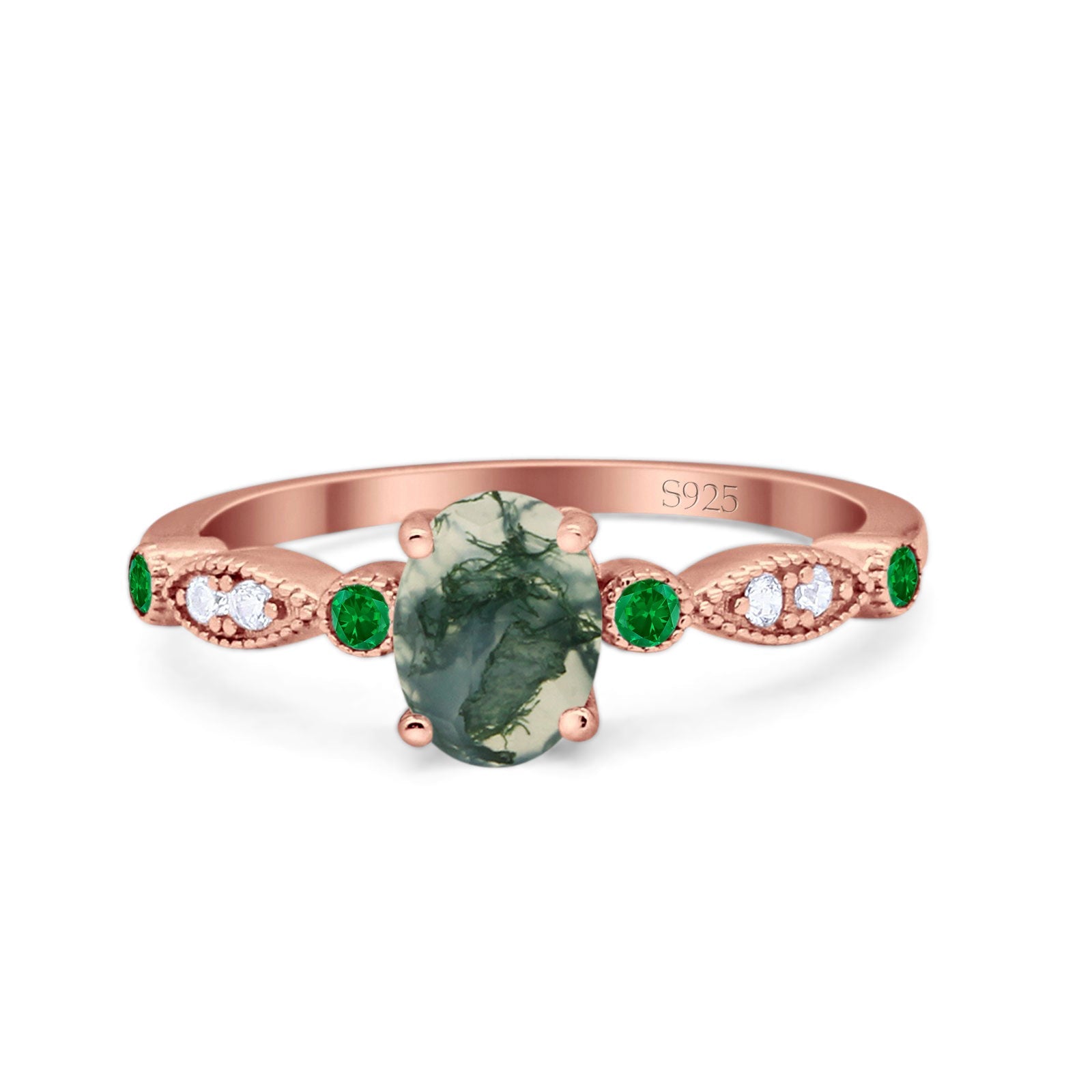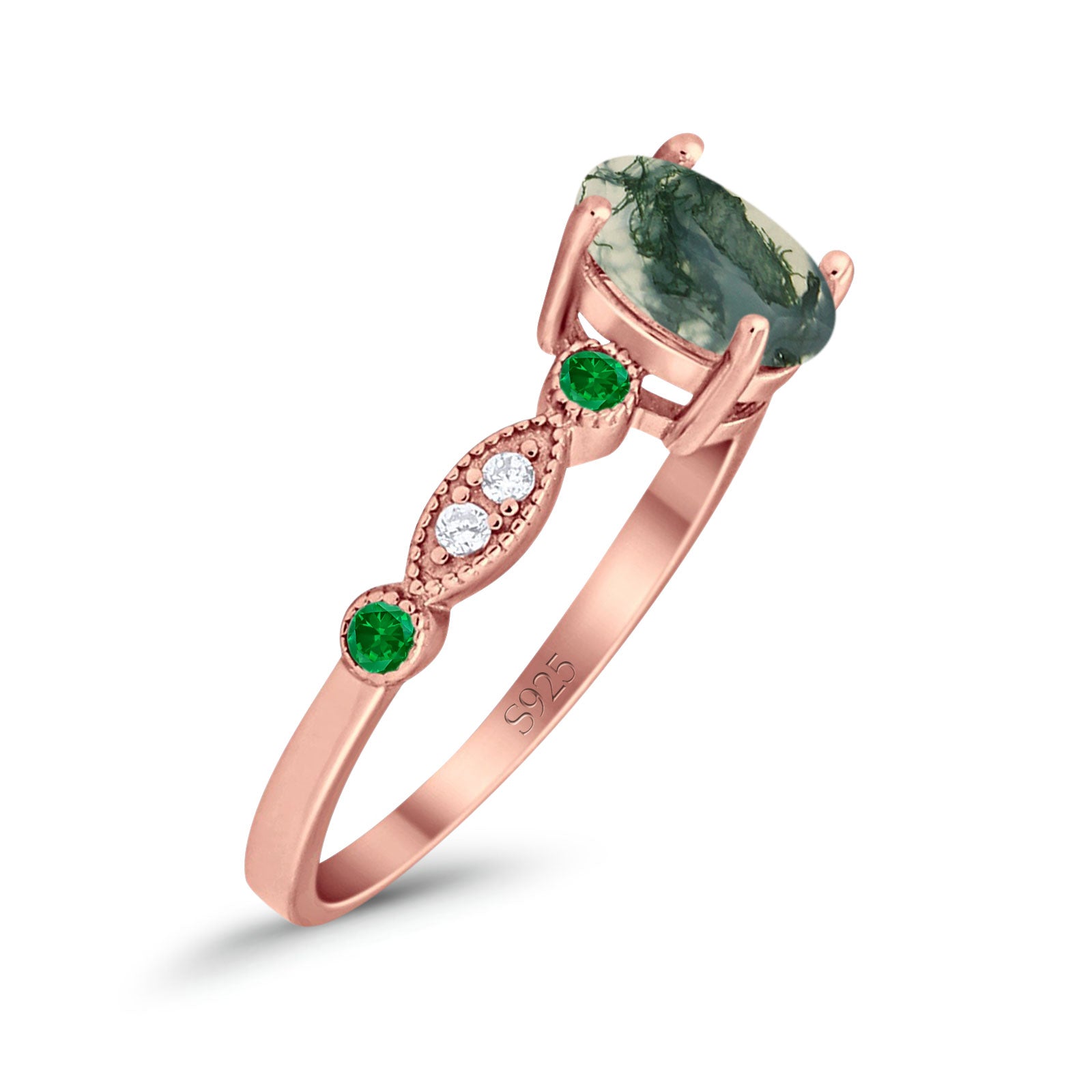 Natural Green Moss Agate Rose Tone Silver