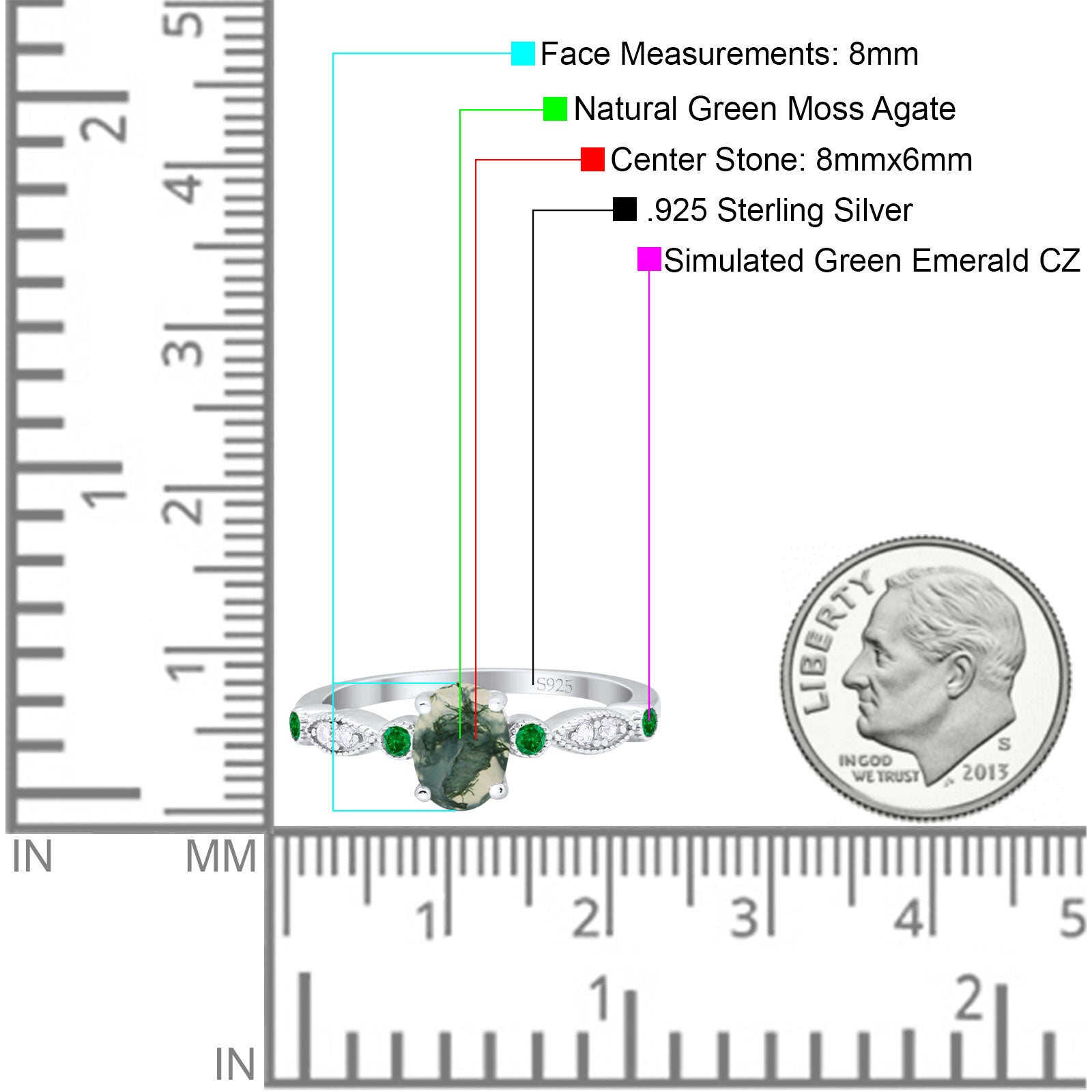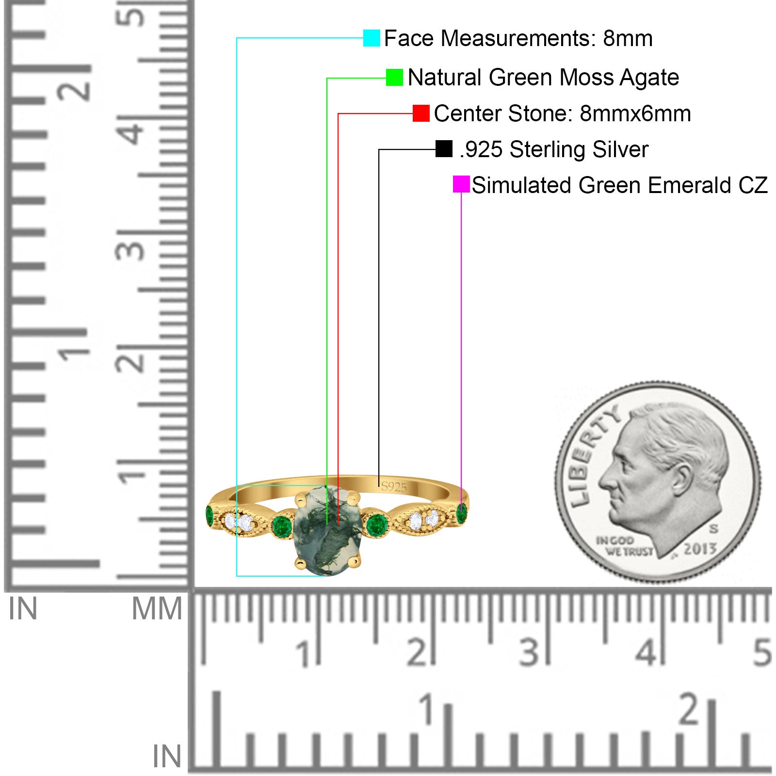 Side Stone: Green Emerald(CZ).