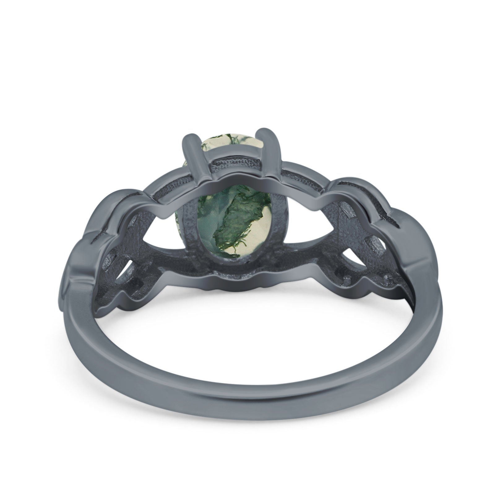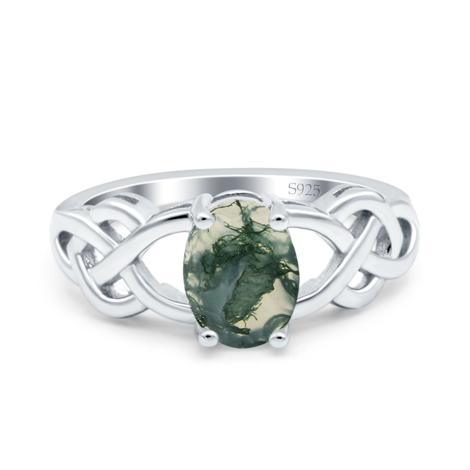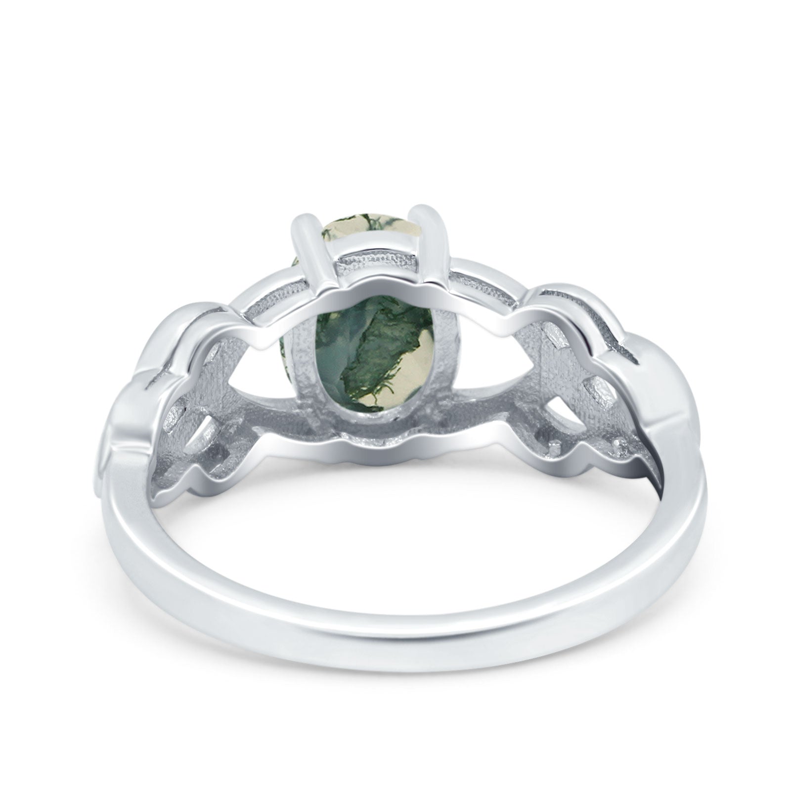 Oval Natural Green Moss Agate Solitaire Trinity Ring 925 Sterling Silver