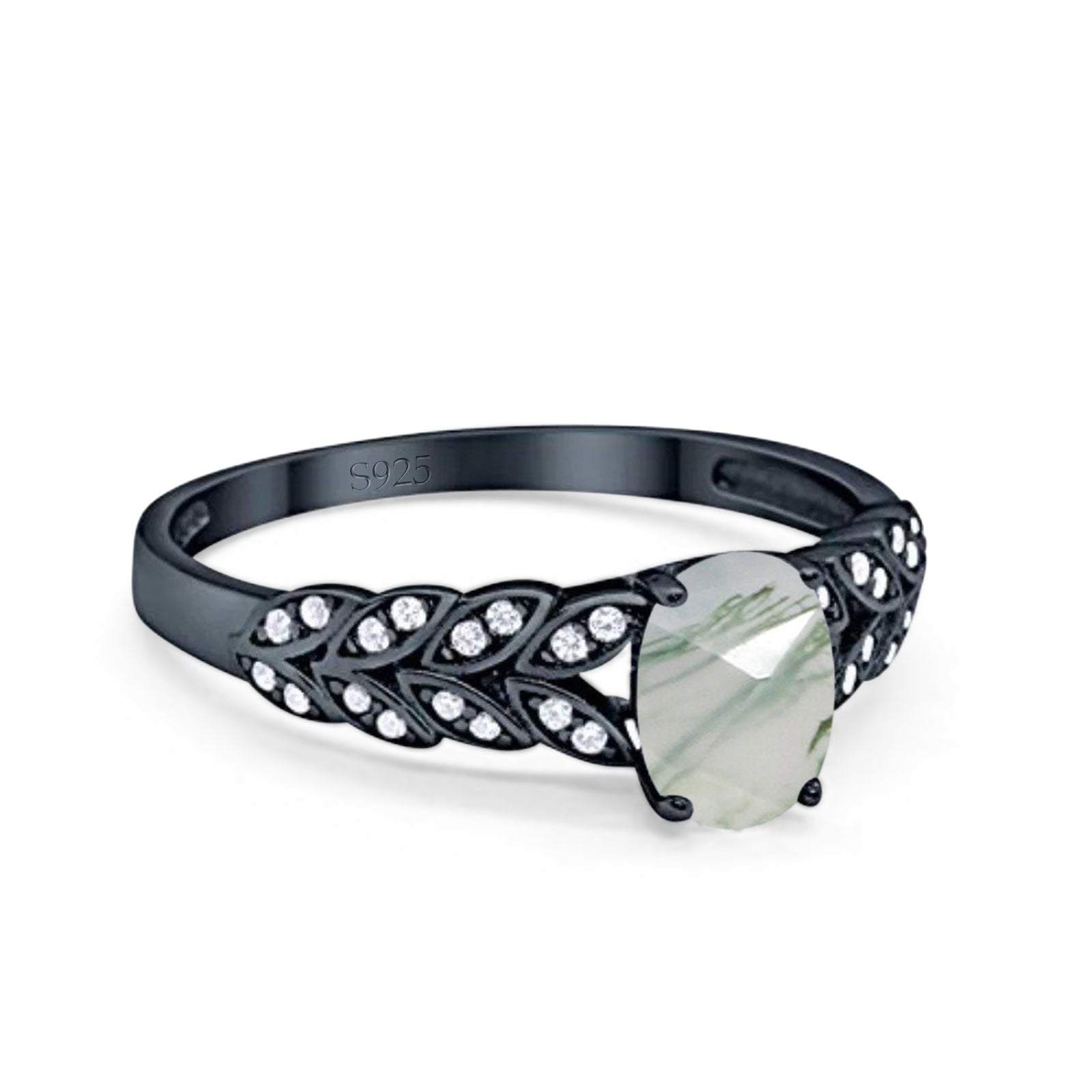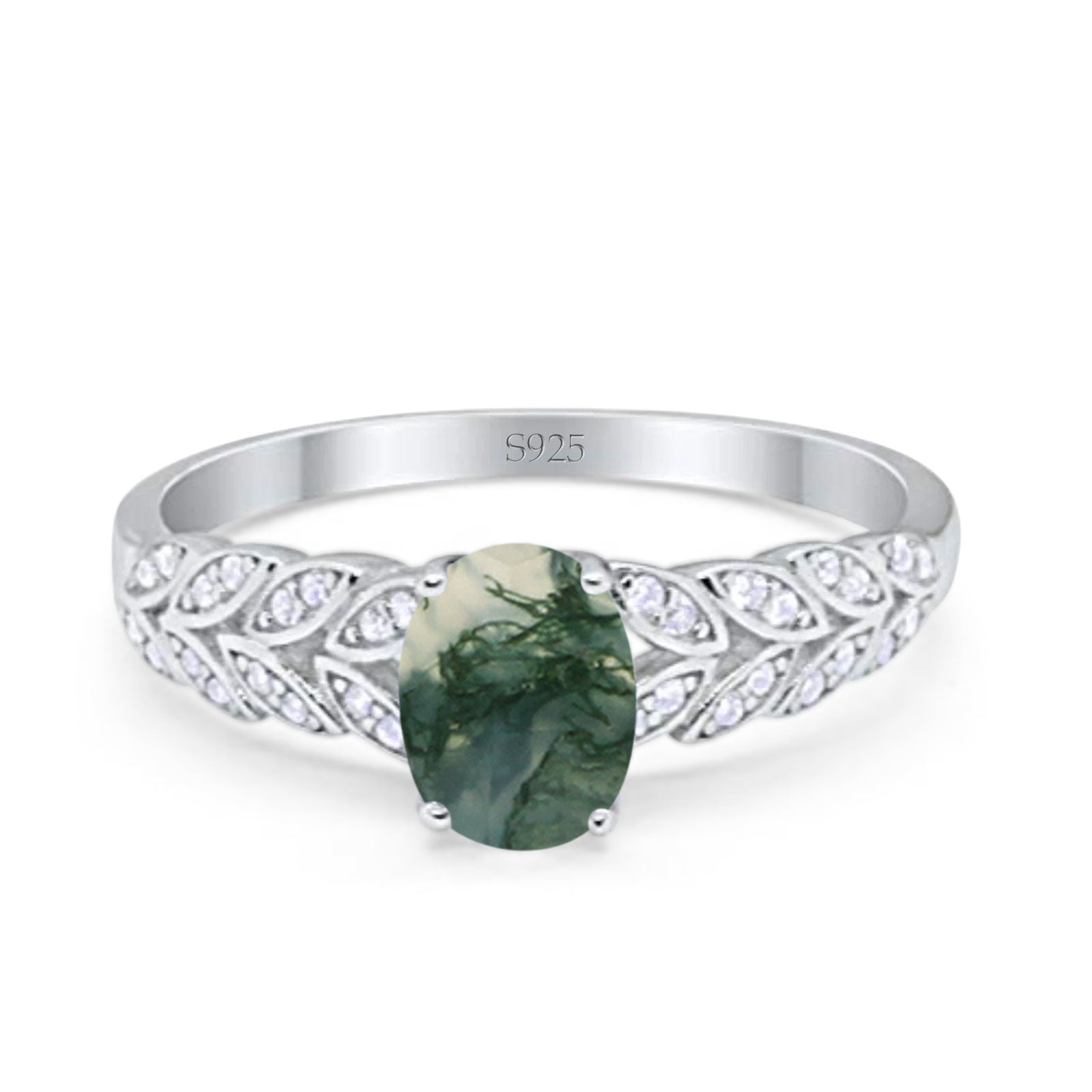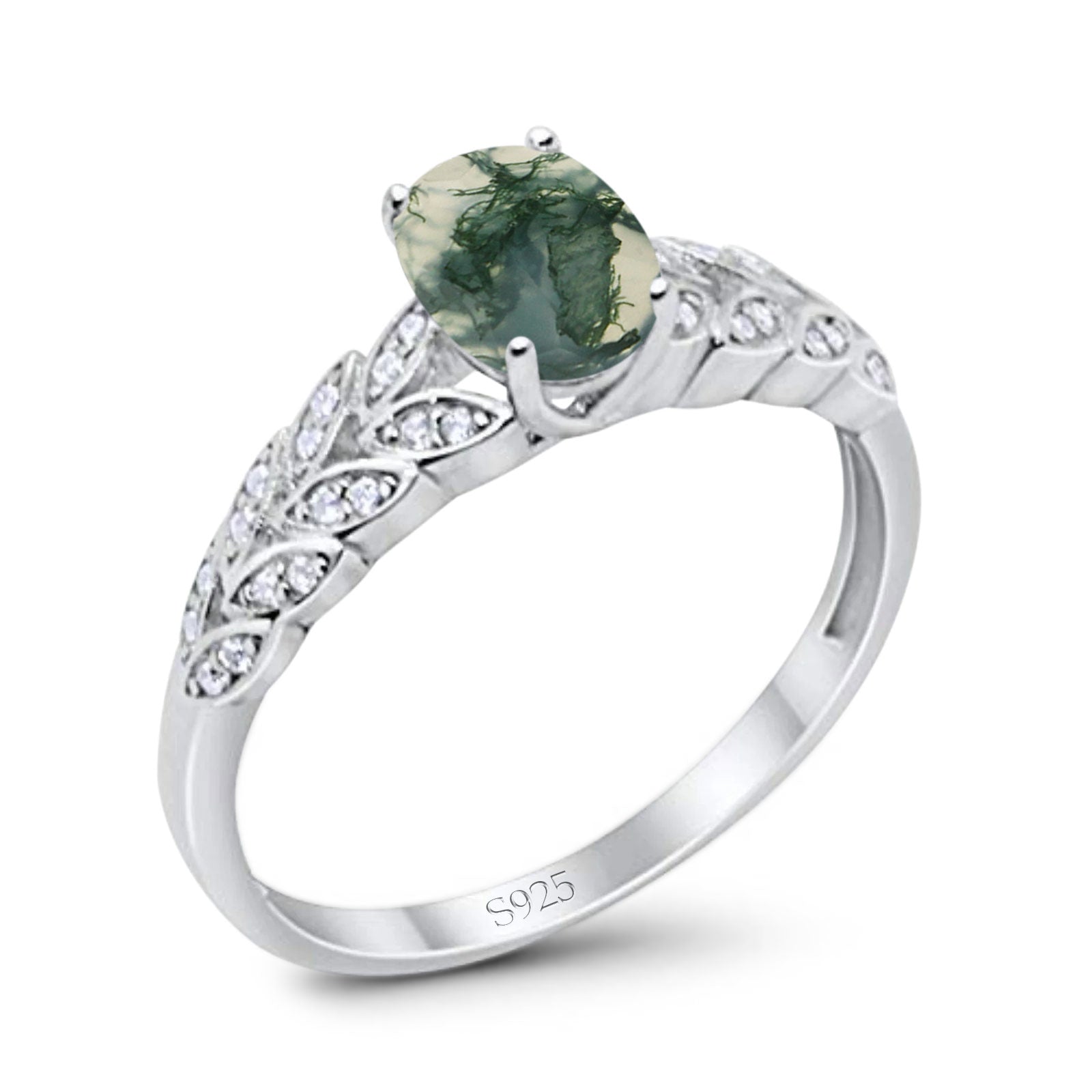 Oval Natural Green Moss Agate Vintage Marquise Style Ring 925 Sterling Silver